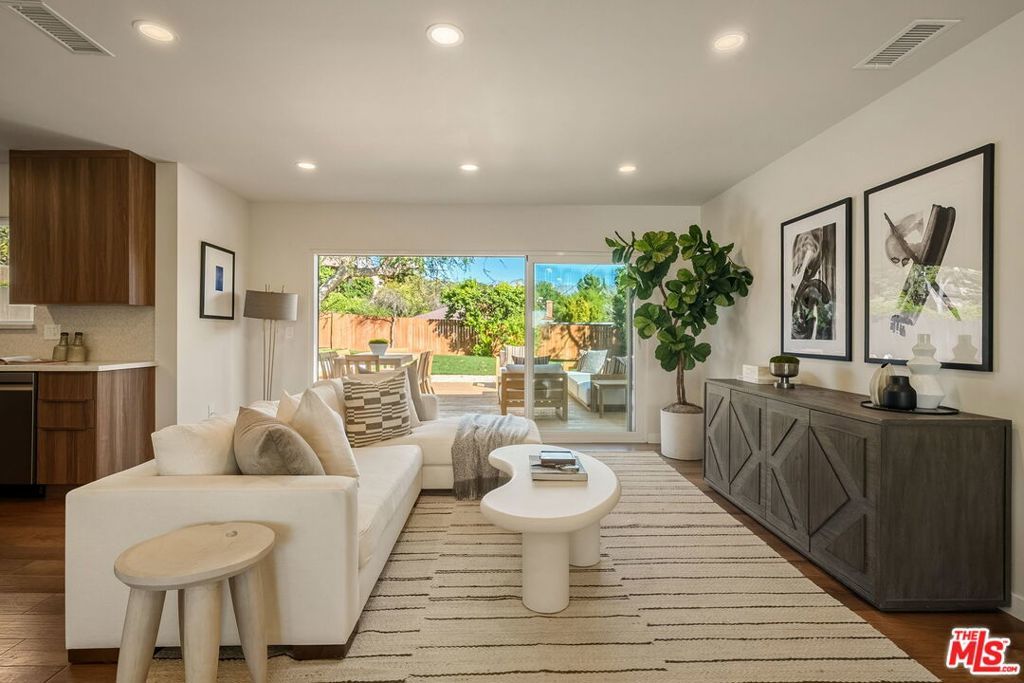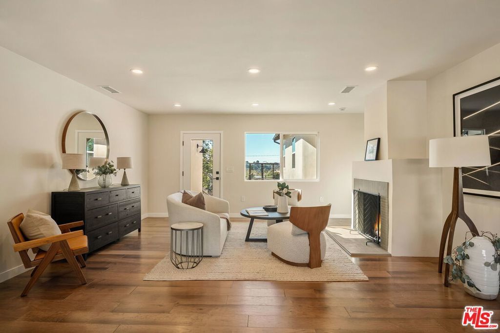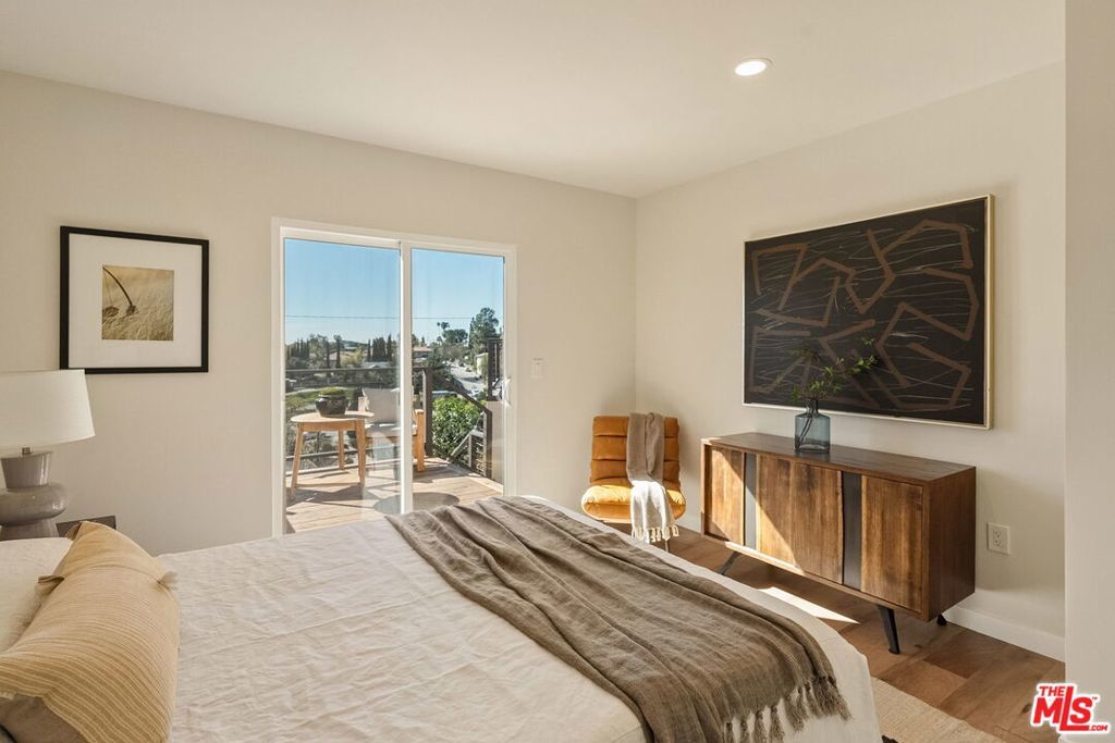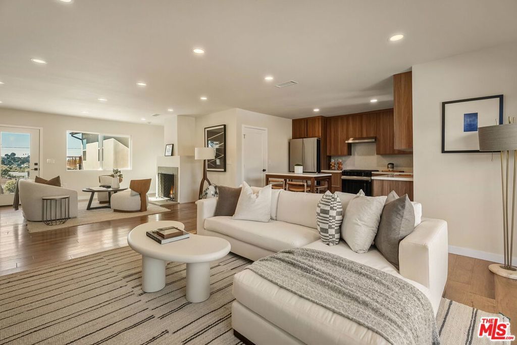 This thoughtfully reimagined mid-century residence offers sweeping views and refined indooroutdoor living in one of Eagle Rock's most desirable pockets. Light-filled interiors unfold across a cohesive open layout featuring warm wood floors, recessed lighting, and a statement fireplace. The kitchen flows seamlessly into the living and dining areas, showcasing quartz countertops, custom cabinetry, and a clean, architectural aesthetic designed for both everyday living and entertaining. Thoughtful upgrades throughout create a cohesive, turn-key experience. The living room opens directly to a private backyard with fresh landscaping, a new deck, and a generous lawn ideal for entertaining, relaxing, or play. Each bedroom is thoughtfully positioned for privacy, creating distinct retreats throughout the home. One bedroom overlooks the backyard, while another enjoys direct access to a private deck. Set apart on the opposite side of the residence, the primary suite offers a true sanctuary with abundant natural light, a walk-in closet, an en-suite bathroom, and direct access to an expansive private deck with elevated views. A warm, neutral palette and thoughtful design details carry throughout the home, creating a refined yet approachable atmosphere. Ideally located within the coveted Dahlia Heights Elementary School district and close to neighborhood favorites including Found Coffee, Little Beast, Talon Tap & Wine Bar, Colorado Donuts, and Cacao Mexicatessen. The residence delivers a perfect combination of design, livability, and connection in one of Northeast LA's most sought-after communities.