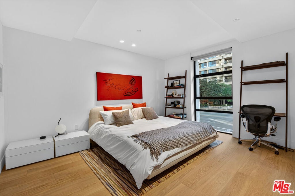 Residence 208 is an elegantly appointed one-bedroom plus den unit, positioned on the second floor of The Liddel, an exclusive collection of contemporary residences along the Wilshire Corridor. The main living area is filled with natural light, offering front south-facing views and great space for relaxation. The chef's kitchen is both refined and functional, showcasing bespoke Jamie Bush millwork, integrated Miele appliances, and a striking signature island. The primary suite features a generous walk-in closet, while the den provides versatility as a private office or secondary bedroom. Additional Jamie Bushcurated finishes include wide-plank white oak flooring, terrazzo-clad bathrooms, custom vanities, and Atelier de Troupe lighting throughout. Residents enjoy a full suite of premier amenities, including 24-hour concierge service, a private enclosed motor court with valet and EV charging, an elegant club lounge and wine room, catering kitchen and private dining space, state-of-the-art fitness studio, and a rooftop terrace with sweeping views of Westwood and the surrounding hillsides.