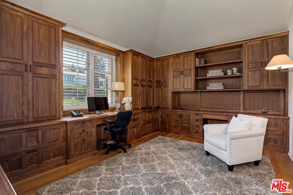 Welcome to 12683 Promontory Road, the only home currently available in the coveted guard-gated Stony Hill enclave of Mountaingate. This peaceful retreat is a world away from the city's frenetic pace, yet just a few minutes to Sunset and Ventura Blvds. Inside, soaring ceilings and sunlit rooms create an airy, open ambiance as one moves through this spacious residence graced with hardwood floors and stunning details. An impressive living room with double-height ceilings and a dining room that easily seats 12 flank the formal entry gallery. The state-of-the-art chef's kitchen opens to a spacious family room with stone fireplace and wet bar, perfect for both intimate living and stylish entertaining. Step outside to the private backyard retreat where a flagstone patio, soothing inground spa, and sounds of nature set the tone for quiet relaxation or elegant gatherings under the stars. Upstairs, the palatial primary suite boasts a fireplace, sitting area, two walk-in closets, expansive bath, and balcony with sweeping views of the mountains and city lights. All bedrooms are generously sized suites, one of which has been converted into a private office with rich wood built-in cabinetry. A three-car direct-access garage, laundry room, powder room, and upstairs loft space complete this stunning home located just one block to Stoney Hill's resort-style pool and clubhouse. Enjoy the best of Los Angeles (including access to top-rated Kenter Canyon Charter and Roscomare Road elementary schools) in a home that balances elegance with ease, privacy with proximity, and refinement with comfort.