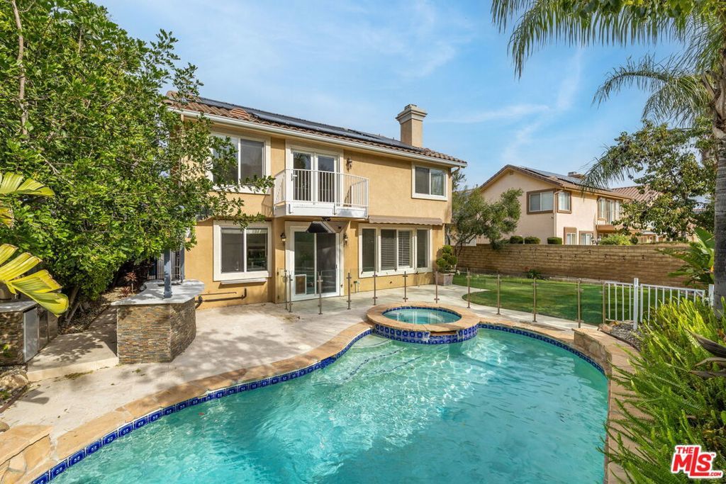 Discover the perfect blend of luxury, comfort, and adventure at 20250 Wynfreed Ln, nestled in the highly desirable Villagio community. This beautifully designed 4-bedroom, 4-bathroom home offers 3,117 sqft of thoughtfully crafted living space and paid-off solar panels on a generous 7,300 sqft lot. From the moment you walk in, you will be captivated by the attention to detail, the cathedral ceilings, recessed lighting, remodeled bathrooms, a luxurious primary suite featuring dual walk-in closets and spa-like amenities, and a spacious upstairs office with French doors, perfect for working from home or pursuing your passions.The exterior of the home is thoughtfully designed for the family who enjoys spending time together outdoors. Imagine soaking in your solar-heated pool or jacuzzi, hosting family and friends at the built-in BBQ area, or simply enjoying the lush, manicured lawn. For those with a taste for adventure, the two-story rock climbing wall with an automated belay system is a show-stopping feature for kids and adults to enjoy together.Practicality meets sophistication with a 3-car garage, built-in storage and workbench, Tesla charger, and a detached storage unit for all your organizational needs. Every detail has been carefully considered so you can live with comfort, ease, and style.
