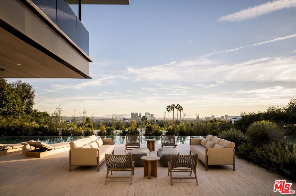 Exceptional design meets refined luxury in this brand-new Beverly Hills architectural masterpiece, set behind privacy gates on a secluded promontory with truly explosive panoramic city-to-ocean views offering the rare combination of dramatic vistas and effortless convenience just moments from the Beverly Hills Hotel and the heart of the city. Created by renowned architect Paul McClean with interiors by Waldo Fernandez, this one-of-a-kind residence is a study in meticulous craftsmanship and elevated modern warmth. Behind the gates, twin marble waterfalls frame a dramatic entry, leading to illuminated travertine paths and a striking glass bridge that reveals the home's stunning three-level design. Walls of glass, soaring wood-paneled ceilings, and contrasting accents create a seamless indoor-outdoor flow reminiscent of the world's finest private resorts. An elevator services all levels, enhancing ease and livability throughout. The main level features formal living and dining areas, a kitchen as well as a chef's kitchen with Miele appliances, wine cellar, and private office. Pocketing glass doors open to an expansive outdoor oasis with a full-length infinity pool, jacuzzi, baja ledge, and multiple dining and lounge areas overlooking the skyline ideal for hosting events, parties, and effortless gatherings with quick access for Uber and pick-ups. The upper level is dedicated to a serene primary retreat with a terrace, fireplace, spa-like bath, and dual closets, as well as a secondary bedroom. Below, a dramatic atrium anchors a complete entertainment and wellness floor with guest suite, gym, sauna, steam room, massage room, onyx bar, and a state-of-the-art private home theater - creating the ultimate "vacation-at-home" lifestyle. The home offers exceptional gated parking capacity, including an oversized garage and additional space within the motor court, providing rare flexibility for events, staff, and guest arrivals, all complemented by generous street frontage for convenient overflow parking. A rare opportunity to own a true trophy property offering unparalleled design, privacy, resort-level amenities, and unmatched proximity to the very best of Beverly Hills.