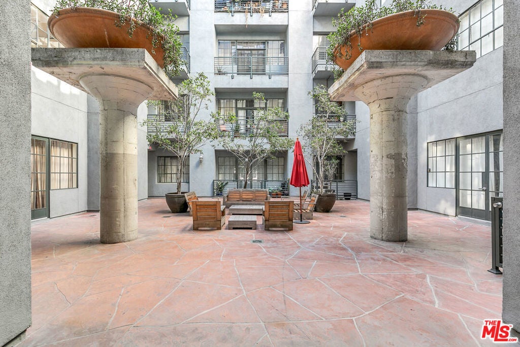 Now available for lease: Residence #218 at the Little Tokyo Lofts in Downtown Los Angeles, formerly the historic Westinghouse Electric Building, constructed in 1922. This loft features 12-foot ceilings, an open floor plan, and an in-unit washer and dryer. The kitchen boasts granite countertops and stainless steel appliances, seamlessly connected to a dining area with space for a full-sized dining table. The primary bedroom includes a spacious closet and an en-suite bathroom. Monthly rent includes one covered parking space.Building amenities include a fitness room, heated pool, hot tub, barbecue area, dog run, 24-hour security within a gated building, and a central courtyard. This exceptional condo is conveniently located within a short distance of Little Tokyo's restaurants, cafes, shopping, entertainment, and Metro options. The unit is offered unfurnished, with virtually staged photos included in the listing to showcase the potential of the space.