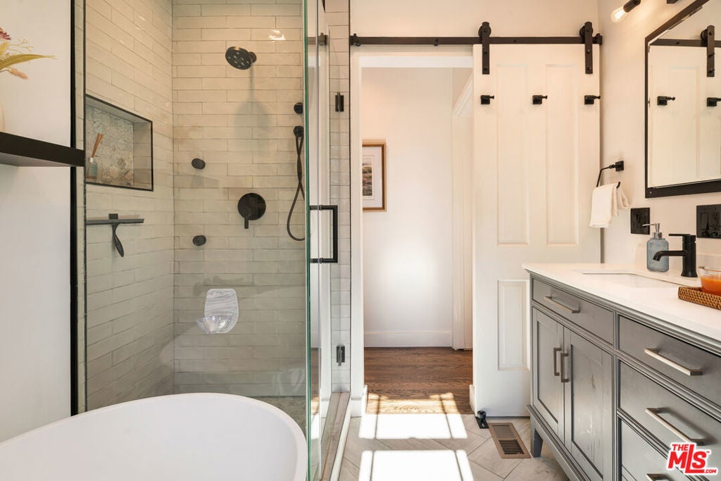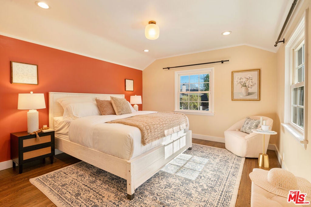 Charming single-story traditional ranch-style home on a larger than average 8,200+ square foot corner lot south of Ventura Boulevard in beautiful Sherman Oaks! Originally built in 1939, this updated and modernized home features 4 bedrooms, 2 bathrooms, 2,023 square feet of living space, an 800+ square foot backyard patio deck and fire pit, ideal for large gatherings or holiday parties plus a detached 2-car garage. Upon entry, homeowners will be captivated by the timeless design and classic architectural details of the formal living room, which include a lovely wood-burning fireplace and mantel, hardwood floors, dimmable recessed lights, bay window, attractive door frame casings and crown mouldings, a neutral color palette and lots of natural light. The family room features an exposed beam vaulted ceiling, hardwood flooring, French doors with beveled-edge glass, modern halogen track lighting and frosted glass gold-colored sconces. The kitchen has been tastefully renovated with engineered quartz counter tops, matte-glazed ceramic hex tile backsplash, a 5-burner gas stove with pot filler and vent hood, hammered farmhouse copper sink, refinished kitchen cabinets with new handles, pulls and side mount drawer runners, an ISE insta-hot/cold faucet and "Multipure" water filtration system and beautiful Southwestern/Mediterranean-styled Satillo floor tiles which blend nicely with the surrounding decor. Last but not least is the pantry access door just off the adjacent laundry room to conveniently unload your groceries. The formal dining room is also elegantly designed with built-in bookshelves, original craftsman-style window casings and wainscoting, stylish dimmable chandelier, bay window and a warm color palette. The primary bedroom features a cedar-lined walk-in closet, dual pane windows and a fully renovated bathroom with heated floors, a multi-head shower system for a more versatile cleaning experience, new counter tops, new cabinets and a standalone acrylic bathtub with modern faucets and fixtures. Down the hall you will find the 2nd bathroom with a custom marble sink, storage cabinet and high ceilings. The 2nd bedroom down the hall also has a nice-sized walk-in closet and direct access to the backyard patio deck for easy indoor/outdoor access. Two additional bedrooms down the hall feature matching hardwood flooring, dual pane windows, wainscoting with contrasting color palettes and a mountain and city lights view. The exterior of the home is fully fenced-in (both front and back), and features mature landscaping, an automatic sprinkler system, low voltage lighting, privacy hedges and a newer concrete front patio. Recent upgrades to this home include a new Owens Corning "TruDefinition Duration" shingle roof (installed in 2024), new "Trex" high-performance composite decking (installed in 2024), the kitchen cabinet renovation (completed in 2024), new batt insulation in the attic (installed in 2024), PEX freshwater re-pipe (installed in 2020), Navien 240A tankless water heater with new service valves (installed in 2020), a newer garage door (installed in 2020), and a motion-sensor surveillance system with window and door detection plus various other upgrades within the last year or so. This home has a lot of great features and the single-story floor plan is ideal for a wide range of homebuyers. Just a few minutes drive to Whole Foods market and other great culinary options on Ventura Blvd. Come check out your new home today!