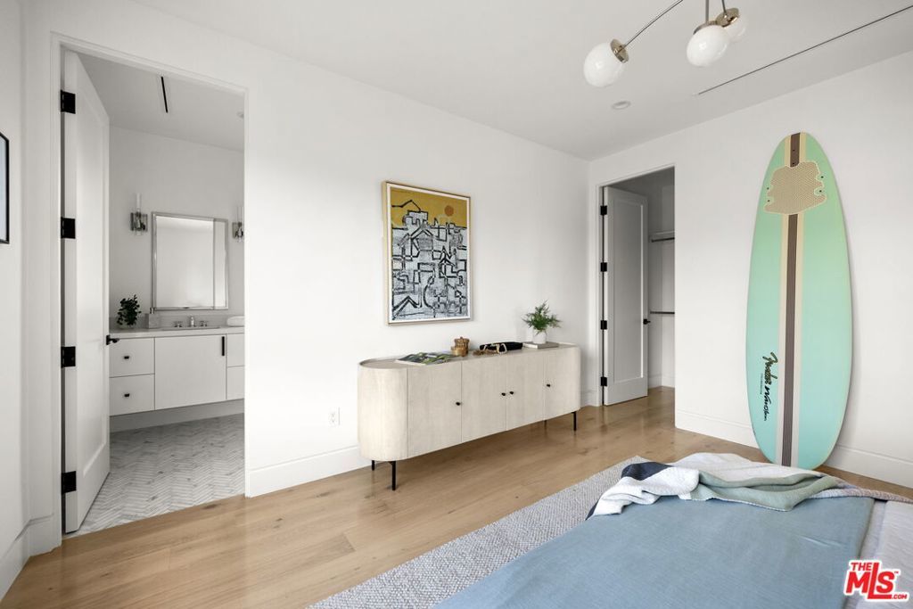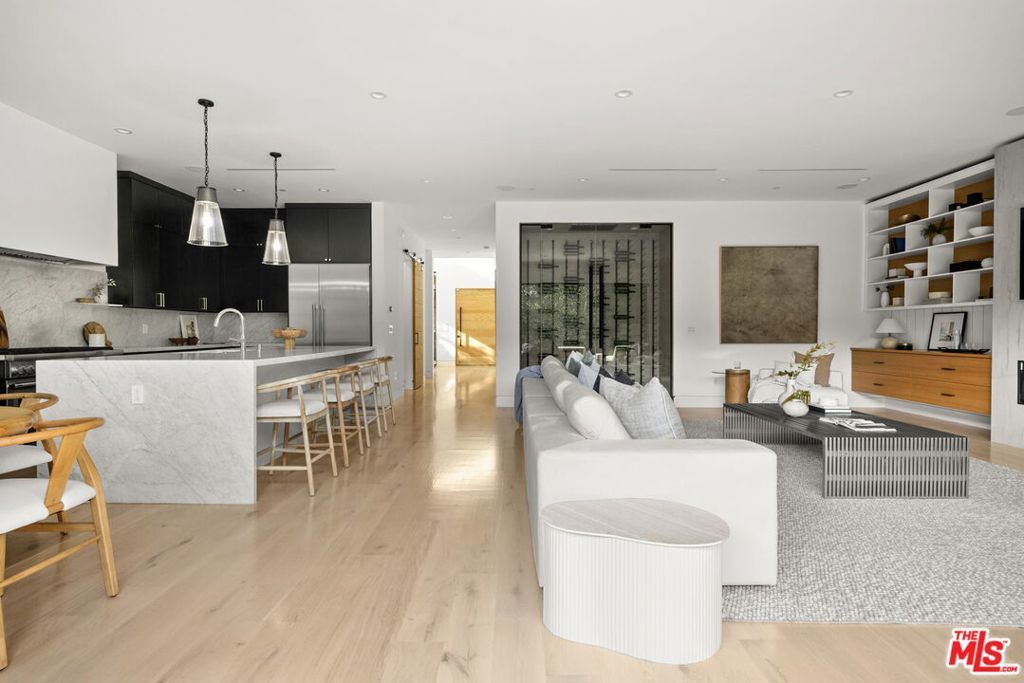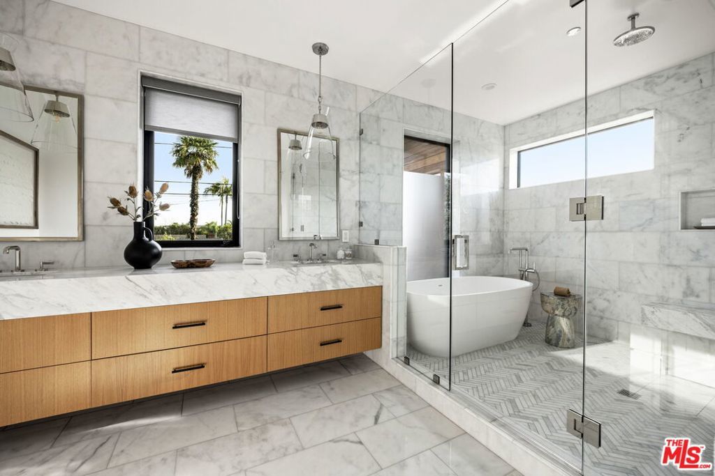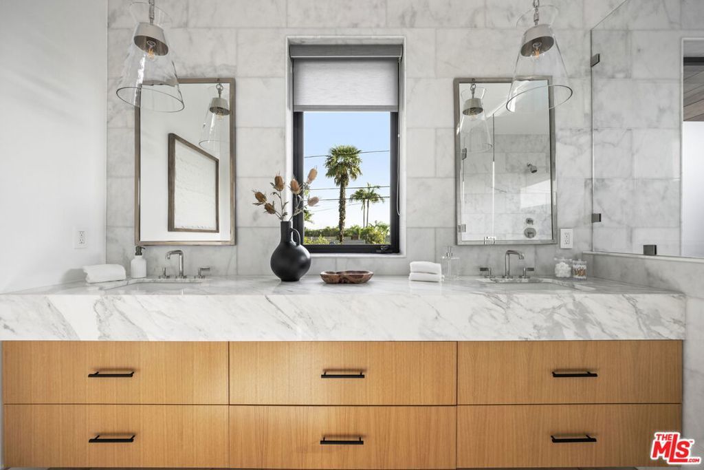 Step into a world of modern elegance in this stunning, contemporary home masterfully crafted by Rivieria Property Group. Nestled on a picturesque, tree-lined street in the heart of Mar Vista, this home captivates with its striking exteriora harmonious blend of crisp white stucco and rich imported Brazilian wood. An expansive front entry welcomes you with soaring ceilings, a sculptural steel, oak, and glass staircase, and wide-plank white oak floors that flow seamlessly throughout. The generous great room, anchored by a stunning quartzite fireplace and bespoke built-ins, invites both relaxation and refined gatherings. A unique, temperature-controlled wine room adds a touch of sophistication for the discerning connoisseur. The heart of this home, the chef's kitchen, is a masterpiece in itself. Designed with custom cabinetry, exquisite Italian Carrara marble counters and backsplash, Thermador appliances, and a show-stopping marble waterfall island, it invites both easy family dinners and effortless entertaining.Wall-to-wall glass sliders dissolve the boundary between indoors and out, revealing a private backyard sanctuary. Here, you'll find a Trex deck, sparkling pool, built-in BBQ, and cozy fire pitperfect for both intimate evenings and lively get-togethers under the stars.Upstairs, the primary suite features a chic vertical shiplap accent wall, private balcony overlooking the pool, and a spa-like en-suite bath adorned with Italian Calacatta marble. Indulge in the luxurious wet room with its deep soaking tub and rainfall shower, complemented by a double vanity for effortless morning routines. Three additional en-suite bedrooms, each thoughtfully designed with custom finishes, complete this architectural gem.Every detail of this modern masterpiece has been curated to perfection - come and experience the art of living!