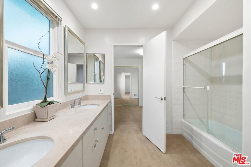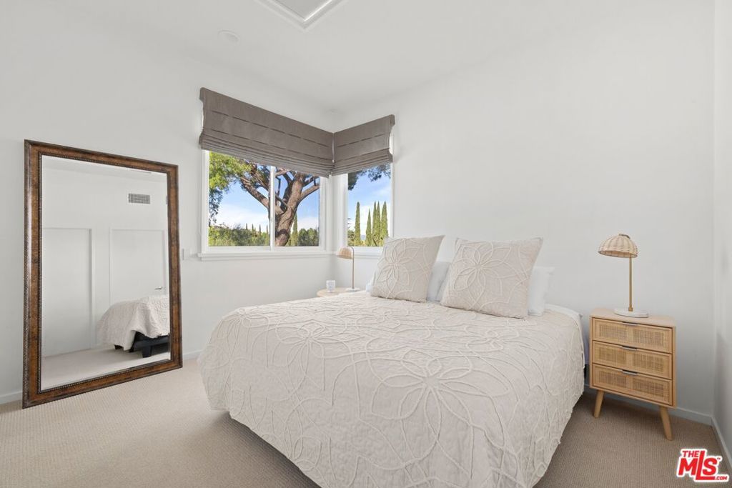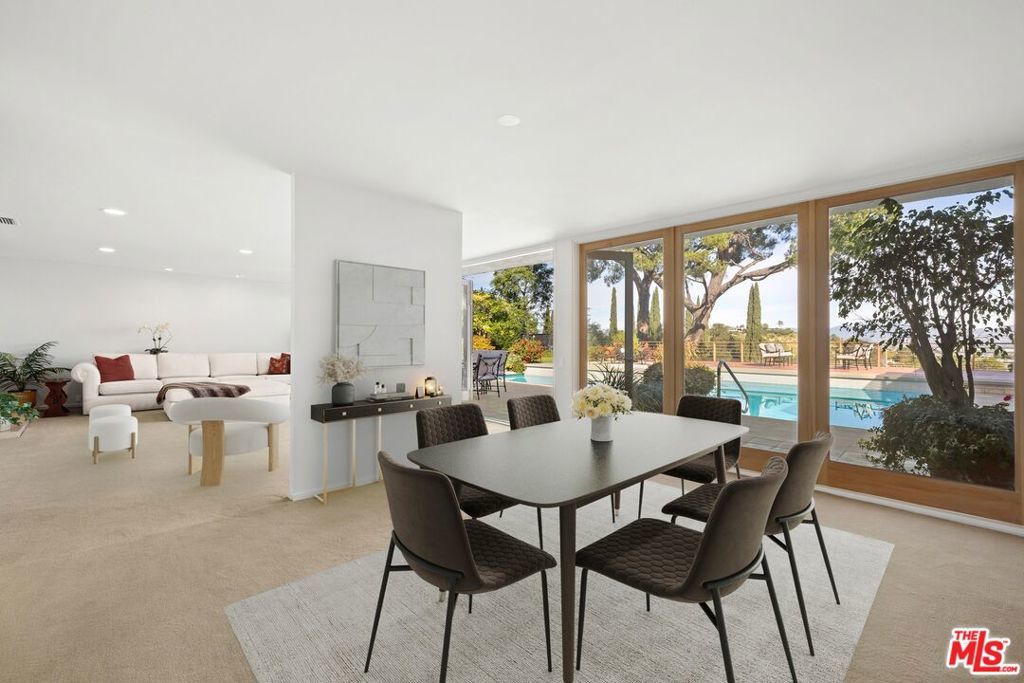 Set in the highly sought-after Encino Hills, this light-filled mid-century residence captures breathtaking mountain and valley views while offering effortless access to the 405 and 101 freeways for convenient citywide connectivity.Designed on a single level, the main home features five bedrooms and four full bathrooms, including an oversized primary suite with a generous closet and a beautifully appointed bathroom. Expansive windows fill the interior with natural light, creating a warm and inviting atmosphere throughout. The kitchen boasts updated stainless steel appliances and thoughtful modern functionality, all while preserving the home's timeless character.An entertainer's dream, the home offers seamless indoor-outdoor flow to patios and terraces, perfect for gatherings large or small, with sweeping views providing an unforgettable backdrop.Perfect for multi-generational living or hosting guests, the property also includes a substantial guest house with a private entrance, approximately 814 square feet in size, featuring a spacious primary suite, one and a half bathrooms, and a full kitchen.Additional highlights include fully owned solar panels, a Generac generator, a two-car attached garage, and a storage shed. Offering privacy, panoramic views, and enduring mid-century charm, this Encino Hills residence presents a rare opportunity to enjoy a spacious, single-level home in a prime location.