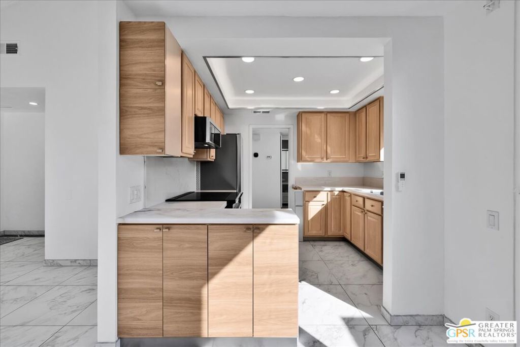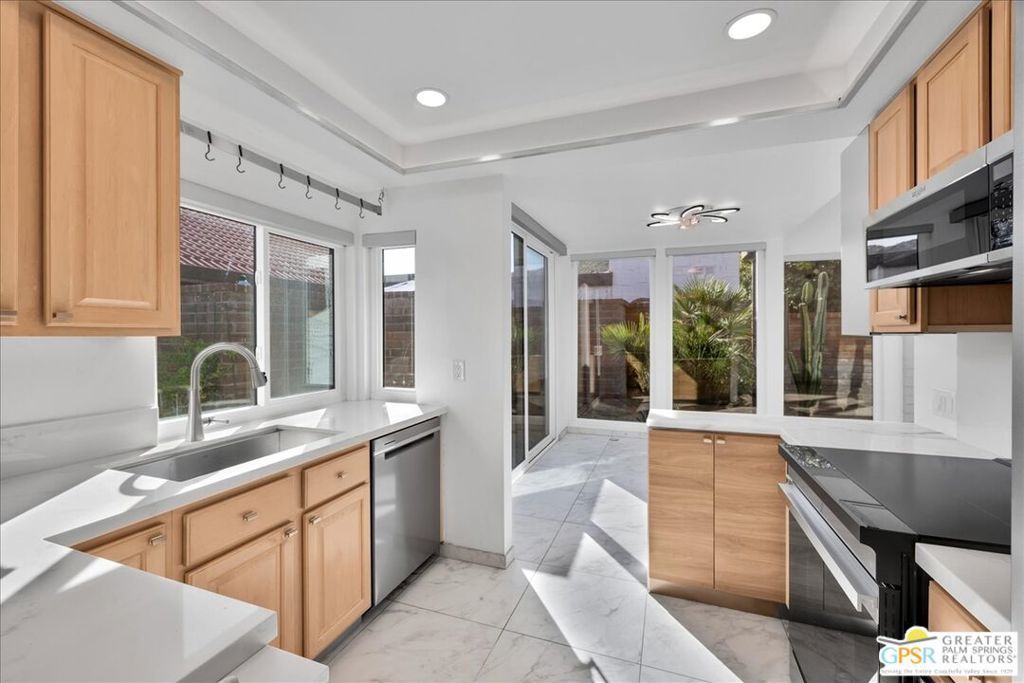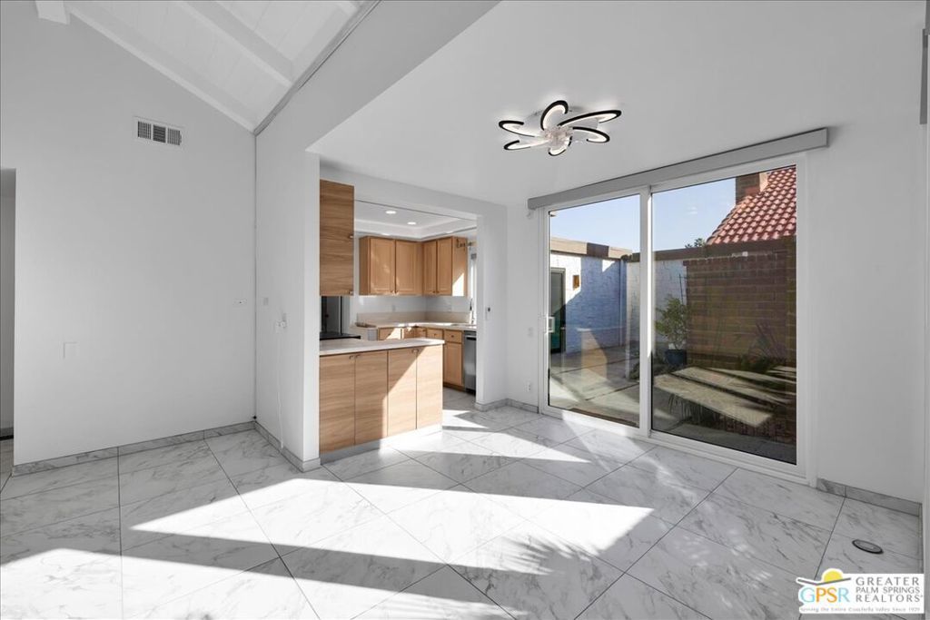 Nestled in the sought-after Canyon Sands community, this charming single detached bungalow offers the perfect blend of style, privacy, and convenience. With 2 bedrooms, 2 bathrooms, and an attached 2-car garage, this home stands out as a rare gem no shared living walls ensure a tranquil retreat. Step inside to discover tile floors throughout, a beautifully updated kitchen and bathrooms, and the comfort of dual-pane windows and sliders. Outside, your private patio awaits, perfect for morning coffee or evening gatherings under the desert sky. Canyon Sands elevates resort-style living with 7 pools, 7 spas, and sport courts, providing endless opportunities for relaxation and recreation. Plus, the HOA covers high-speed internet, premium cable, water, sewer, trash, grounds maintenance, and roof care offering incredible value and peace of mind. Whether you're looking for a full-time residence, a seasonal escape, or a property with 30-day minimum short-term rental potential, this home is a must-see. Priced at $475,000, it's the ultimate opportunity to experience the Palm Springs lifestyle. Don't wait make this desert oasis yours today!