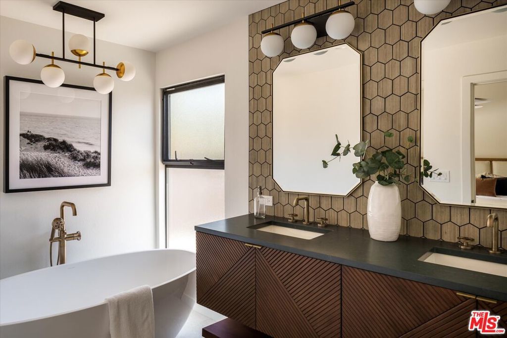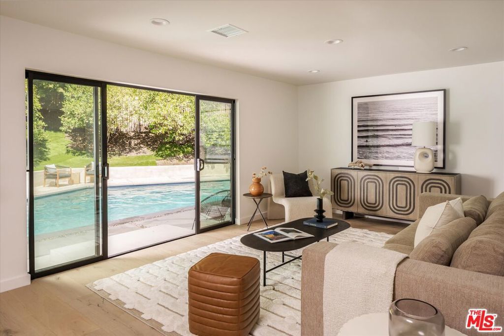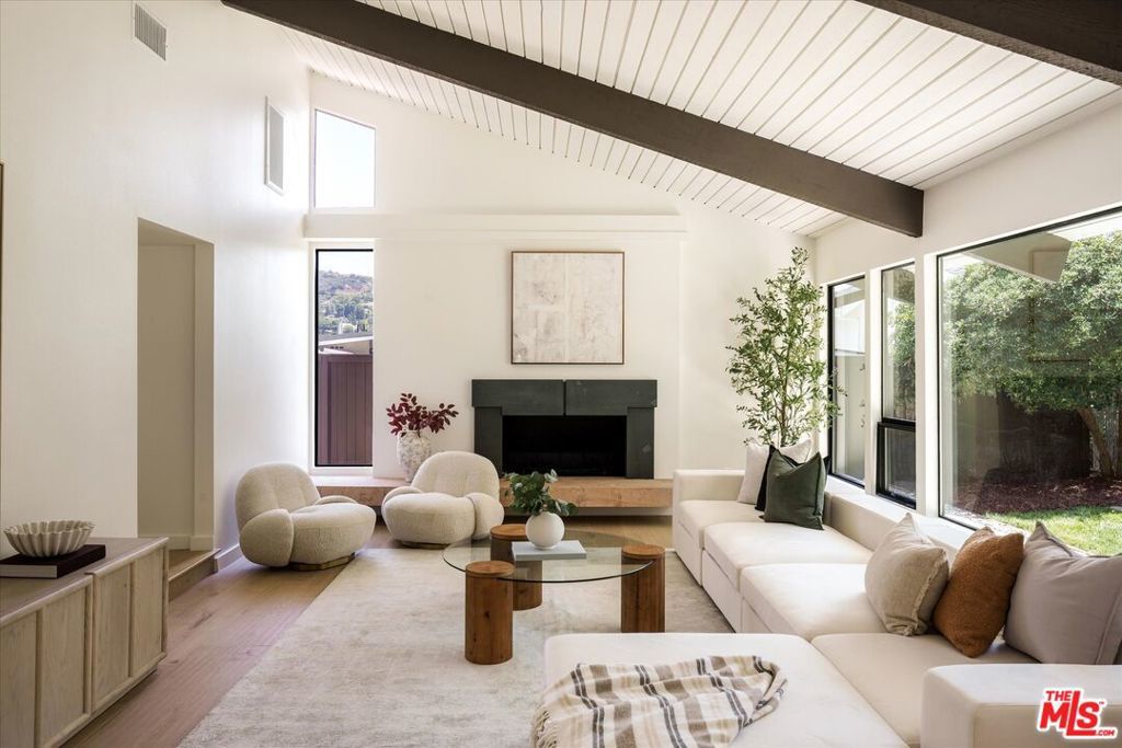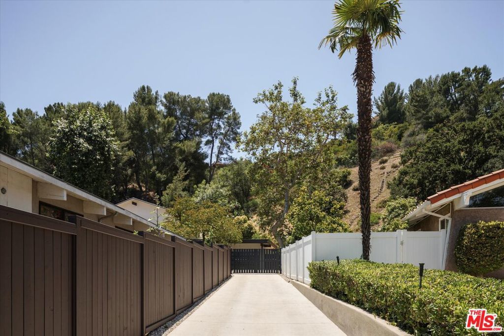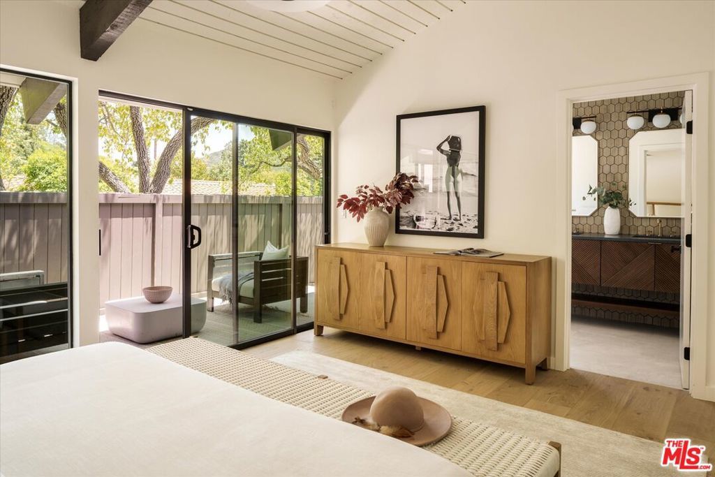 FOR LEASE for $16,900 per month OR SALE for $4,475,000! Quiet and peace is what you'll find tucked at the end of a long, gated drive on a generous flag lot in the Brentwood Hills section of Mandeville Canyon. This down-to-the-studs mid-century modern remodel is a study in quiet luxury and thoughtful living. Surrounded by hedges and flanked by your own private hillside, the property offers a sense of seclusion that's rare especially just minutes from Sunset Blvd. Vaulted ceilings create openness throughout. Two bedrooms are on the main floor, including the primary with luxurious en-suite bath and its own private patio, perfect for a morning coffee. The second features its own en-suite bath, making it an ideal guest suite, home office, or creative studio. Upstairs, three additional bedrooms & 2 full baths, plus a loft-style den create space for work, guests, study, or media. The home's scale is human, but the lot is expansive, allowing indoor and outdoor living to coexist with ease. Two large yard spaces create natural zones for entertaining. On the side, a wide flat lawn opens off the living and dining rooms, perfect for outdoor dinners, a volleyball or soccer game, or just relaxing. In the back, a totally renovated pool and patio connect to the kitchen and den, set against the hillside for added privacy. New systems including three zone HVAC, tankless water heaters, and brand new appliances by Wolf, Cove, and Sub-Zero bring comfort and convenience, while wide-plank European oak floors and clean, classic finishes keep the look grounded and timeless in mid century detail. Designer finishes and thoughtful selections throughout reflect the care that went into crafting the updated version of the home. There's ample parking both behind the gate and curbside on the neighborhood's wide streets, where underground utilities keep sightlines clear and the environment uncluttered. For those who love the outdoors, the nearby Westridge Trailhead offers a local escape with canyon paths and sweeping ocean views, perfect for morning hikes, dog walks, or just clearing your head. Within the boundaries of highly regarded public schools (Kenter Canyon Elementary, Paul Revere Middle and Palisades High School) and close to some of LA's most sought-after private campuses, this location blends the best of quiet canyon living with access to everything the Westside has to offer. Minutes from Amici, Brentwood Country Mart, the farmer's market on Graetna Green as well as the shops on Montana in Santa Monica. Originally built as the model home for the neighborhood in the early 1960s and held by the same family ever since, it's been expanded and reimagined for modern living. Though rooted in history, the home feels brand new. Only the mature trees, original MCM design, and wood-burning fireplace hint at the eras of days gone by. It's truly the best of both worlds: classic mid-century Brentwood with all the comforts and confidence of new construction. Floorplan measured by Cubi Casa. Presumed accurate but not guaranteed.