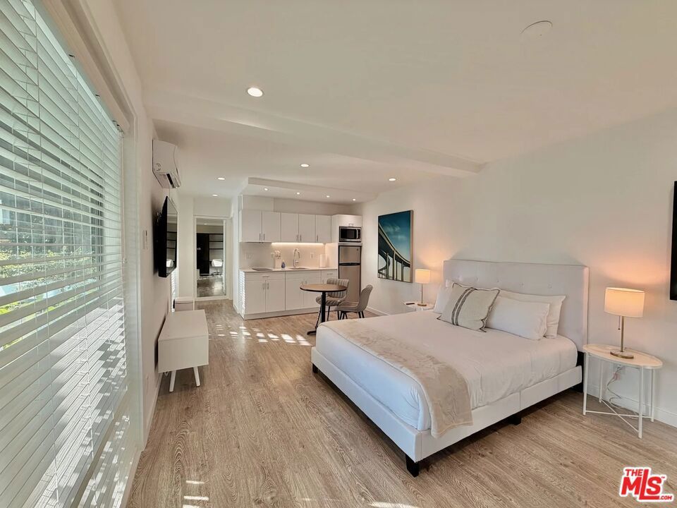 Furnished executive studio overlooking the pool at The Wilshire Embassy, a refined Mid-Century apartment community in the heart of Miracle Mile. Ideal for corporate housing and extended stays, this light-filled residence features air conditioning, a flat-screen, wall-mounted TV and a large picture window with calming pool views. The modern kitchenette is equipped with a stainless steel refrigerator, microwave, and electric cooktop - perfect for professionals seeking comfort and efficiency. Thoughtfully furnished with an open, functional layout, this studio offers a turnkey living solution for short-or-long-term stays. Located along Wilshire Boulevard, just minutes from major studios, medical offices, corporate hubs, and cultural institutions. Walkable to museums, the SAG-AFTRA Building, Equinox, Ralphs, cafes, and services, with easy bus access and new Metro subway stations opening in 2026 for seamless citywide connectivity.