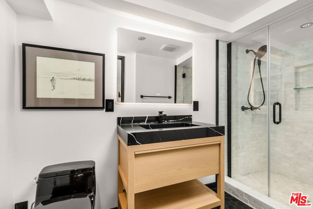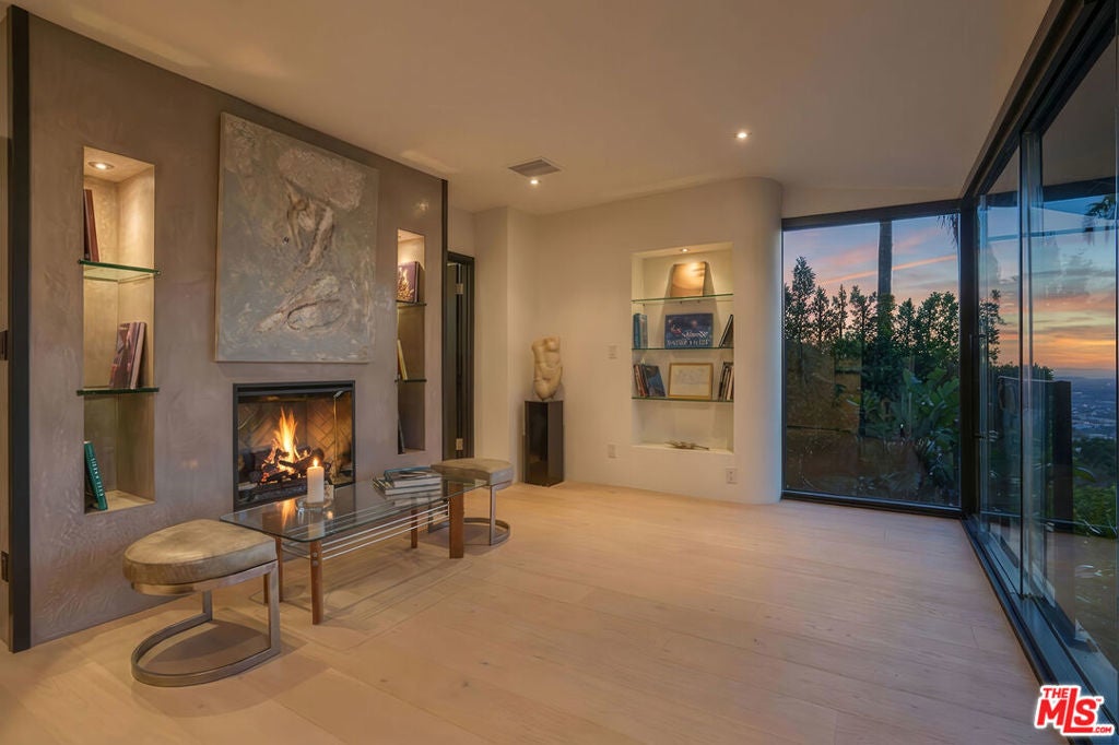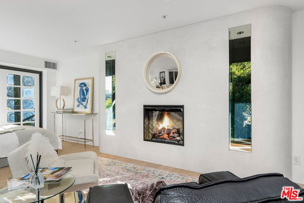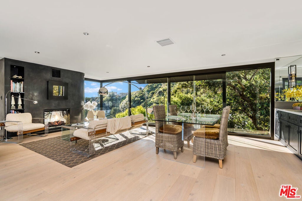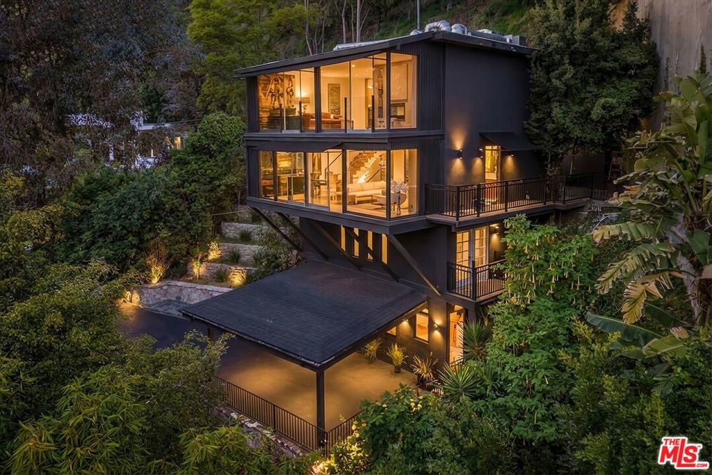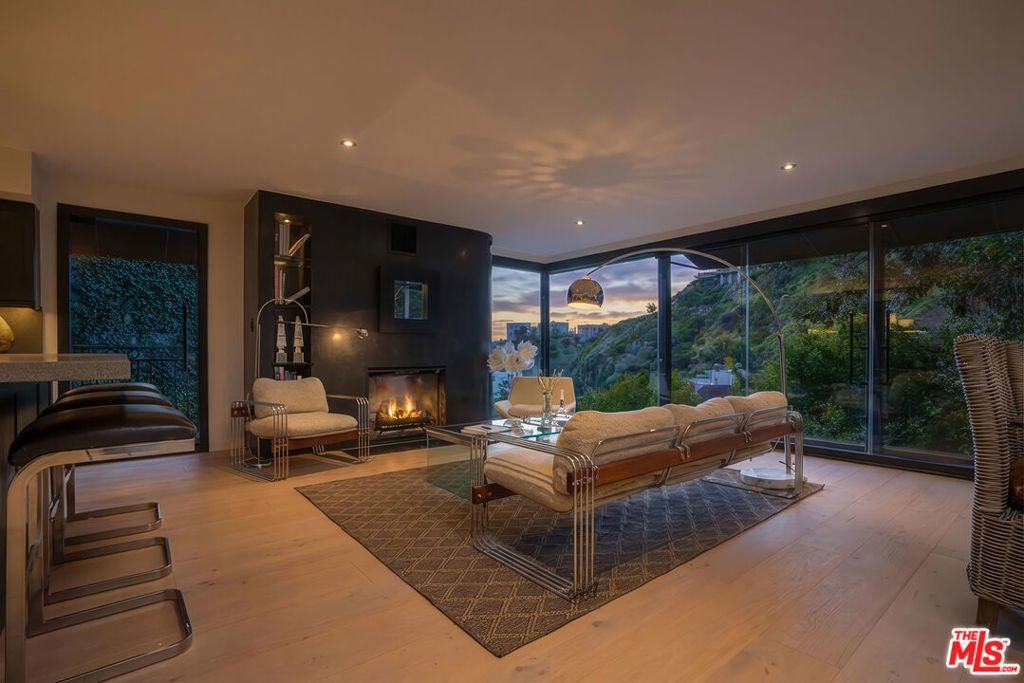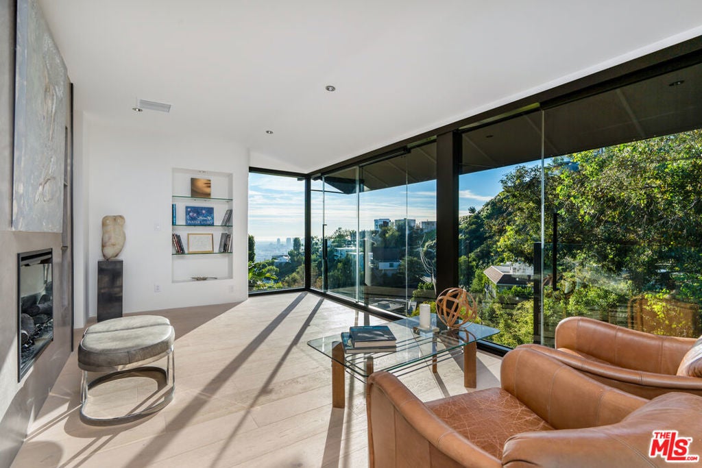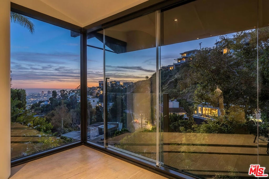 Gated, Floor to Ceiling, Glass-Wrapped Architectural Sanctuary with City and Ocean Views, Rare Outdoor Living Above Sunset Plaza! Floating high above Sunset Plaza, this newly reimagined, iconic architectural, 2 primary suite, 4 bath, plus permitted Junior ADU, residence by Roger Davis is a rare expression of glass, light, and elevated living in the Hollywood Hills. Privately gated, with 2+ parking and set beyond a dramatic arrival, inside, the architecture unfolds with intention. Wide-plank floors guide you through expansive living spaces wrapped in floor to ceiling glass, capturing breathtaking city lights and ocean views that shift beautifully from sunlit days to glittering nights. A striking glass staircase serves as a sculptural centerpiece, allowing natural light to flow effortlessly between levels and enhancing the home's airy, gallery-like feel. The newly remodeled open kitchen blends refined design with modern functionality, perfectly positioned for elevated entertaining and everyday living. The main residence features two full, large primary suites, each conceived as a private sanctuary with walk-in closets, spa-inspired baths, and dramatic walls of glass framing the skyline. Washer/dryer hookups on every level add an uncommon layer of comfort and convenience. What truly distinguishes this home is its exceptional outdoor living, a rarity in the Hollywood Hills. A large, grassy, flat yard, with additional outdoor seating areas, and a private balcony create a resort-like setting ideal for entertaining, lounging, or quiet moments above the city. An attached junior ADU with its own private entrance, bedroom, and bathroom offers remarkable flexibility for guests, creative use, or income potential, all while remaining seamlessly integrated into the architecture. Bold, refined, and unmistakably iconic, this Roger Davis creation is more than a home, it is a statement of design, privacy, and elevated Los Angeles living. A must see!