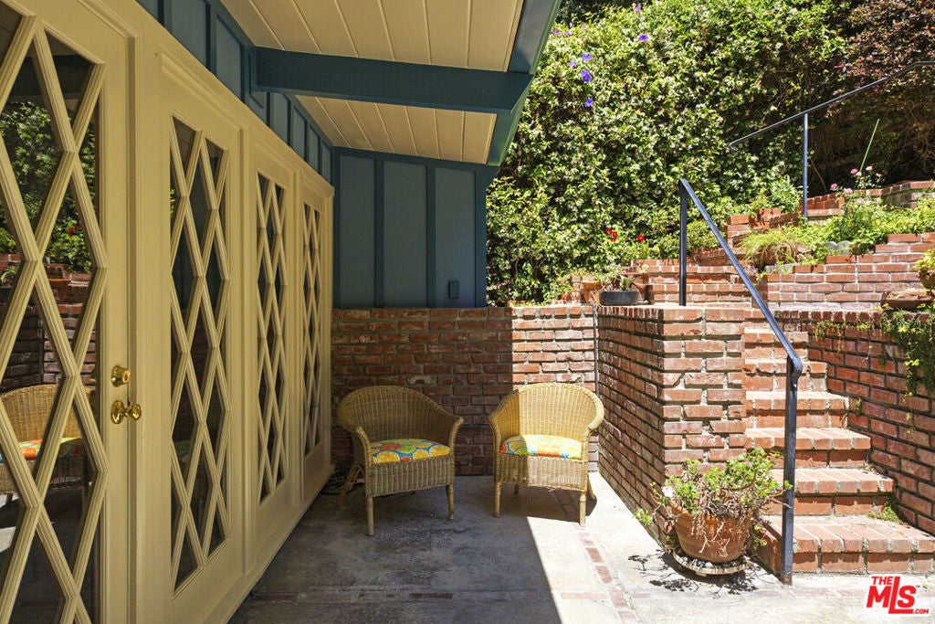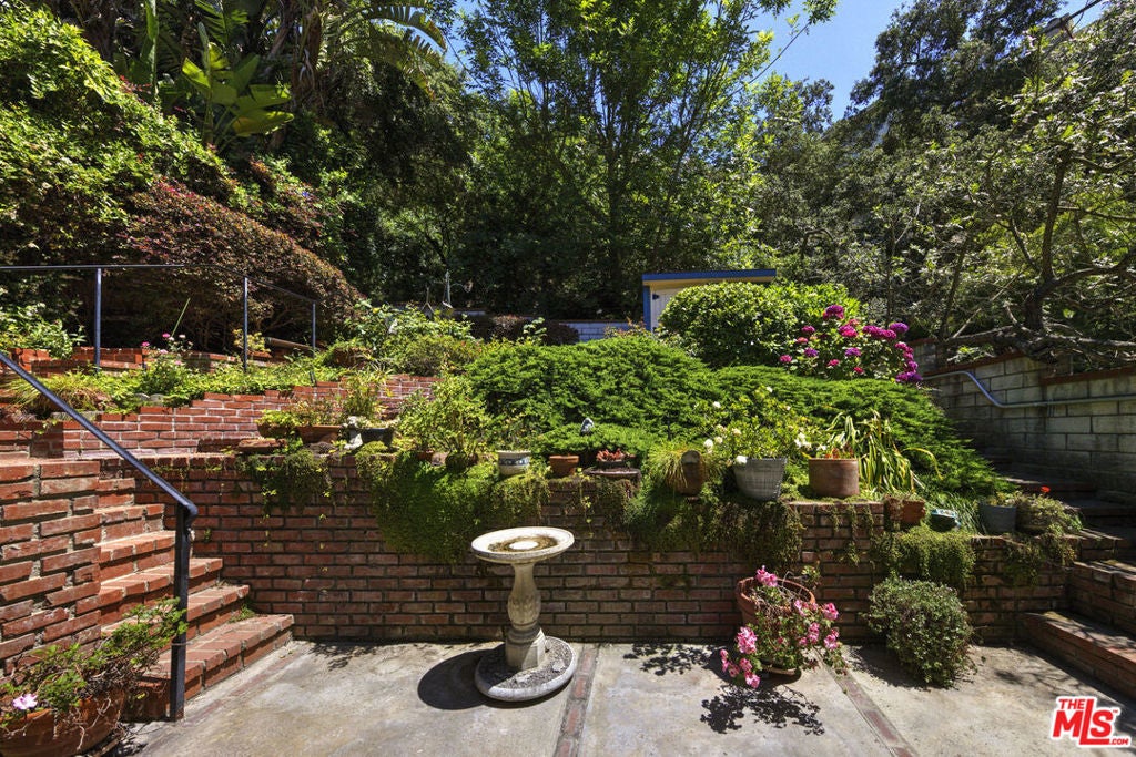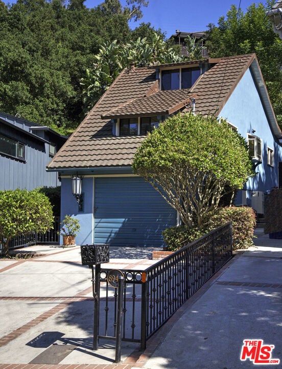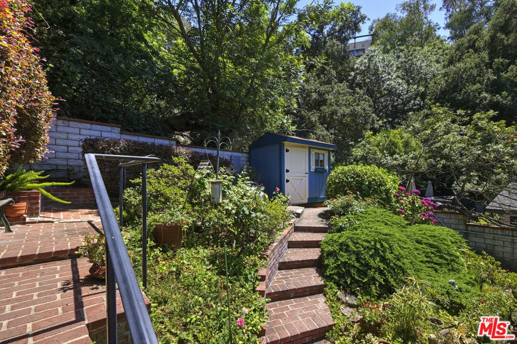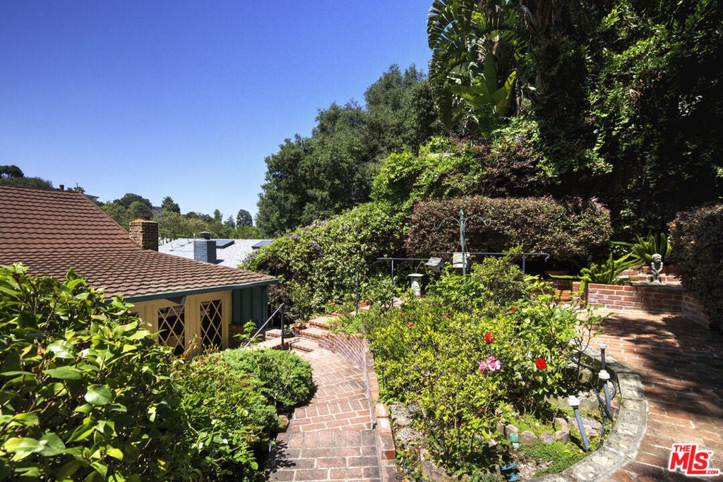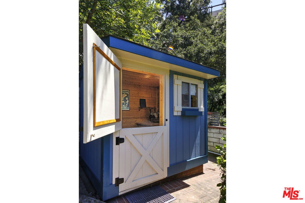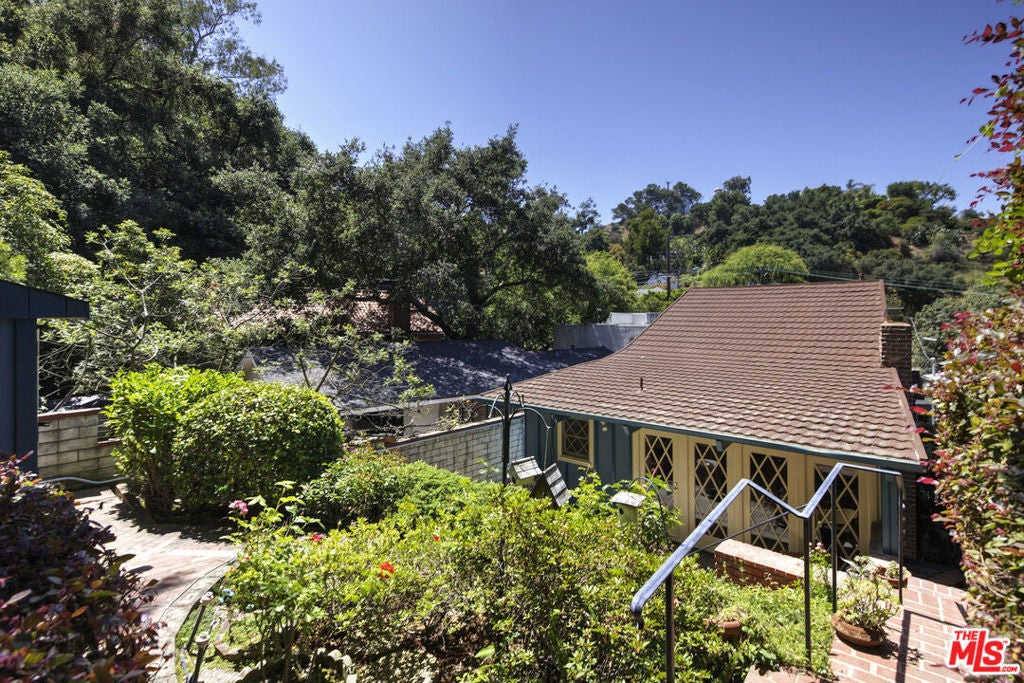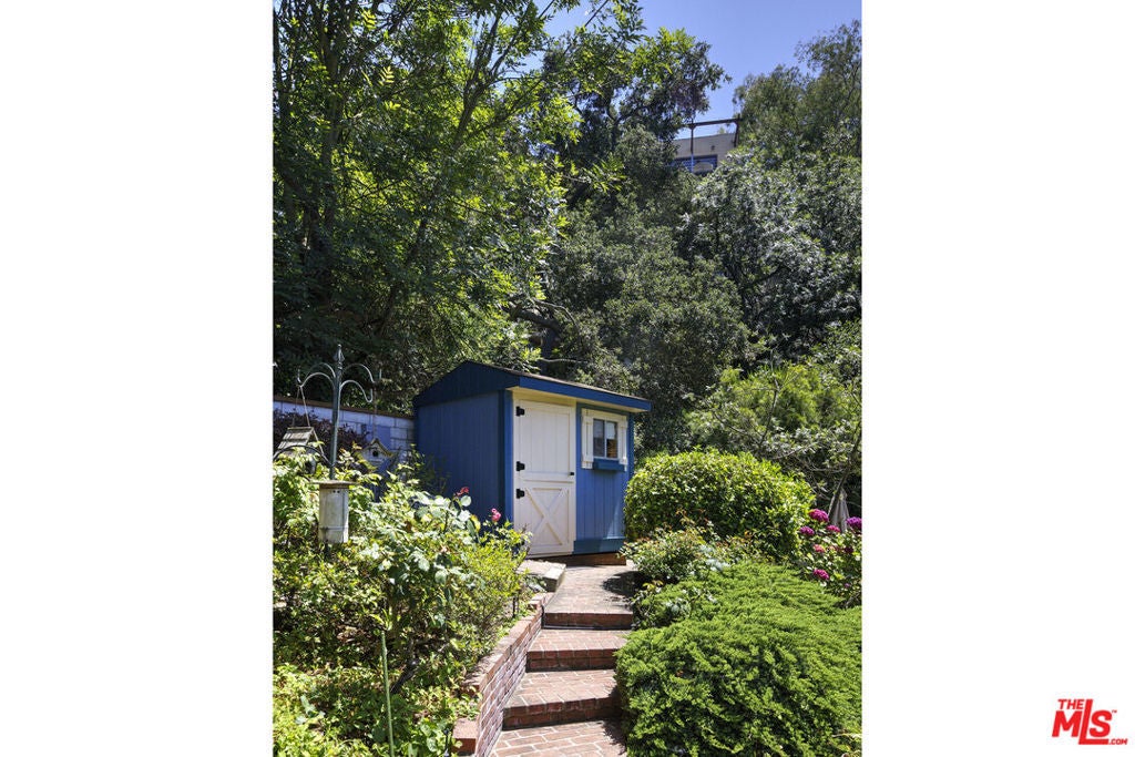 La Maison Bleue is a Mid-Century 1956 Storybook Cottage, perfectly sited in the Hollywood Hills. This Single Family Home has 3+ parking spaces, including a garage! Thoughtfully and completely remodeled to suit contemporary living while honoring its original charm. One bedroom plus a large **loft or second bedroom**. Warm, soft, and grounded in neutral tones, this home radiates tranquility. One must see in person to truly feel the magic. The brand-new kitchen is a chef's dream, featuring brand new high-end appliances, handmade custom White Oak cabinetry, and stunning Taj Mahal quartz countertops. Solid Oak floors flow seamlessly throughout the home. The primary bedroom includes a brand-new en-suite bathroom and a generous walk-in closet. A second full bathroom is conveniently located just off the living room. The laundry area, outfitted with a new LG Wash-tower system, is thoughtfully placed inside the home for ease and comfort. The second bedroom is a versatile loft space complete with a new closet and custom White Oak shelving units. It can easily be enclosed or enjoyed in its current open format, ideal as a guest room, office, or creative studio. Anchoring the living space is a striking brick fireplace wall, adding warmth and character. Step outside into a private Zen retreat: a blooming, auto-irrigated garden that's both enchanting and easy to maintain. At the top of the garden, a whimsical He-She Shed invites imagination and inspiration. Additional features include copper plumbing throughout, a brand-new 200-amp electrical panel, plus another 100-amp panel setup for a hot tub and sauna. This single-family residence offers the rare charm of a canyon cottage with the price tag of a WEHO condo but without the high monthly fee! Completely turn-key and ready to move in. This home is gorgeous!