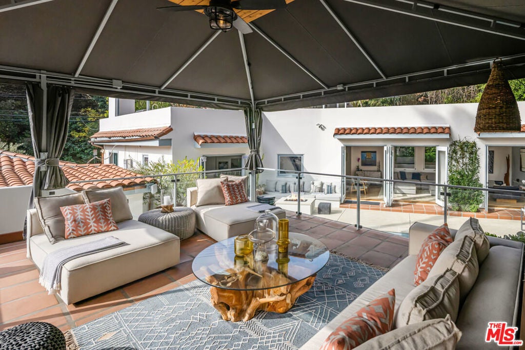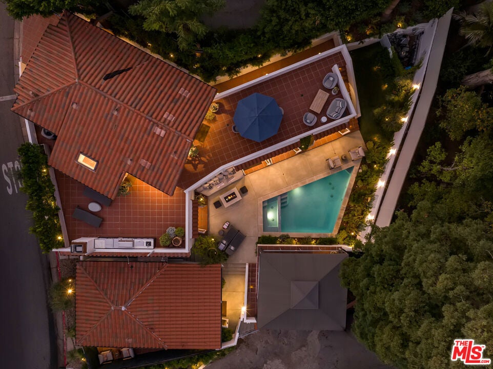 Nestled in the vibrant heart of Laurel Canyon, just minutes from the legendary Sunset Strip, this newly renovated ~3300sqft Spanish contemporary smart home embodies the essence of Hollywood Hills living. Located in the coveted Wonderland School District and eligible for Mulholland Tennis Club membership, this residence blends modern luxury with true bohemian spirit. The four bedroom and four bathroom main house features a spacious open-concept living and dining area, bathed in natural light, flowing seamlessly to an indoor-outdoor backyard oasis. Entertain effortlessly with a fire pit, pool & spa, and a rooftop BBQ & cabana lounge. The chef's kitchen boasts top-tier appliances, two luxurious primary suites offer spa-inspired ensuite bathrooms with steam showers, while a generous guest bedroom (with ensuite) and additional full bathroom on the main floor provide ample space for family or visitors. The detached two-car garage and extra private parking for two more vehicles, four spots in total, add convenience and functionality. The upstairs primary suite opens to a sun-soaked rooftop deck with treetop canyon views, perfect for sunset sound baths, morning yoga, or al fresco dining. The backyard boasts a separate ~600 sq. ft. guest house, complete with its own entrance, bedroom, bathroom, kitchen, and private outdoor space. Live the California dream in the canyon, where timeless charm meets contemporary elegance.