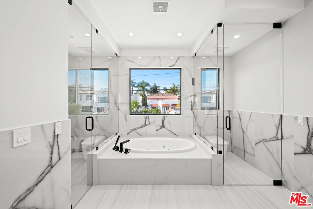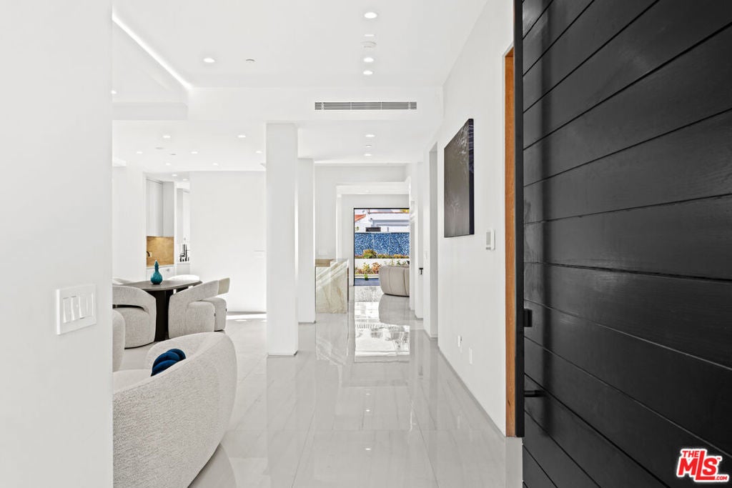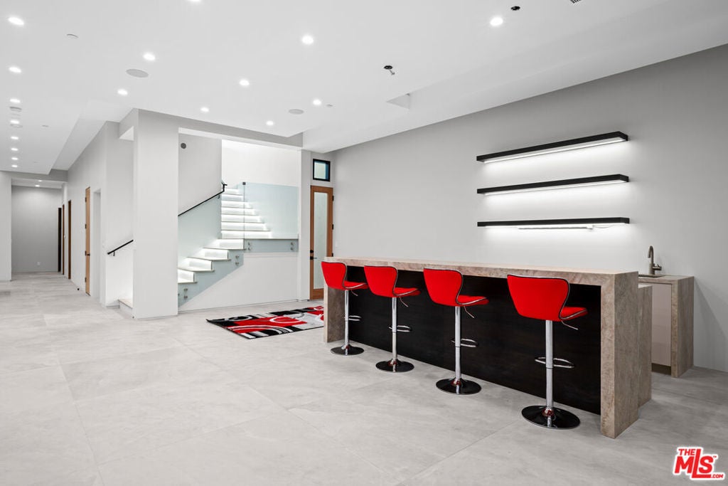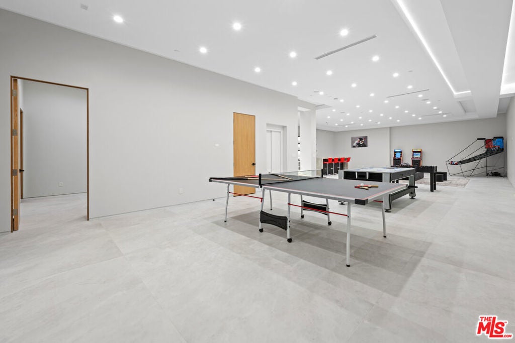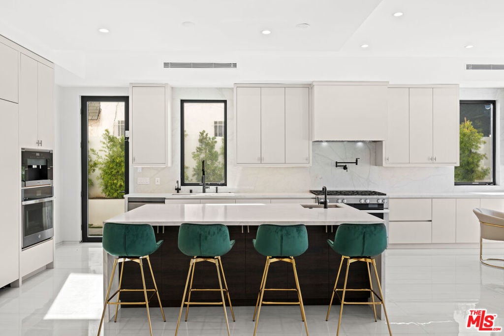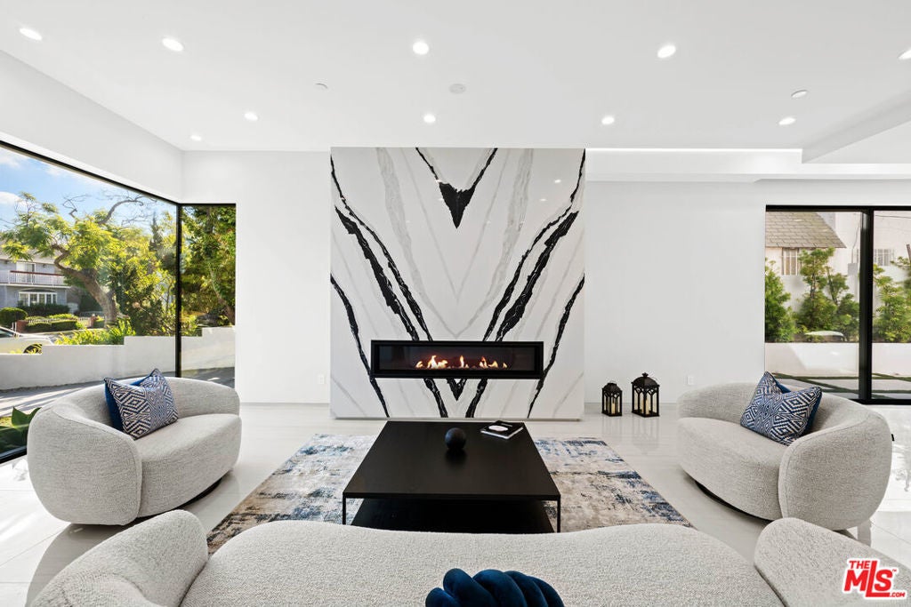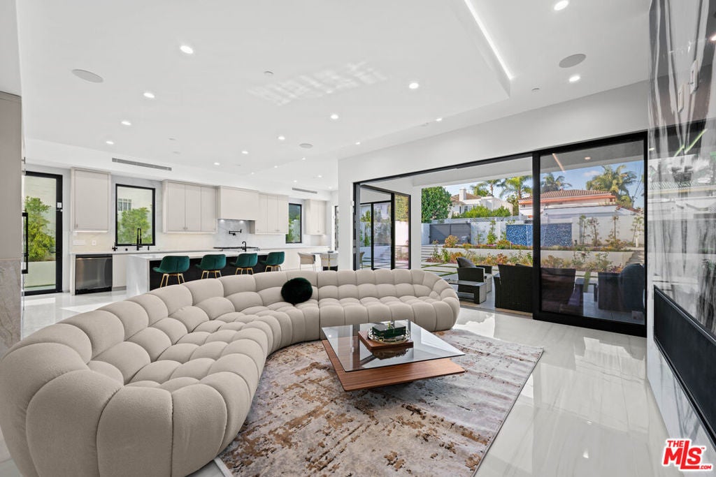 Exquisite Brand-New Contemporary Modern in Beverly Hills. Nestled in one of Beverly Hills' most sought-after neighborhoods, this brand-new contemporary modern residence offers an exceptional blend of sophisticated design, luxurious finishes, and state-of-the-art amenities. With striking curb appeal, expansive living spaces, and seamless indoor-outdoor flow, this home defines modern luxury.The open-concept floor plan is highlighted by 12-foot ceilings in the main living areas, creating a sense of grand volume. Expansive Fleetwood sliding windows and doors flood the space with natural light, while recessed lighting adds warmth and ambiance throughout. High-end finishes are evident at every turn, including Italian porcelain tile floors in the living areas and rich mahogany wood in all bedroom doors and floors. The chef's kitchen features Miele appliances, including a full-size refrigerator and freezer, an 8-burner stovetop, dual ovens, and a built-in espresso machine. A large central island provides ample space for meal prep and casual dining, and the kitchen flows effortlessly into the living and dining spaces perfect for entertaining guests or enjoying quiet family moments.Each of the home's bedrooms offers a serene retreat with spacious walk-in closets and spa-inspired bathrooms featuring custom finishes. The primary suite stands out with floor-to-ceiling sliding glass doors that open to a private balcony overlooking the pool and spa. The en-suite bathroom is a sanctuary, featuring an 8-jet soaking tub, a rain shower with steam, and sleek stone finishes.The expansive lower level includes a vast game room with 14-foot ceilings, ideal for a gym, home theater, or additional entertainment space. A full bar provides the perfect place to host guests, while the dedicated theater room offers a true cinematic experience. The fitness center is equipped to meet your every wellness need. An elevator ensures easy access to every level of the home.Outside, the beautifully landscaped grounds feature a stunning pool and spa with a waterfall feature, and a custom fire pit ideal for evening gatherings. The expansive backyard provides ample space for high-end entertaining or private relaxation. Smart home technology integrates lighting, climate control, security, and audio-visual systems, providing convenience at the touch of a button.Just moments from world-class shopping, dining, and entertainment, this property offers the ultimate in modern living, luxury, and convenience in one of the world's most prestigious locations.