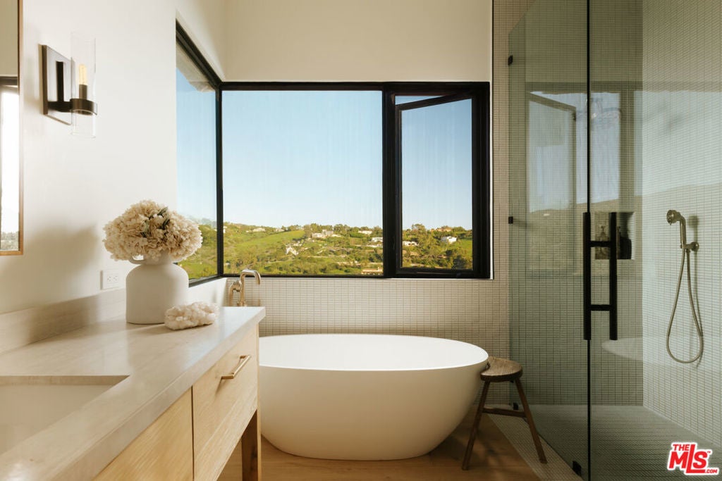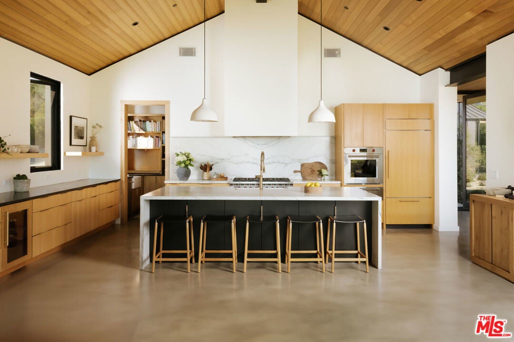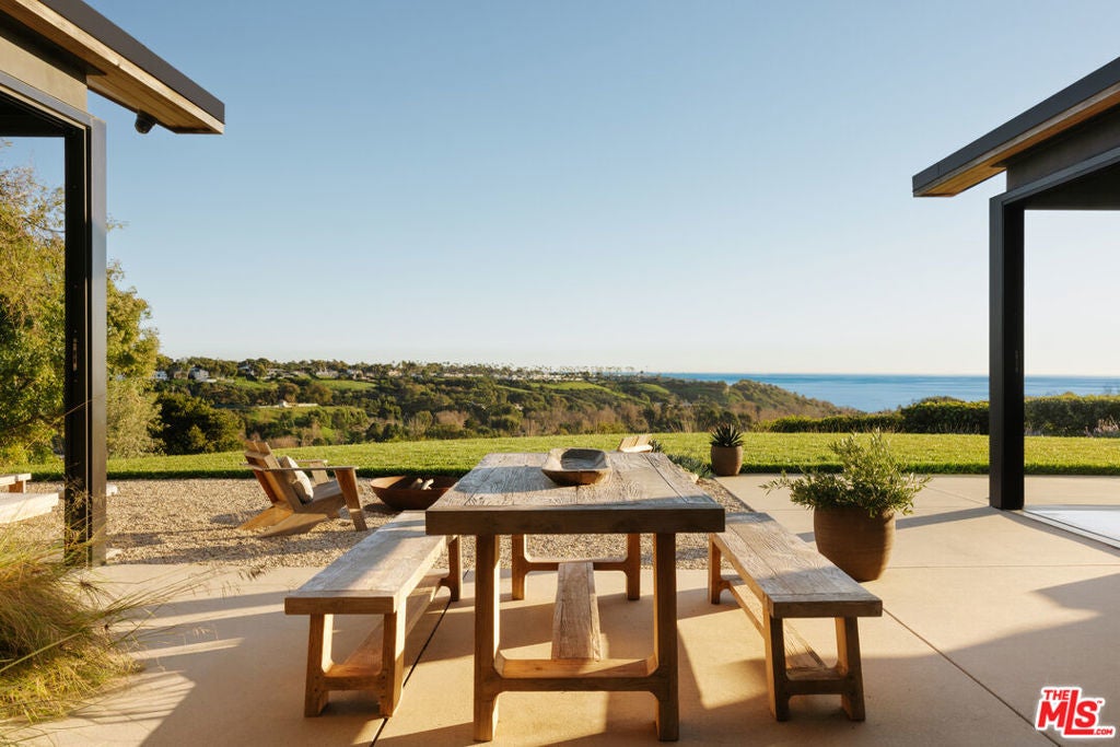 Set on a private knoll overlooking Zuma Beach and Bonsall Canyon, 5792 Calpine Drive is an intentionally designed modern compound spanning 1.8 acres, with expansive ocean and mountain views.Upon entering through the private entrance, this thoughtfully designed modern farmhouse unfolds via a gated gravel motor court that serves multiple detached structures, creating a sense of arrival, privacy, and luxury rarely found in a lease offering.The main residence is anchored by vaulted, cedar-clad ceilings, polished concrete and European white oak plank floors, and expansive sliding glass walls that frame the surrounding landscape. Living and dining spaces open seamlessly to curated outdoor rooms designed for entertaining, lounging, and sunset gatherings. A statement fireplace and clean architectural lines ground the interiors with warmth and purpose.The open chef's kitchen is both sculptural and functional, featuring custom cabinetry, stone countertops, premium appliances, and a generous island. A secondary prep kitchen and pantry enhance functionality and support effortless hosting.Private bedroom suites are positioned throughout the compound for comfort and privacy. The primary suite offers a serene retreat with a spa-inspired bath, freestanding soaking tub, glass-enclosed shower, and tranquil hillside views. Additional baths and powder rooms showcase elevated finishes, including bespoke stonework, refined fixtures, and richly patterned wallpaper that adds depth and character.Outdoor living is woven throughout the property, with multiple dining and seating areas, stone pathways, native landscaping, an open-air shower, cold plunge, and a cedar soaking tub set against expansive coastal vistas. A detached wellness studio with gym and infrared sauna completes the experience, while a private, detached one-bedroom guest house provides flexibility for guests, creative use, or extended stays.A rare opportunity to lease a design-forward modern compound that balances privacy, architectural integrity, and a relaxed coastal sensibility.Located just moments from Malibu's beaches, hiking and horse trails, restaurants, and lifestyle amenities.