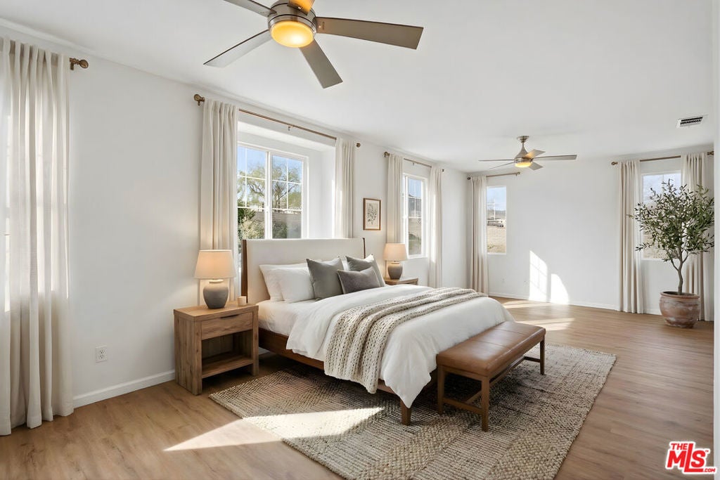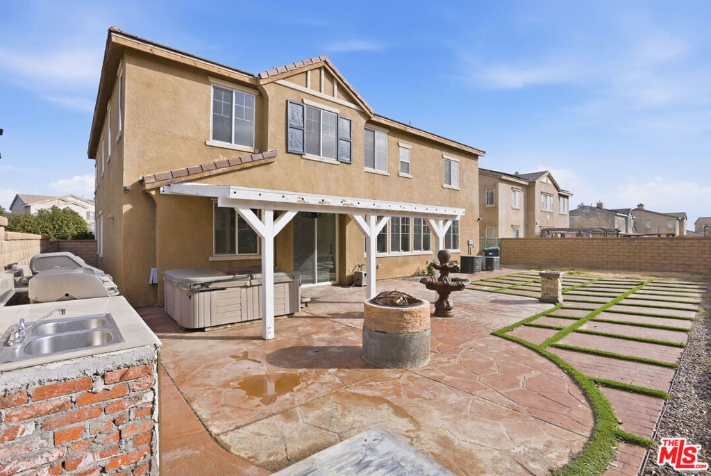 Welcome to this Ana Verde stunner in the heart of Palmdale's Antelope Valley. A spacious 4-bedroom, 3-bath home with the layout, light, and livability today's buyers are looking for. Step inside to an open, airy floor plan featuring fresh, bright interiors, recessed lighting, and a generous great room anchored by a cozy fireplace, perfect for movie nights or hosting friends. The kitchen is a true centerpiece, featuring white cabinetry, quartz countertops, stainless steel appliances, and ample prep and storage space, ready for everything from quick weekday dinners to holiday cooking. Upstairs and throughout, you'll love the abundance of natural light, clean finishes, and comfortable room sizes. The primary suite offers a relaxing retreat with an oversized bath featuring dual sinks, a separate soaking tub, and a walk-in shower, your own private retreat at the end of the day. Out back, enjoy a backyard built for entertaining: a covered patio, stylish hardscape, and plenty of room to lounge, grill, and gather under the open sky. Located near neighborhood parks, schools, and convenient shopping/dining, this Ana Verde home delivers space, comfort, and that ''this is the one'' feeling the moment you arrive.