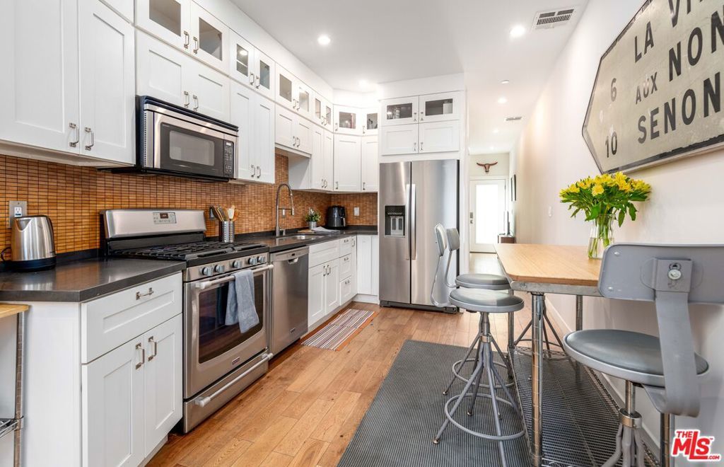 Discover an exceptional investment opportunity with this remarkable and rare gem of a compound that includes two FULL side by side homes (only classified as a duplex in assessor records but they are each full homes) along with an additional permitted Accessory Dwelling Unit (ADU) in the rear. The main house ( 3310 Durango) features a gated front yard and a spacious front and rear porch and offers 3 bedrooms and 2 baths, all infused with charm and stylish upgrades. Upon entering, you're welcomed by abundant natural light, hardwood floors, and a modern open-concept living/dining area. The bright kitchen is a chef's delight, showcasing stainless steel appliances, generous counter space and white bead-board cabinets. In home laundry, A/C and skylight complement the home. Adjacent to the single story house is the second home (3310- 1/2), constructed in 2015, which includes two large bedrooms with vaulted ceilings, one and a half baths, two separate living areas (ideal for work from home scenarios), a new HVAC system and in-unit stackable laundry, all adorned with designer touches, beautiful engineered hardwood flooring and natural light throughout. This unit will be delivered vacant, creating an attractive owner occupied investment opportunity. Completing this property is the fully permitted ADU (3312), a bright and inviting space featuring an efficiency kitchen, ample storage, 3/4 bathroom and a loft that accommodates a queen-sized bed. The two main homes each come with 2 tandem parking spaces and the ADU with one parking space. This is an ideal set up for someone looking for a compound or a multi-family style property. Located in a highly sought-after area, this walkable property with award winning neighborhood schools, is just minutes from the Arts District and downtown Culver City, with convenient access to major thoroughfares and the metro station. Pictures do not do it justice. You must come and see it in person to appreciated all it has to offer.