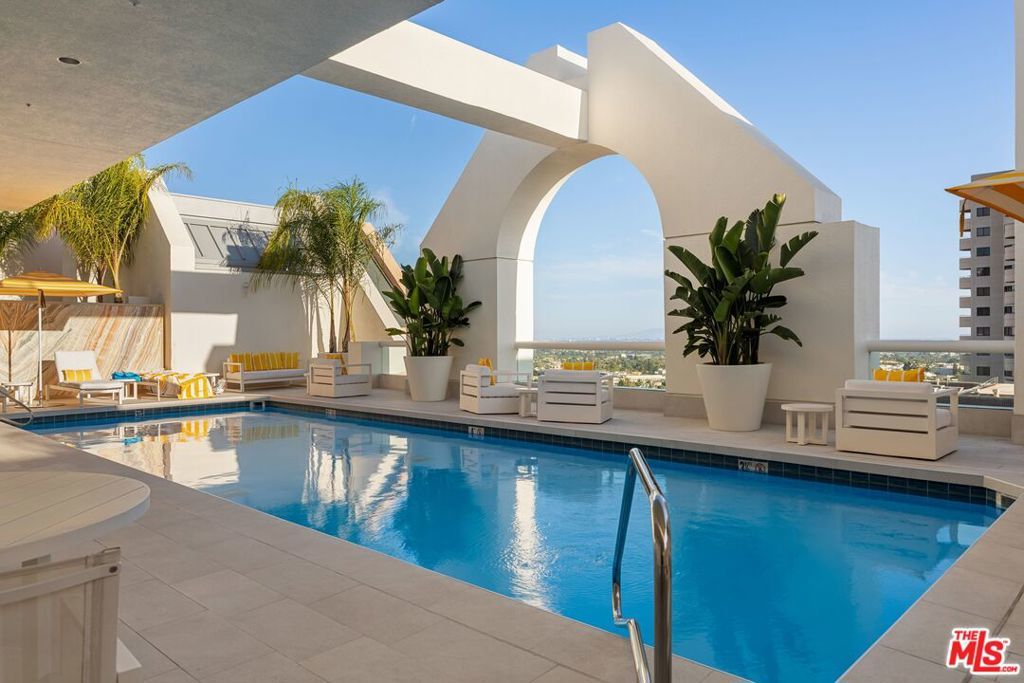 Elegant and extensively upgraded front-facing residence in The Dorchester is available for lease. Spanning approximately 1,404 sq.ft., this unit features 2 bedrooms and 2 bathrooms, including a generously scaled primary suite with walk-in closet and a large bath. The open kitchen features stainless steel appliances and a breakfast bar, flowing into the dining area and living room with hardwood floors and decorative fireplace. Expansive windows bring in natural light and showcase Wilshire Corridor views from every room. Fresh paint and an in-unit laundry area complete the offering. Residents enjoy a full-service setting with 24-hour valet, rooftop pool and sun deck, gym, and sauna. Ideally positioned adjacent to Century City and Beverly Hills, and just a few blocks from Westwood Village and UCLA. No pets. One-year minimum lease. Water, gas, sewer, and trash included. Tenant to pay HOA move-in and move-out fees.