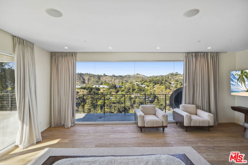 2ND HUGE PRICE IMPROVEMENT IN 3 MONTHS! Suspended above the city within one of Beverly Hills' most exclusive, celebrity-favored gated enclaves, 9716 Oak Pass Road is a striking contemporary estate offering exceptional privacy, architectural distinction, and breathtaking panoramic views. The community is gated, and the residence itself is further secured behind its own private gate and drive, creating a rare and dramatic sense of arrival. Spanning approximately 6,244 square feet across three dramatic levels, this modern sanctuary is wrapped in walls of glass that capture canyon vistas from nearly every room, delivering a seamless indoor-outdoor lifestyle throughout. A signature architectural highlight is the glass-enclosed skybridge hallway suspended above the infinity-edge pool, serving as a sculptural centerpiece on the main level and elevating the home to true statement-level design. The residence offers a total of four bedrooms, including an expansive and private primary suite retreat with commanding views, oversized walk-in closets, and a spa-inspired bath. Three additional guest bedroom suites provide exceptional comfort and privacy. Designed for both refined daily living and elevated entertaining, the home features a gourmet chef's kitchen, sophisticated formal and informal living areas, a private executive office anchored by a dual-sided fireplace, and a dedicated private theatre/media room. Multiple view terraces and decks extend the living experience outdoors, while the floating infinity-edge pool appears to merge with the skyline, creating a resort-style setting high above Beverly Hills. Set among notable neighbors within an elite and discreet hillside enclave, this exceptional contemporary residence delivers a rare combination of privacy, prestige, and iconic architecture on one of Beverly Hills' most coveted streets.