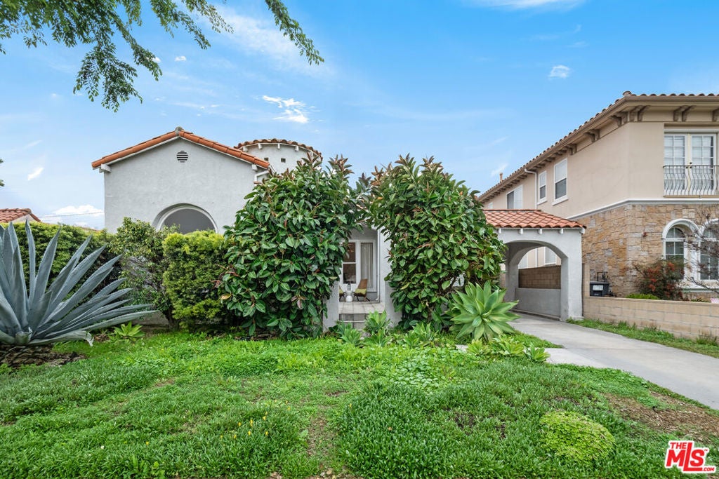 This charming Spanish style house offers three bedrooms and two bathrooms in a desirable location. Inter block public park great for kids to play. Short distance to Horace Mann elementary school, shops and restaurants. The home features lush landscaping, charming architecture and a good size lot. The layout is designed to be spacious, with abundant natural lighting throughout. Living room with cozy fireplace and high ceiling leads to dining room with French windows. Creates a warm and inviting atmosphere. Laminated wood flooring adds a touch of elegance. The primary bedroom provides a peaceful retreat, with a spacious layout and ample natural lighting. The two additional bedrooms offer comfortable accommodations. The home landscaping and ample outdoor space allow for enjoyment of the natural environment. Detached two car garage with long car port driveway. Plenty of storage space. Easy to show.
