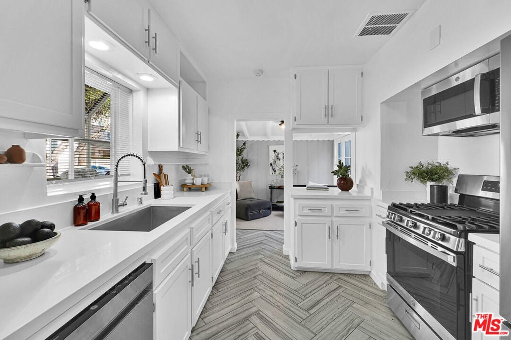 LOCATION, LOCATION, LOCATION!!! PRIVATE 4 BEDROOM home with tons of charm & tons of yard space!!! This traditional home is located in the heart of Beverly Grove/Melrose area. Entrance to the home has fully hedged and landscaped, plus gated for PRIVACY, enjoy this character-rich cottage in peace. The country kitchen is outfitted with stainless steel appliances and flows in between the dining room and the breakfast nook. Nook overlooks the private backyard that is your own secret garden. Room to barbeque and entertain. WASHER & DRYER is located in home PLUS there is a garage with ELECTRIC CAR CHARGER. Soak in the serenity and enjoy the fresh air in your own home. Just a short distance away from Melrose Place and all the trendiest shops and restaurants including Alfred Coffee for some matcha iced tea, or walk over to the popular Urth Cafe for your morning brunch or if you enjoy the night EP & LP and Catch Restaurant are great for Friday nights around the corner.
