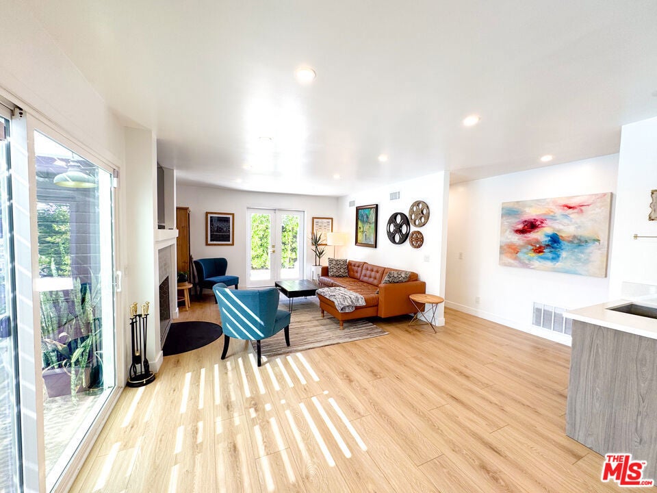 Brimming with character and nestled in the beloved "artist streets" of Woodland Hills - Picasso, Gauguin, Matisse, Da Vinci, and Cezanne - this beautifully remodeled 5-bedroom, 3-bath + pool home sits at the scenic junction where Topanga Canyon, Calabasas, and Woodland Hills converge. Thoughtfully designed for comfort, connection, and California living, the spacious layout features sun-drenched interiors and a seamless indoor-outdoor flow. A modern minimalist kitchen anchors the heart of the home, complete with a large breakfast island with built-in charging station, sleek hooded range, and stylish lighting. The adjacent dining area leads to both formal and informal sunken living rooms, where newly added French doors open to the landscaped backyard. A corner bar in the family room invites relaxed evenings whether you're gathering for sunset cocktails or cozying up by the upgraded fireplace (now both wood and gas). With five versatile rooms, the home includes a private guest suite with direct access to a side courtyard and a dedicated office ideal for remote work or creative pursuits. Upstairs, the expansive primary suite offers peaceful pastoral views, a spa-like bath with double-sink vanity, oversized shower, and ample closet space. Two additional spacious bedrooms and two additional full bathrooms round out the interior. Outdoors, the newly landscaped grounds feature lush turf, an extended side yard for play, a heated pool with new filtration system, covered patio, and multiple private nooks perfect for dining, lounging, or unwinding under the stars all set within a privacy-fenced perimeter. Located moments from scenic hiking and biking trails, award-winning schools, and premier shopping, this is more than a house - it's a home base for inspired family living.