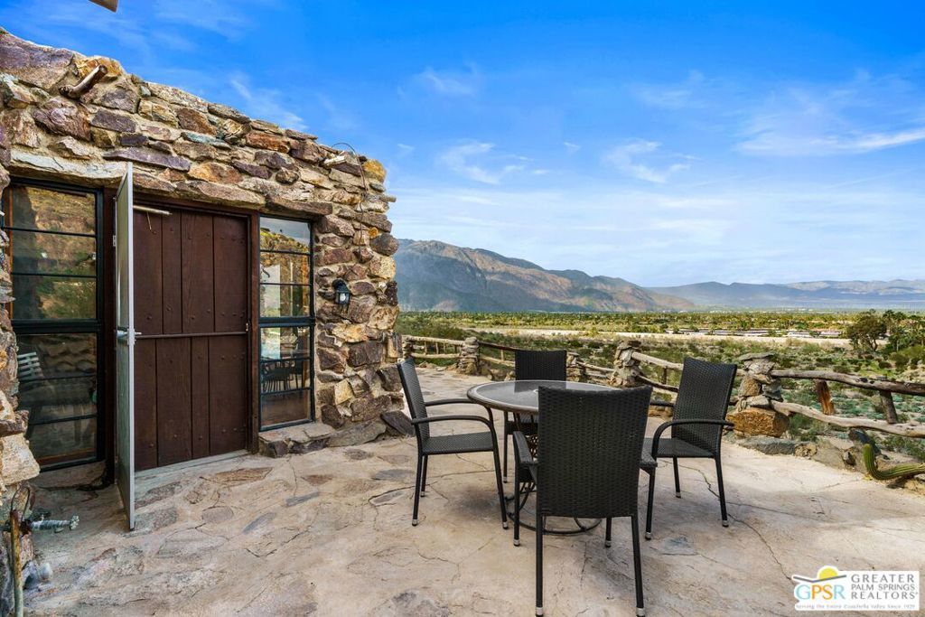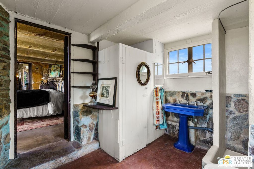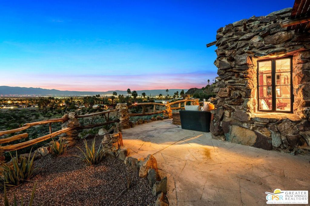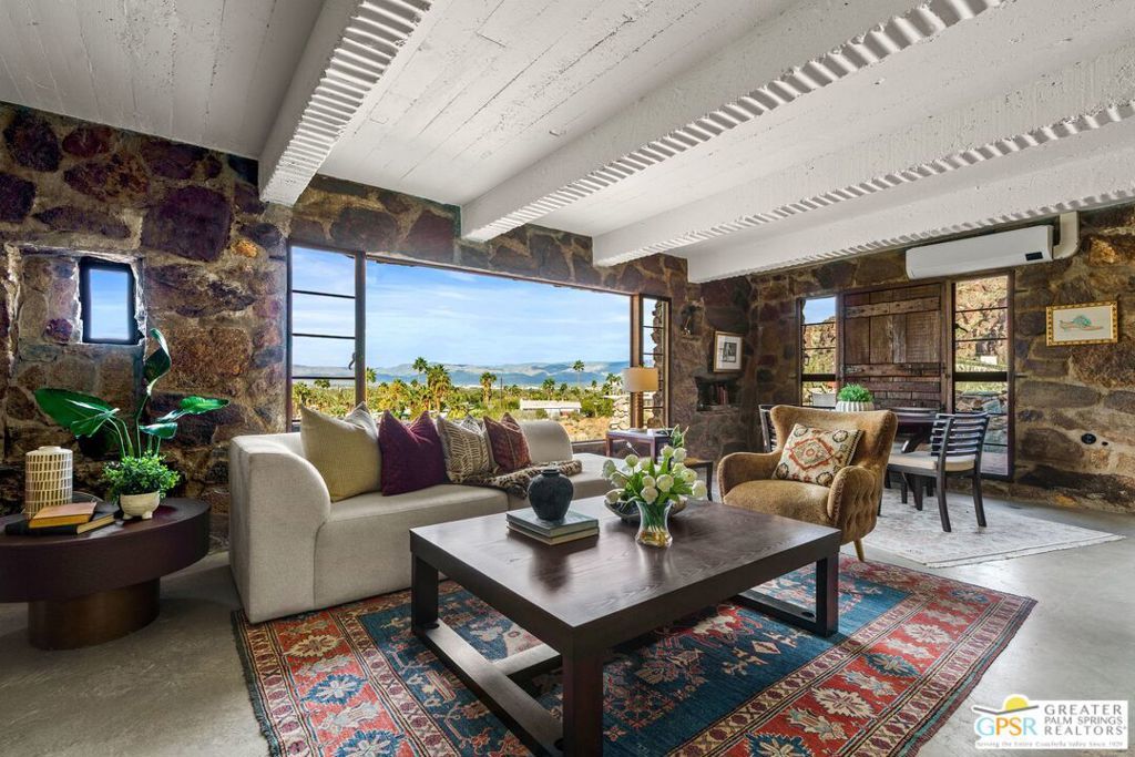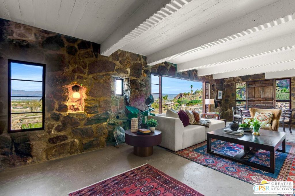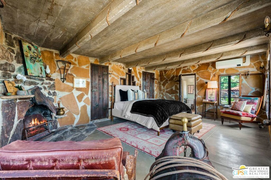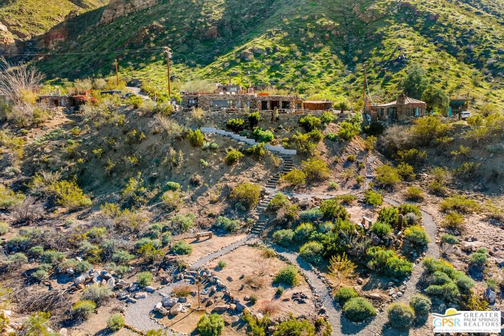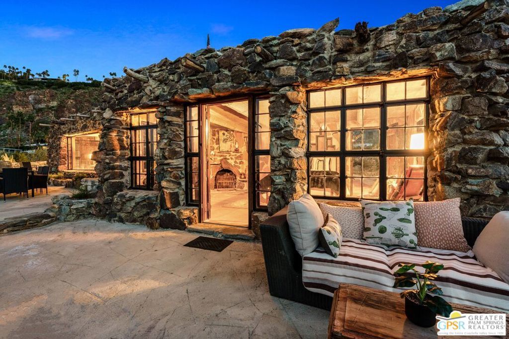 Perched high above Araby Cove, 2550 South Araby Road is a rare and storied treasure and one of Palm Springs iconic Rock Houses, originally built in 1929 by R. Lee Miller. This historic residence is a singular blend of architecture, history, and landscape, offering sweeping panoramic views across the desert floor and exceptional privacy. Access is provided via a private road with restricted entry. Designated a Class One Historic Landmark by the City of Palm Springs, the home showcases handcrafted artistry throughout. Stone walls rise organically from the mountainside, while original details remain beautifully intact, including hand carved doors and windows, custom shelving, exposed ceiling beams, ironwork door latches, handmade fireplace tools, and two original fireplaces, one of which includes a preserved stove pipe. A hidden room concealed behind a bookcase adds intrigue, and a deeply personal historical detail remains etched into the stone, as the original owner, Perle Martin Wheeler, carved her name into a nook in 1931. Respectfully honoring the home's architectural legacy, the current owners acquired the property in late 2024 and completed a thoughtful transformation, bringing the residence into the modern era while preserving its soul. Extensive upgrades include updated plumbing, electrical, and HVAC systems, new appliances, an EV charger, and infrastructure improvements throughout the property. The roof was fully replaced in August 2022, providing long term durability. The main residence features one bedroom and two bathrooms, complemented by two detached studio casitas, each with its own en suite bathroom. These spaces offer exceptional flexibility and are ideal for guests, multigenerational living, creative use, or private retreats. Meandering pathways, updated irrigation, and curated desert landscaping create a serene environment where native wildlife and natural beauty take center stage. A morning walk along the northern path reveals the desert awakening from the rock garden below. The extensive desert landscaping was thoughtfully designed by renowned Palm Springs landscape consultant Paul Ortega, an expert in desert horticulture and water management, and President Emeritus and Co Founder of the Desert Horticultural Society of the Coachella Valley. This historic property allows short term rentals, a rare benefit for a Class One designation. In addition, Class One homes in Palm Springs may qualify for Mills Act contracts, which can offer potential property tax benefits. Buyer to verify. More than a home, 2550 South Araby Road is a living work of art where architectural significance, timeless craftsmanship, and some of the most breathtaking views in Palm Springs converge into a truly irreplaceable desert retreat.