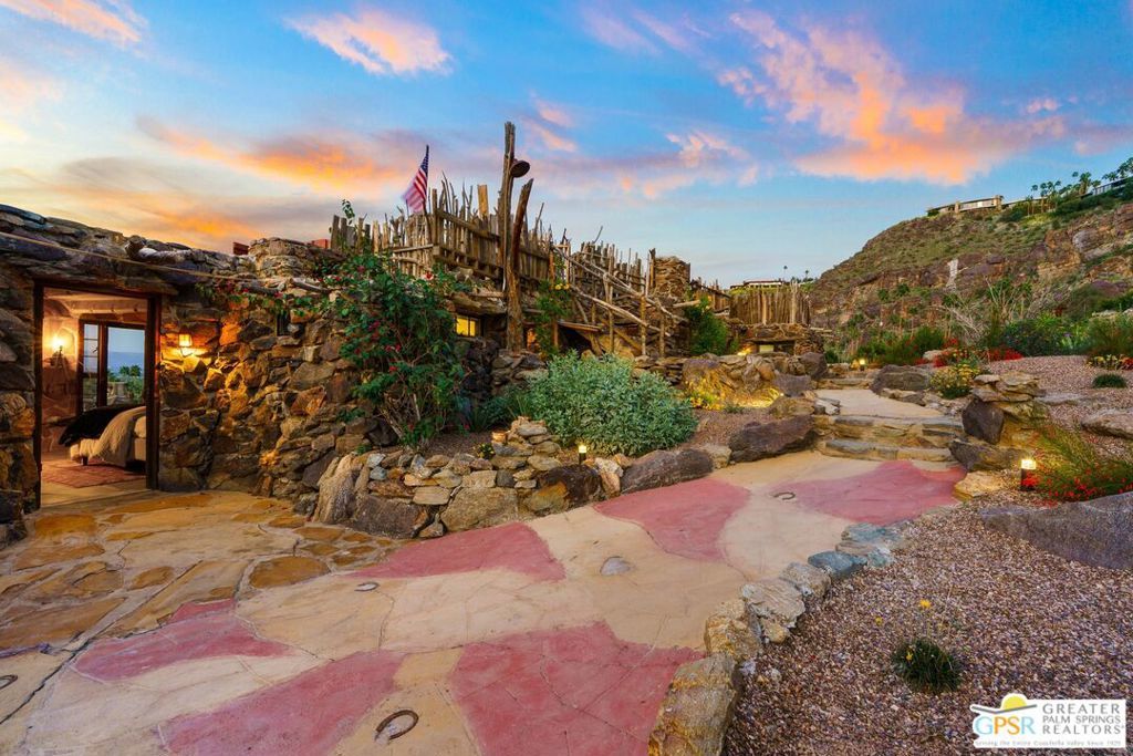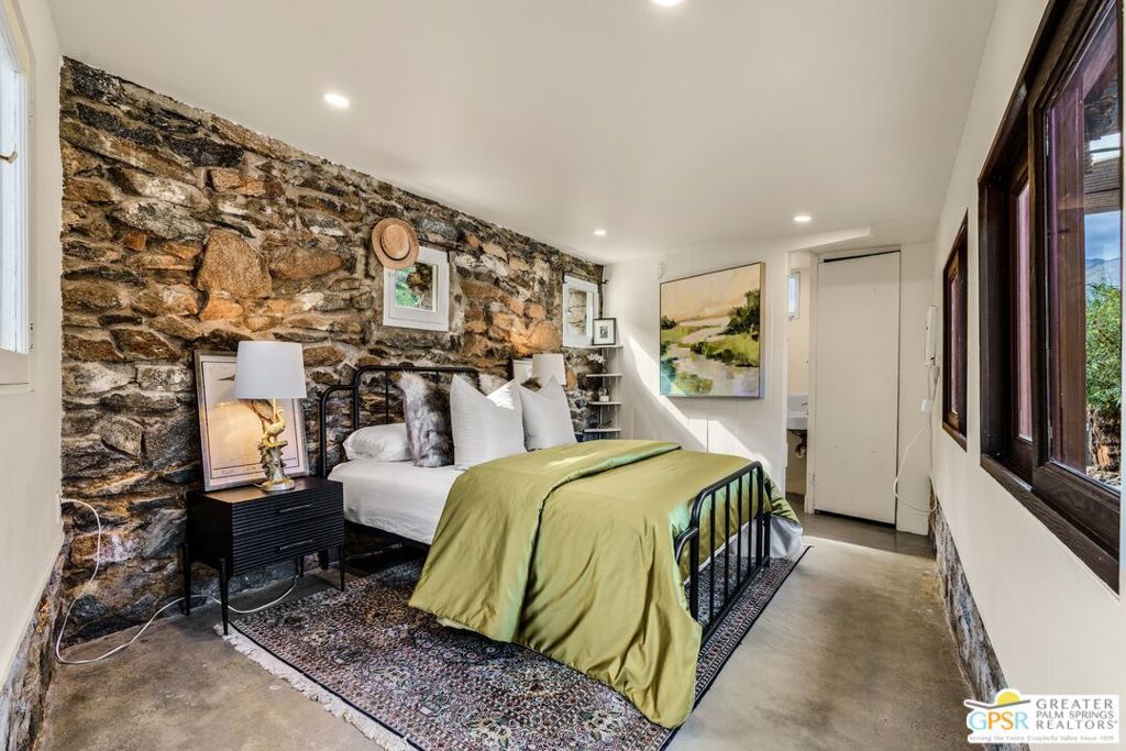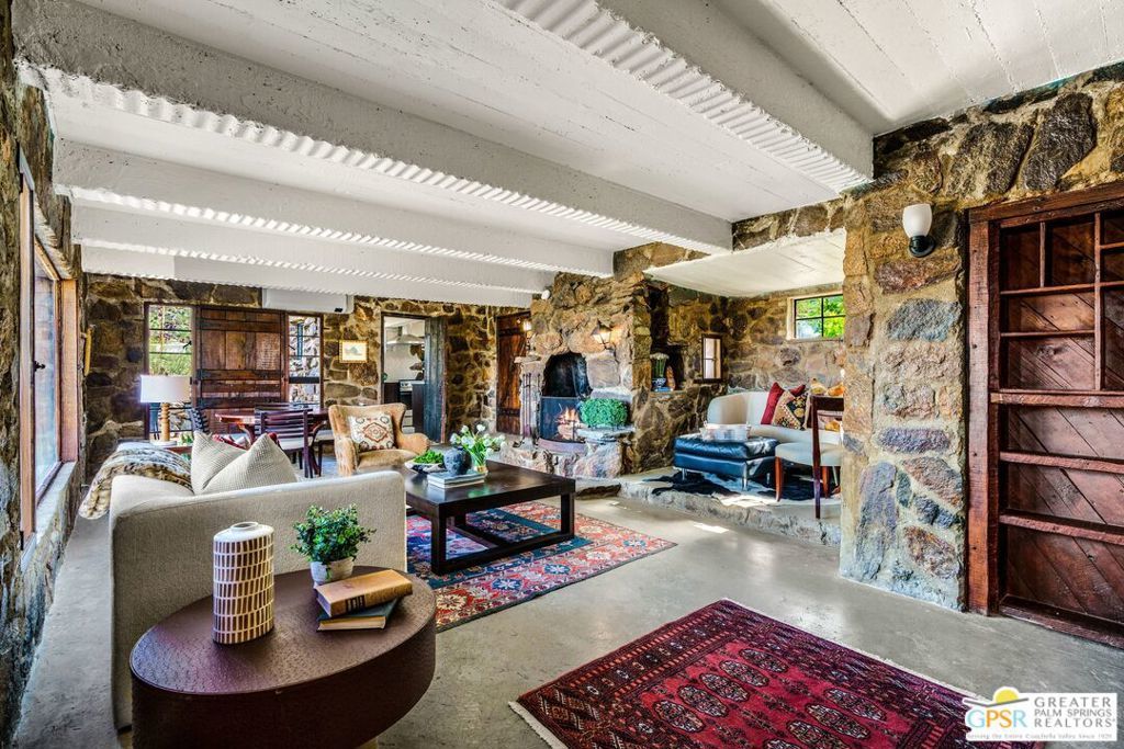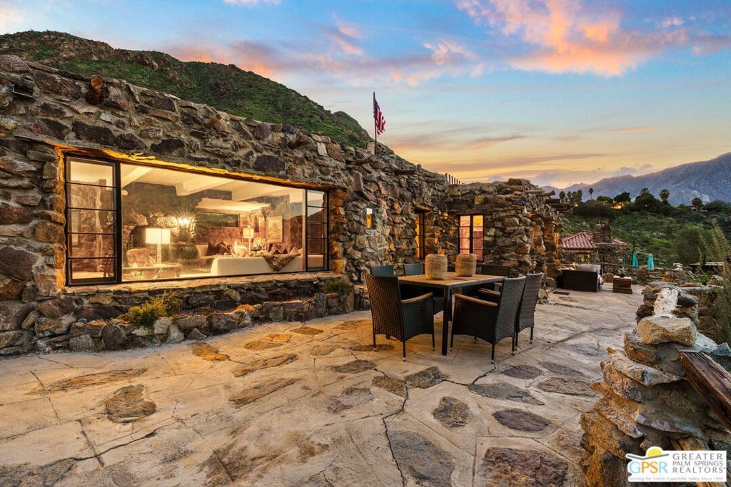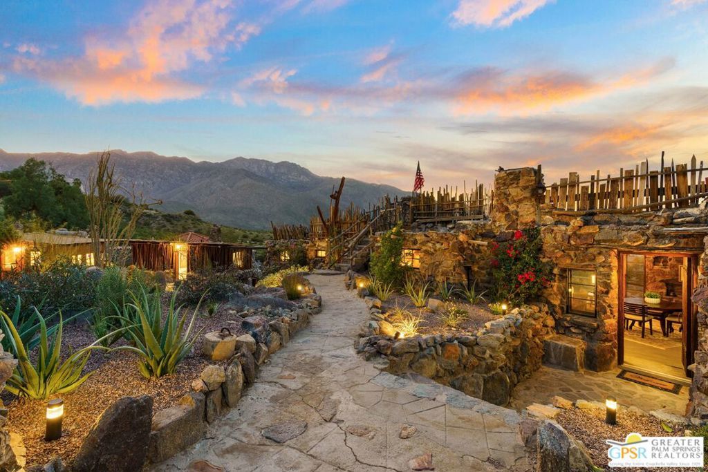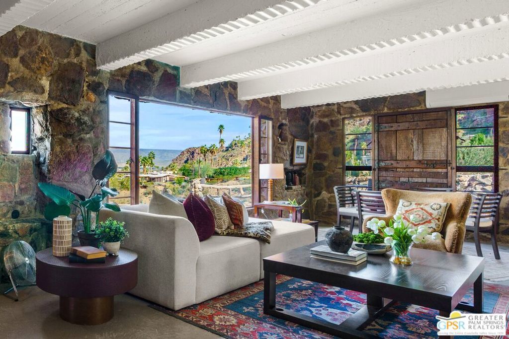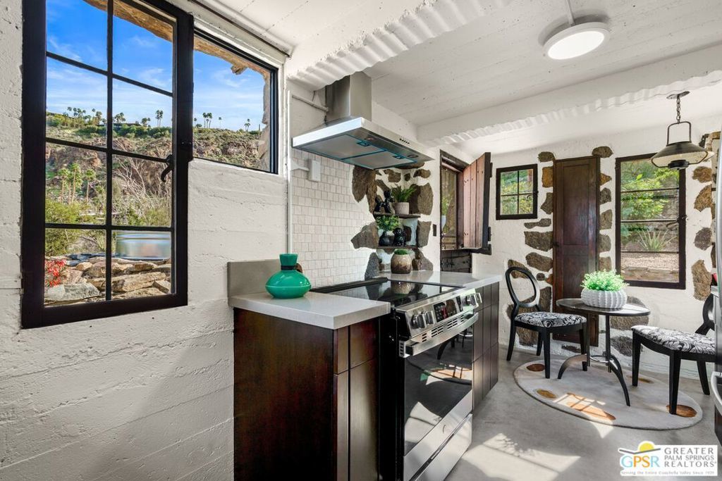 Perched high above Araby Cove, 2550 South Araby Road is a rare and storied treasure and one of Palm Springs iconic Rock Houses, originally built in 1929 by R. Lee Miller. This historic residence is a singular blend of architecture, history, and landscape, offering sweeping panoramic views across the desert floor and exceptional privacy. Access is provided via a private road with restricted entry. Designated a Class One Historic Landmark by the City of Palm Springs, the home showcases handcrafted artistry throughout. Stone walls rise organically from the mountainside, while original details remain beautifully intact, including hand carved doors and windows, custom shelving, exposed ceiling beams, ironwork door latches, handmade fireplace tools, and two original fireplaces, one of which includes a preserved stove pipe. A hidden room concealed behind a bookcase adds intrigue, and a deeply personal historical detail remains etched into the stone, as the original owner, Perle Martin Wheeler, carved her name into a nook in 1931. Respectfully honoring the home's architectural legacy, the current owners acquired the property in late 2024 and completed a thoughtful transformation, bringing the residence into the modern era while preserving its soul. Extensive upgrades include updated plumbing, electrical, and HVAC systems, new appliances, an EV charger, and infrastructure improvements throughout the property. The roof was fully replaced in August 2022, providing long term durability. The main residence features one bedroom and two bathrooms, complemented by two detached studio casitas, each with its own en suite bathroom. These spaces offer exceptional flexibility and are ideal for guests, multigenerational living, creative use, or private retreats. Meandering pathways, updated irrigation, and curated desert landscaping create a serene environment where native wildlife and natural beauty take center stage. A morning walk along the northern path reveals the desert awakening from the rock garden below. The extensive desert landscaping was thoughtfully designed by renowned Palm Springs landscape consultant Paul Ortega, an expert in desert horticulture and water management, and President Emeritus and Co Founder of the Desert Horticultural Society of the Coachella Valley. This historic property allows short term rentals, a rare benefit for a Class One designation. In addition, Class One homes in Palm Springs may qualify for Mills Act contracts, which can offer potential property tax benefits. Buyer to verify. More than a home, 2550 South Araby Road is a living work of art where architectural significance, timeless craftsmanship, and some of the most breathtaking views in Palm Springs converge into a truly irreplaceable desert retreat.