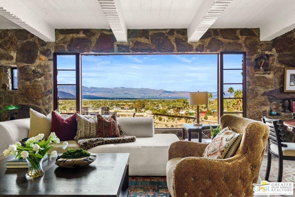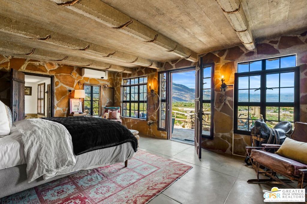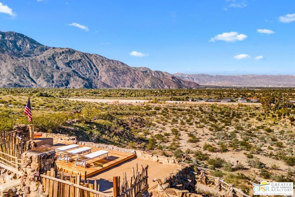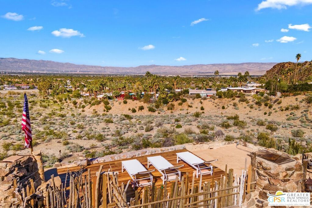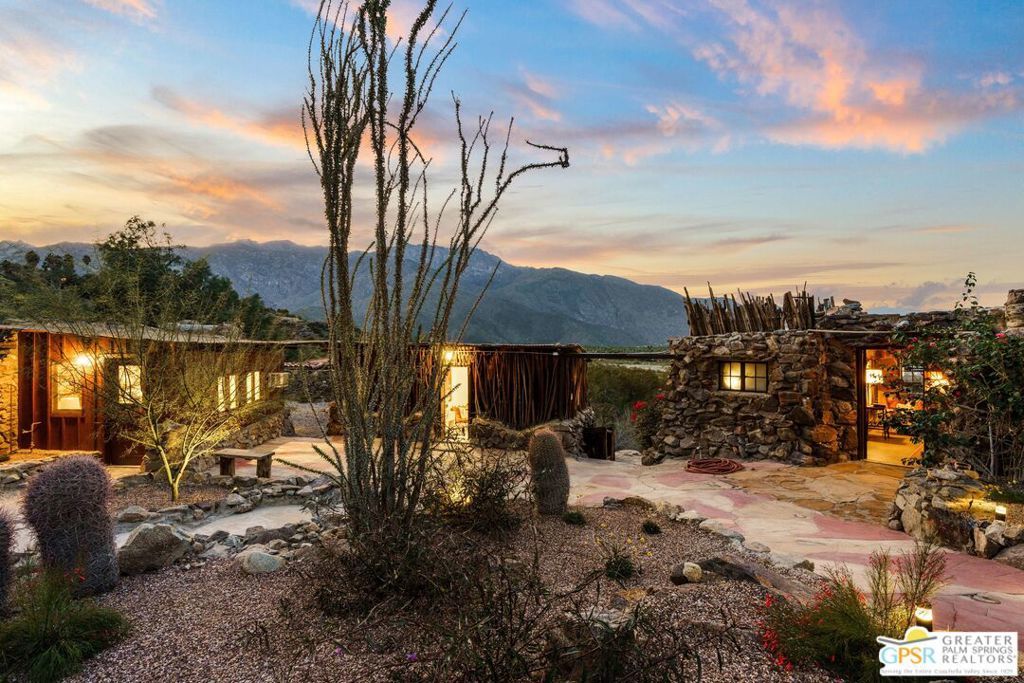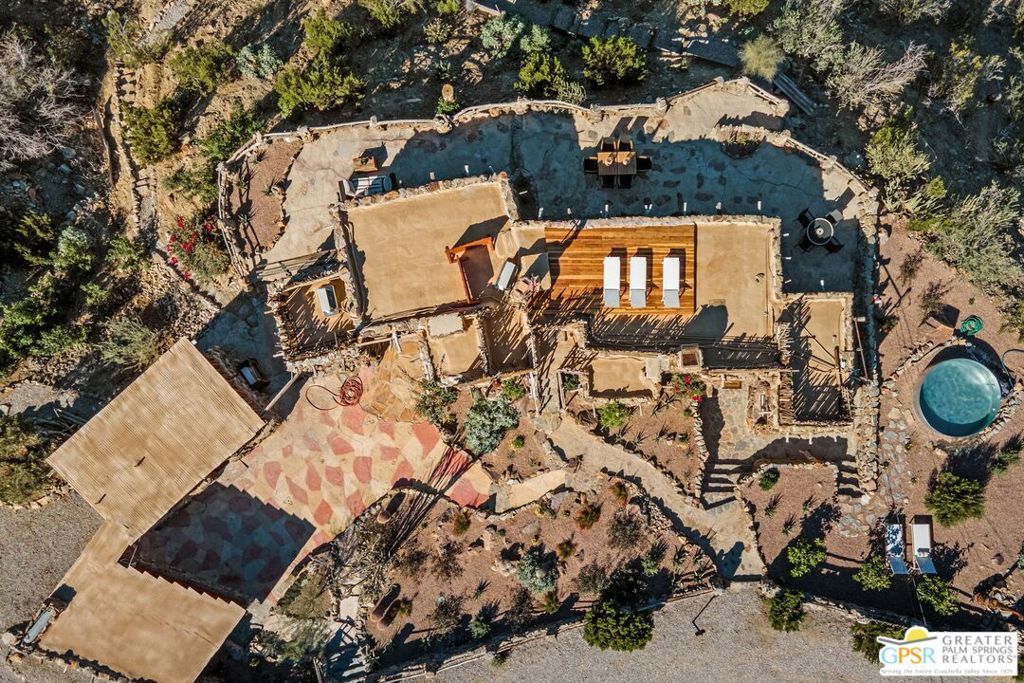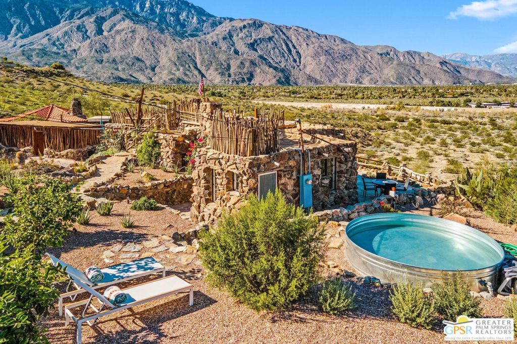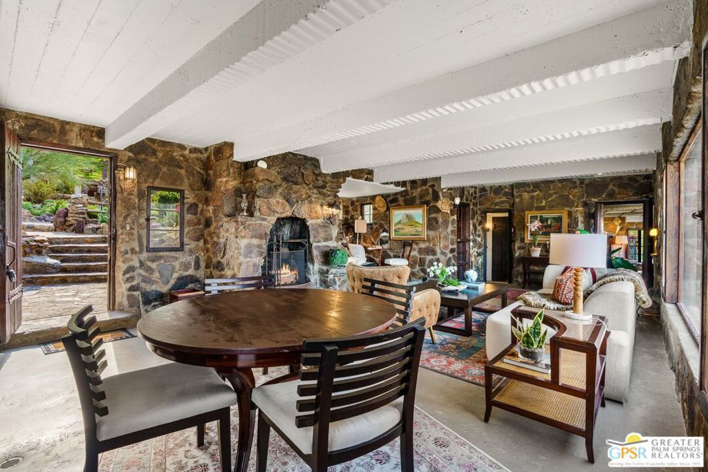 Perched high above Araby Cove, 2550 South Araby Road is a rare and storied treasure and one of Palm Springs iconic Rock Houses, originally built in 1929 by R. Lee Miller. This historic residence is a singular blend of architecture, history, and landscape, offering sweeping panoramic views across the desert floor and exceptional privacy. Access is provided via a private road with restricted entry. Designated a Class One Historic Landmark by the City of Palm Springs, the home showcases handcrafted artistry throughout. Stone walls rise organically from the mountainside, while original details remain beautifully intact, including hand carved doors and windows, custom shelving, exposed ceiling beams, ironwork door latches, handmade fireplace tools, and two original fireplaces, one of which includes a preserved stove pipe. A hidden room concealed behind a bookcase adds intrigue, and a deeply personal historical detail remains etched into the stone, as the original owner, Perle Martin Wheeler, carved her name into a nook in 1931. Respectfully honoring the home's architectural legacy, the current owners acquired the property in late 2024 and completed a thoughtful transformation, bringing the residence into the modern era while preserving its soul. Extensive upgrades include updated plumbing, electrical, and HVAC systems, new appliances, an EV charger, and infrastructure improvements throughout the property. The roof was fully replaced in August 2022, providing long term durability. The main residence features one bedroom and two bathrooms, complemented by two detached studio casitas, each with its own en suite bathroom. These spaces offer exceptional flexibility and are ideal for guests, multigenerational living, creative use, or private retreats. Meandering pathways, updated irrigation, and curated desert landscaping create a serene environment where native wildlife and natural beauty take center stage. A morning walk along the northern path reveals the desert awakening from the rock garden below. The extensive desert landscaping was thoughtfully designed by renowned Palm Springs landscape consultant Paul Ortega, an expert in desert horticulture and water management, and President Emeritus and Co Founder of the Desert Horticultural Society of the Coachella Valley. This historic property allows short term rentals, a rare benefit for a Class One designation. In addition, Class One homes in Palm Springs may qualify for Mills Act contracts, which can offer potential property tax benefits. Buyer to verify. More than a home, 2550 South Araby Road is a living work of art where architectural significance, timeless craftsmanship, and some of the most breathtaking views in Palm Springs converge into a truly irreplaceable desert retreat.