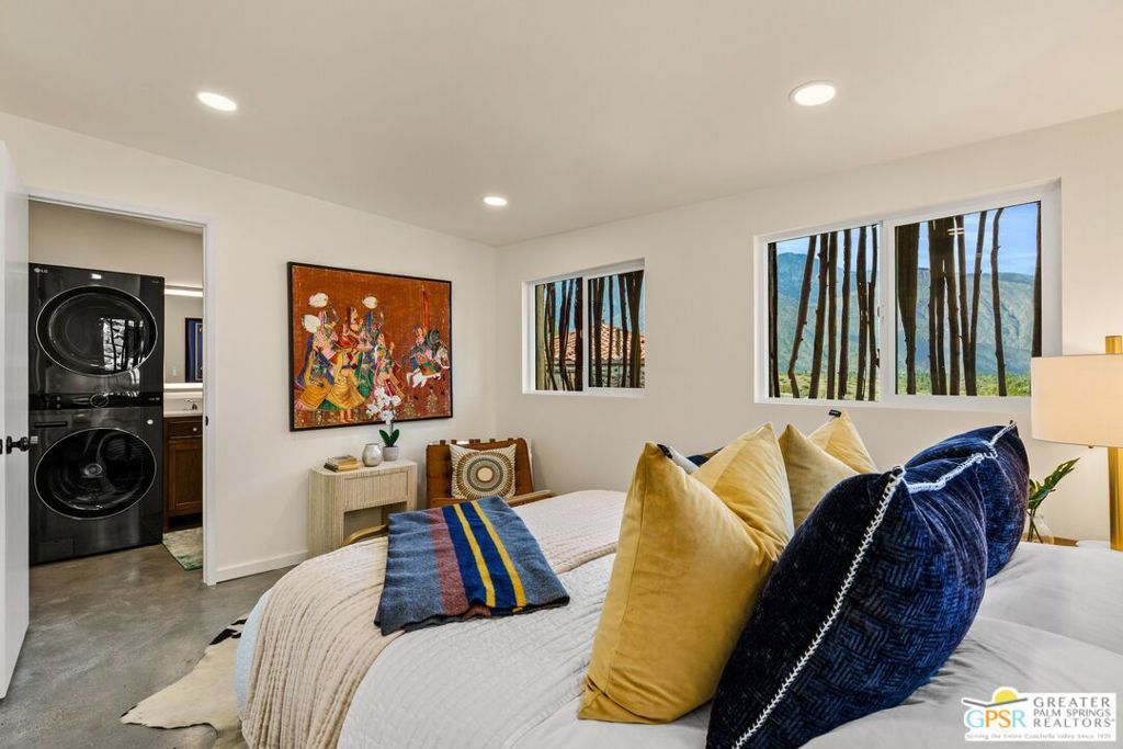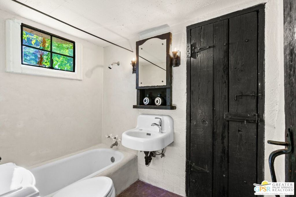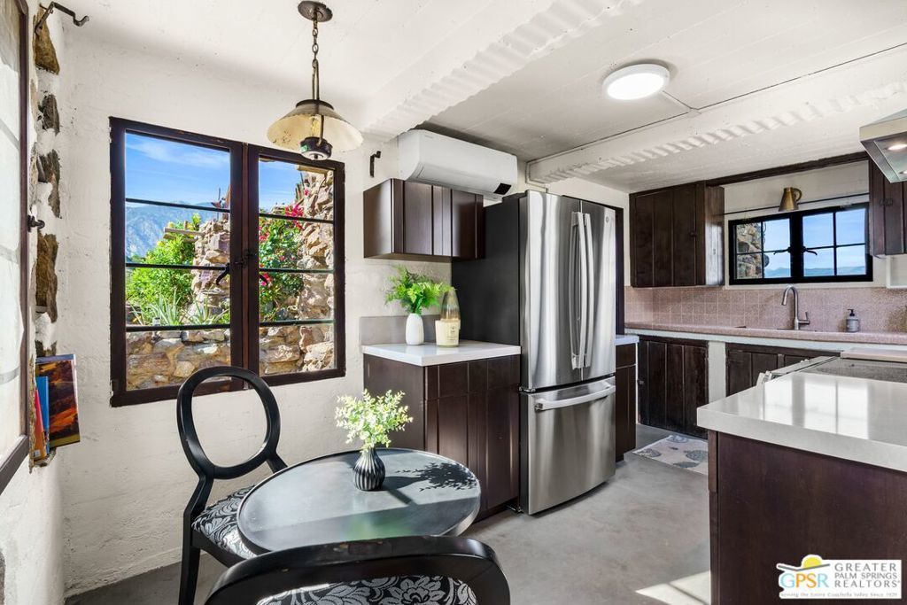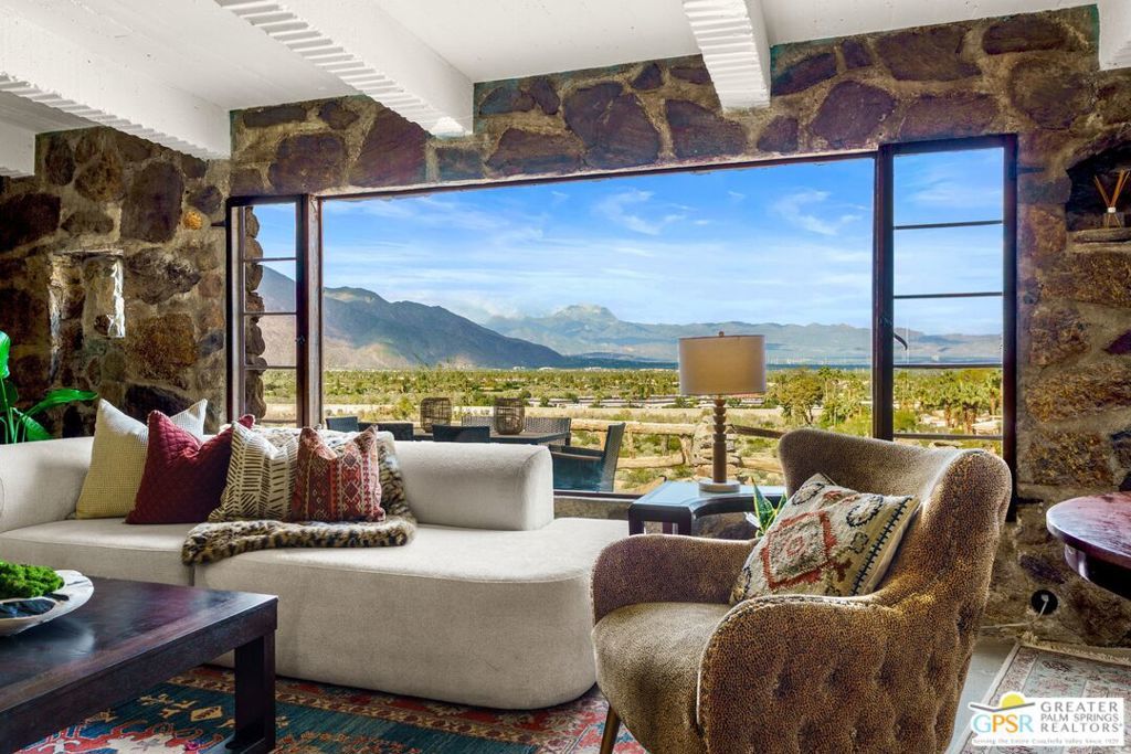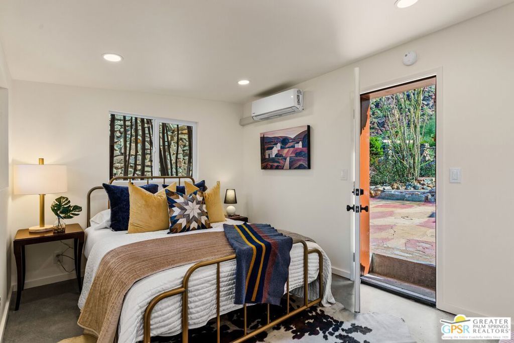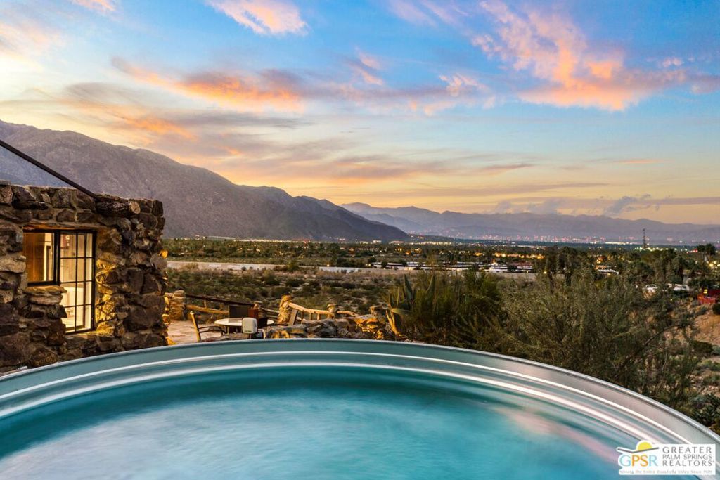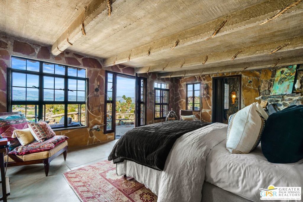 Perched high above Araby Cove, 2550 South Araby Road is a rare and storied treasure and one of Palm Springs iconic Rock Houses, originally built in 1929 by R. Lee Miller. This historic residence is a singular blend of architecture, history, and landscape, offering sweeping panoramic views across the desert floor and exceptional privacy. Access is provided via a private road with restricted entry. Designated a Class One Historic Landmark by the City of Palm Springs, the home showcases handcrafted artistry throughout. Stone walls rise organically from the mountainside, while original details remain beautifully intact, including hand carved doors and windows, custom shelving, exposed ceiling beams, ironwork door latches, handmade fireplace tools, and two original fireplaces, one of which includes a preserved stove pipe. A hidden room concealed behind a bookcase adds intrigue, and a deeply personal historical detail remains etched into the stone, as the original owner, Perle Martin Wheeler, carved her name into a nook in 1931. Respectfully honoring the home's architectural legacy, the current owners acquired the property in late 2024 and completed a thoughtful transformation, bringing the residence into the modern era while preserving its soul. Extensive upgrades include updated plumbing, electrical, and HVAC systems, new appliances, an EV charger, and infrastructure improvements throughout the property. The roof was fully replaced in August 2022, providing long term durability. The main residence features one bedroom and two bathrooms, complemented by two detached studio casitas, each with its own en suite bathroom. These spaces offer exceptional flexibility and are ideal for guests, multigenerational living, creative use, or private retreats. Meandering pathways, updated irrigation, and curated desert landscaping create a serene environment where native wildlife and natural beauty take center stage. A morning walk along the northern path reveals the desert awakening from the rock garden below. The extensive desert landscaping was thoughtfully designed by renowned Palm Springs landscape consultant Paul Ortega, an expert in desert horticulture and water management, and President Emeritus and Co Founder of the Desert Horticultural Society of the Coachella Valley. This historic property allows short term rentals, a rare benefit for a Class One designation. In addition, Class One homes in Palm Springs may qualify for Mills Act contracts, which can offer potential property tax benefits. Buyer to verify. More than a home, 2550 South Araby Road is a living work of art where architectural significance, timeless craftsmanship, and some of the most breathtaking views in Palm Springs converge into a truly irreplaceable desert retreat.