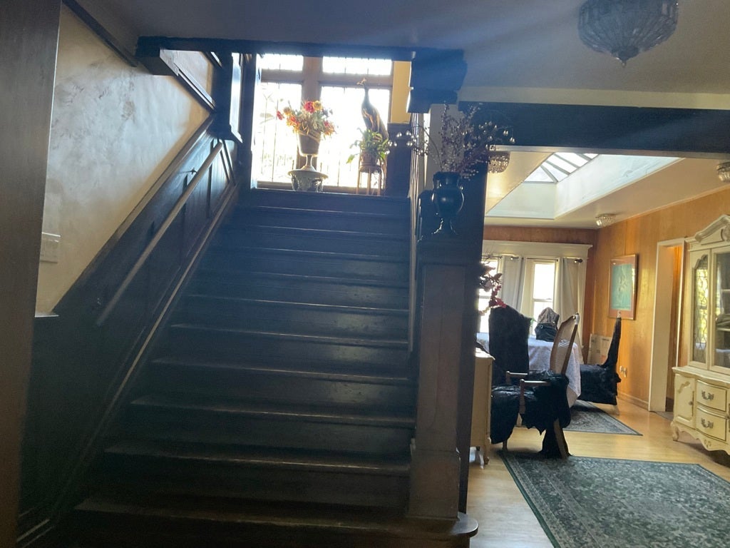 Buyers come to this beautiful and charming home in Adams Heights. Close to shopping and 10 freeway. Let this home greet you with a beautiful stair case leading to upper levels of the home with living area on each side of stairs. Large front yard with lovely landscaping. Large front porch perfect for sitting and enjoying the lovely California weather . Three levels to this home with the primary having a fireplace and balcony overlooking the front yard other bedrooms also have fireplaces. Separate areas throughout to relax a kitchen nook with stairs leading to upper level. There is lots of natural lighting through out the house.Backyard has fruit trees and plenty of room for outdoor entertaining. There is so much to this home. Come and make it yours
