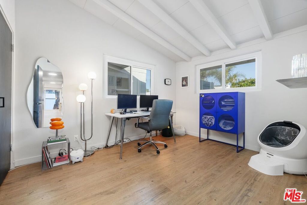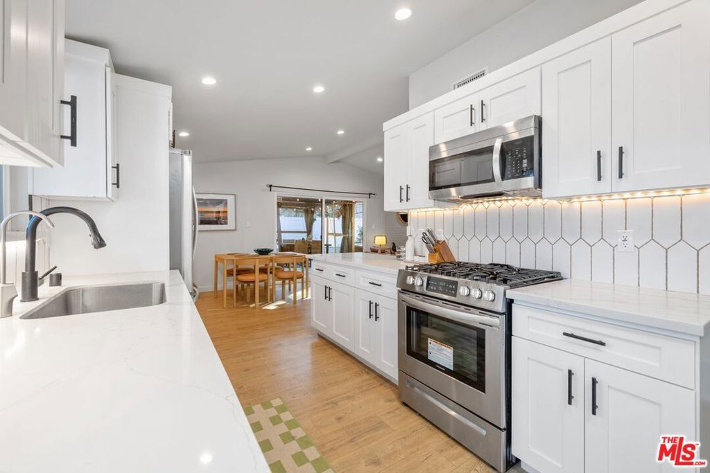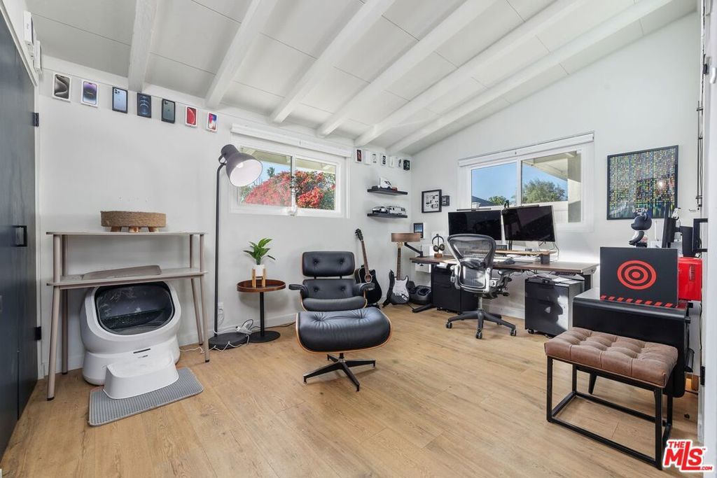 Here is your opportunity to own a beautifully updated mid-century modern home on a large private lot PLUS a turnkey, income-producing, detached guesthouse. If you choose to continue to rent out the guesthouse, the income generated will cover approximately $300,000 of your loan. It will feel "as if" you are purchasing the home for under $700,000! The light and bright main home features an open floorplan with vaulted ceilings throughout (including all 4 bedrooms). You can look forward to entertaining friends and family in the recently remodeled kitchen where walls have been removed to seamlessly connect it to the dining and living areas. The primary ensuite bath as well as the hallway bath have also been tastefully renovated to meet today's standards. After a hard day, you can unwind with a glass of wine in the front garden or perhaps throw an al-fresco dinner party in the large back yard. If you are an animal lover, you will go wild for the custom (but removable) "pet patio" complete with tunnels, perches and walkways. The stylish and newly built 1-bed 1-bath guesthouse has its own dedicated entrance from the street, private patio and will come complete with all furniture (even plates and silverware!). This mini compound is perfectly located close to the "downtown of the Valley." The vibrant Warner Center is home to some of the best dining, shopping and nightlife around including Westfield Topanga, The Village and many other locally owned retailers. It would be wise to get into this area now as values will continue to rise due to its proximity to the newly announced "Rams Village" with practice facilities, concert venues, high-end retail and public green spaces.