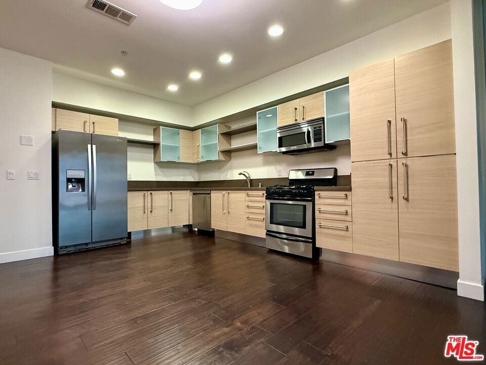 Available for lease: Immaculate modern 2-bedroom, 2-bath condo in the highly desirable Vero! This spacious open floor plan features double doors on each bedroom for an airy, loft-like feel with remote controllable window shades and curtains. Enjoy elegant hardwood floors throughout, a sleek European-style kitchen with Caesarstone countertops, an attached balcony and premium stainless steel appliances. Features in unit LG washer and dryer for your laundry. Secure two side-by-side parking spaces in the gated subterranean garage. Resort-style amenities include a state-of-the-art fitness center, dry sauna with showers, dedicated yoga studio, 24-hour security and courtesy patrol and beautifully updated common areas such as heated infinity-edge pool, spa, fire pits, BBQs, and inviting outdoor lounge seating. Experience city living at its best in DTLA, Financial District, Staples Center, Disney Concert Hall, and easy access to the 110 and 10 freeways. Perfect for professionals seeking luxury, convenience, and all the perks of Vero's first-class community. Hot water included and abundant natural light complete this move-in-ready gem.