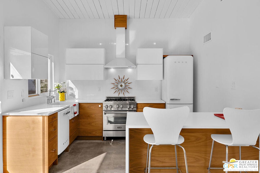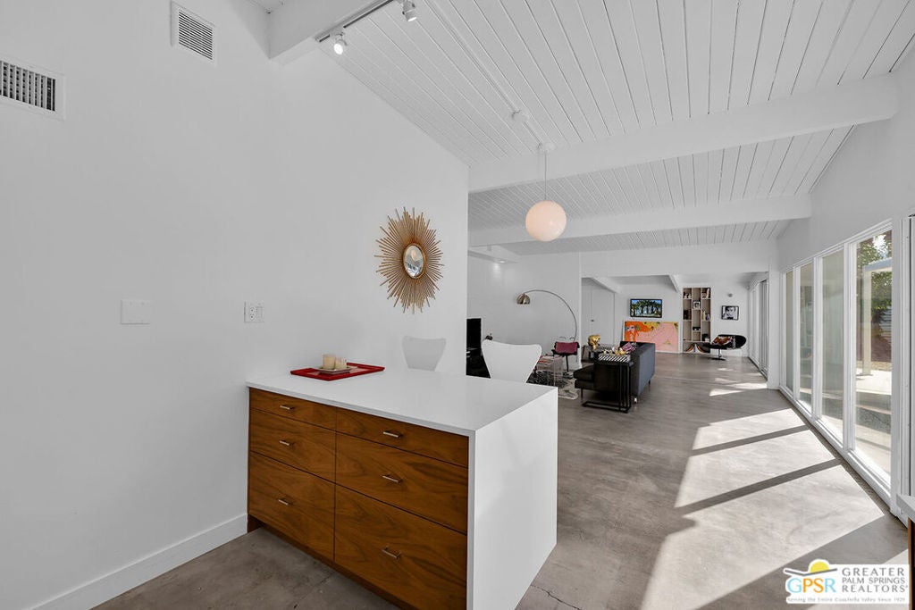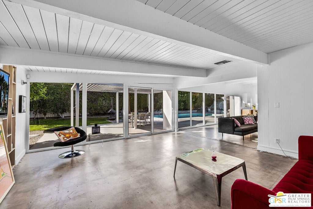 Discover 271 N Easmor Circle, located in the iconic Sunmor Estates of Palm Springs. Built in 1958 by the celebrated Alexander Construction Company, this classic mid-century modern residence showcases the clean lines, open planning, and indoor-outdoor connection that define Palm Springs' architectural legacy. Signature features include post-and-beam construction, tongue and groove ceilings, and expansive walls of glass that flood the interiors with natural light while framing the west-facing outdoor living spaces. The three-bedroom, two-bath layout centers around a spacious living room with a gas fireplace, flowing effortlessly into an adjoining denboth sharing a dramatic glass wall that opens to the pool and yard beyond. The renovated open kitchen, with its Smeg and Zline appliances, respects the home's modernist roots while offering updated functionality for today's lifestyle making it ideal for both everyday living and entertaining. Outside, the oversized 11,000+ sq ft lot delivers the quintessential desert experience, with a private pool, outdoor shower, built-in shade structure, modern fire pit, and BBQ area designed for relaxed outdoor living and sunset gatherings. Set at the end of a quiet cul-de-sac, the property enjoys exceptional privacy while remaining moments from downtown Palm Springs. A true example of timeless mid-century design, thoughtfully maintained and ready to enjoy. Private showings by appointment.