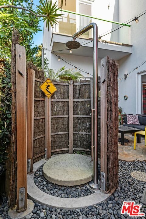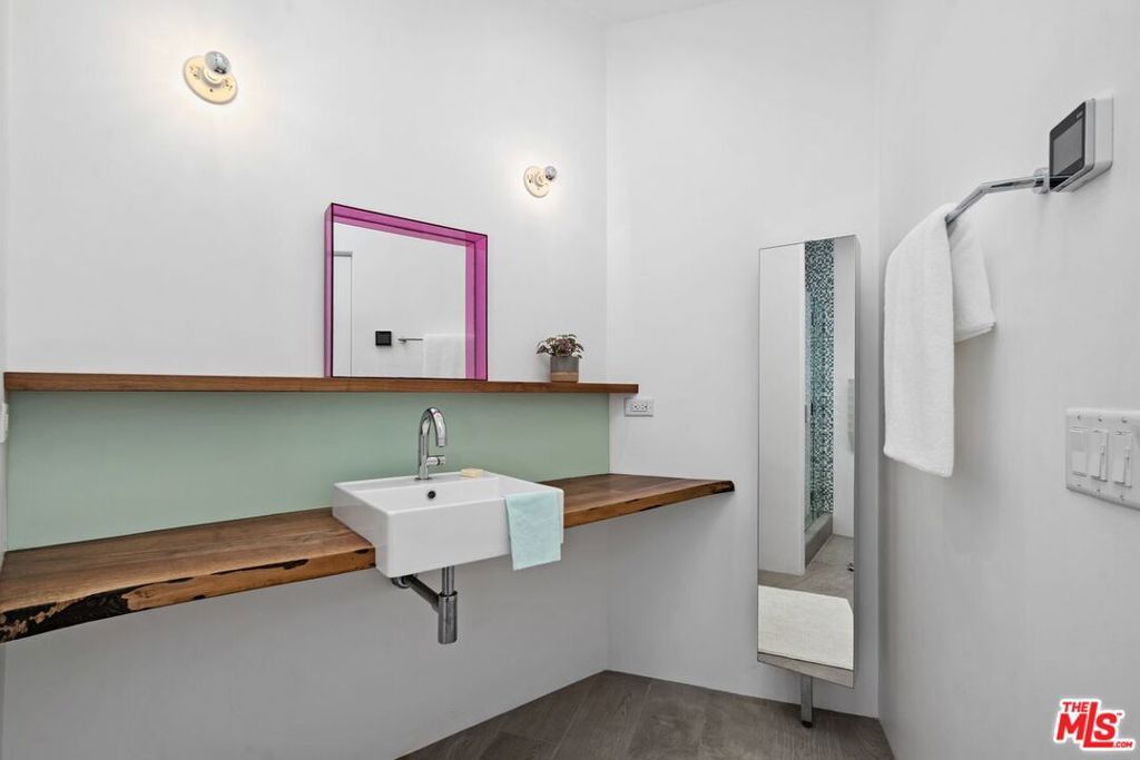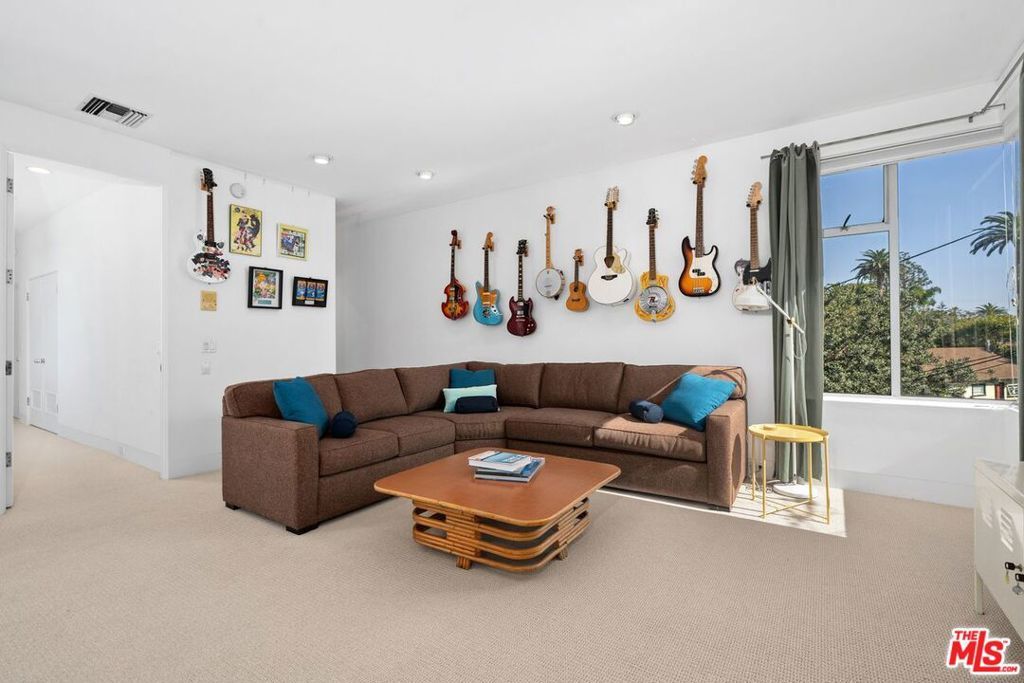 Location, Location, Location! Discover this architectural masterpiece... a spacious four-bedroom, three and a half-bath home infused with artistic flair, ideally situated in one of Venice's most coveted neighborhoods. Located just one block from the shops and energy of Abbot Kinney Boulevard and a few short blocks from the beach, this property offers the quintessential California lifestyle. Built for an art collector, this custom residence features soaring ceilings, dramatic natural light, and expansive gallery-style walls. The open-concept "great room" seamlessly connects the living and dining areas, anchored by a stunning Topanga Tile custom fireplace. The large chef's kitchen boasts ample cabinetry, newer appliances, a breakfast bar with a custom countertop, and generous prep space, an entertainer's dream. Step outside to a lush central courtyard with a unique hot/cold "surf shower," the ultimate luxury for beach lovers. Upstairs, the spacious primary suite offers a beautifully updated en-suite bathroom. Two additional en-suite bedrooms plus a versatile fourth bedroom or office provide flexibility for any lifestyle. One secondary suite is impressively large, making it ideal for an art studio, home office, or potential fifth bedroom. Enjoy sunsets from the expansive rooftop deck with panoramic views of Venice or relax on one of the two upstairs balconies. Additional features include a stunning dome skylight over the grand staircase and a private two-car garage with high ceilings and storage, plus an extra dedicated parking space. This home is a rare Venice gem where architectural design meets coastal living.