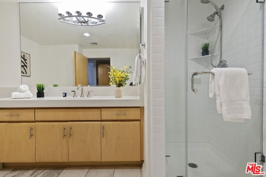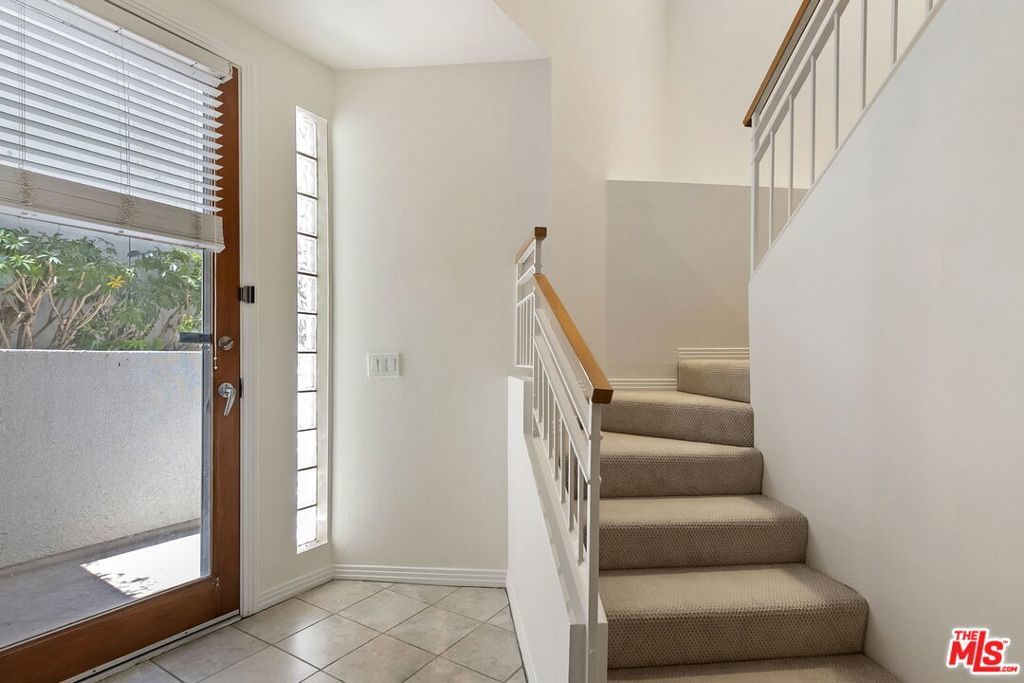 This private and well-appointed 2 level Brentwood townhouse offers serene city/mountain views and a thoughtfully designed, spacious layout. The upper level features an open floor plan with a modern kitchen outfitted with stainless steel appliances, a dedicated dining area, a large living room with marble floors, a gas fireplace, a guest powder room, and a glass-enclosed office or bonus space filled with natural light. Downstairs, you'll find both generously sized bedrooms. The expansive primary suite offers a sitting area, two closets (including a walk-in), and a well-appointed en-suite bath with a separate shower and soaking tub. The second bedroom also features its own full bathroom. This level includes a laundry area with side-by-side washer and dryer, additional storage, and access to a private outdoor patio. Additional features include a Nest thermostat, two side-by-side parking spaces, ample guest parking, and a dedicated storage cage above the parking area. Enjoy access to a pool, spa, sauna, and gym within a controlled-access building. Ideally situated with easy access to UCLA, the 405, top-rated schools, and Brentwood's shops and restaurants just moments away.