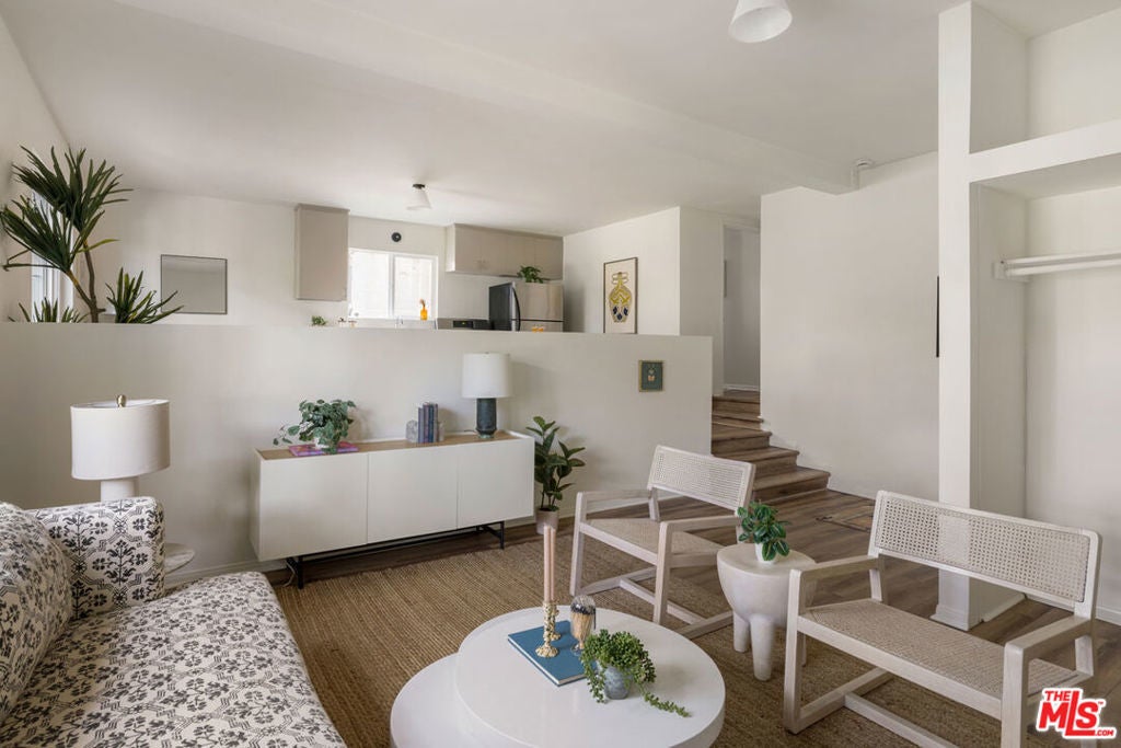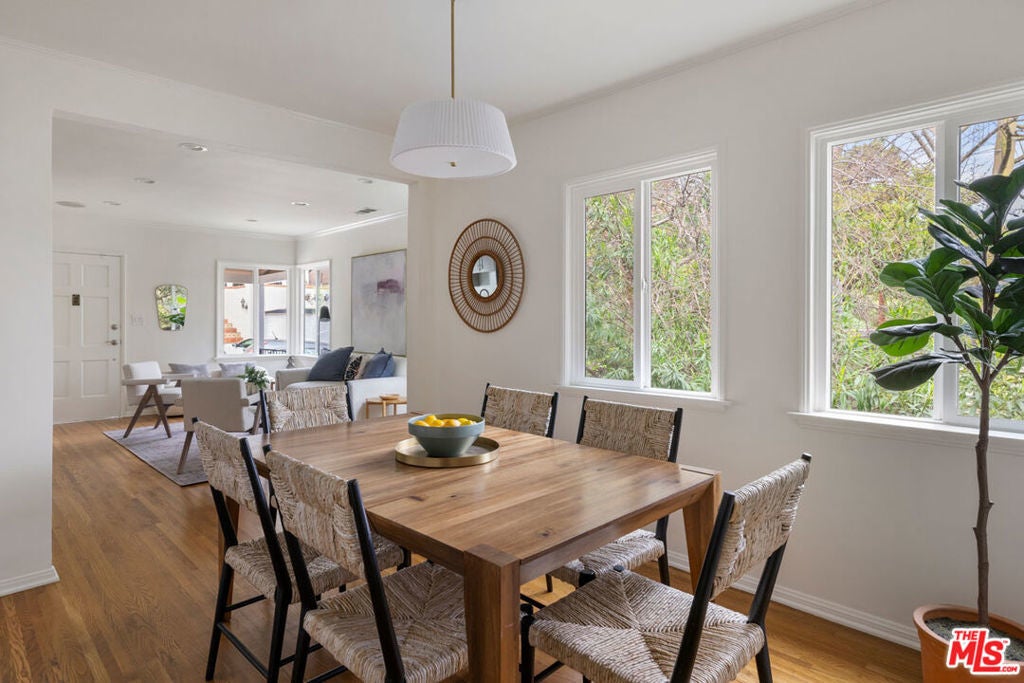 In Silver Lake, this spacious Traditional is a serene find with a scenic yard beneath a majestic oak tree. Artful landscaping sets the scene for morning coffee on the front porch; light filters through the oak canopy into the free-flowing living spaces, with hardwood floors throughout. The updated kitchen features tasteful grey cabinetry, stainless appliances, and generous storage. Three bedrooms include a primary with skylights, and the versatile third bedroom that can serve as a den or office. The bonus space under the home has a private entrance, kitchen, and bathroom, perfect for guests or creative studio. The private terraced backyard feels like a woodland escape for dining al fresco and relaxing. Amenities include AC, laundry, and garage with storage. The great location puts you moments from Edendale, Forage, Silver Lake Wine, Trader Joe's, and everything you love in Silver Lake.