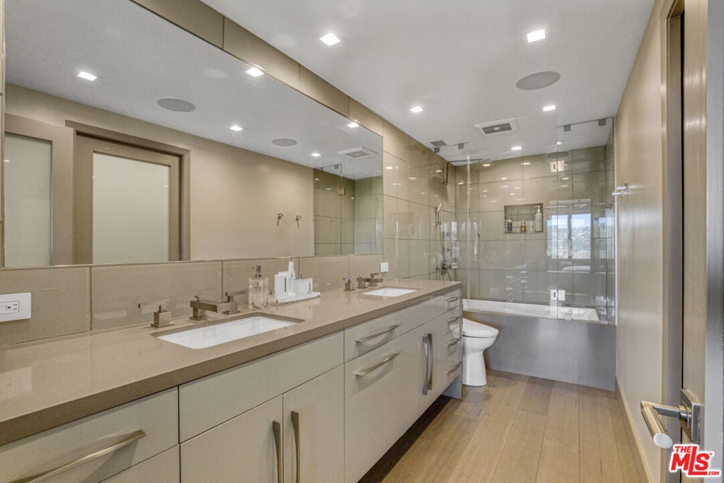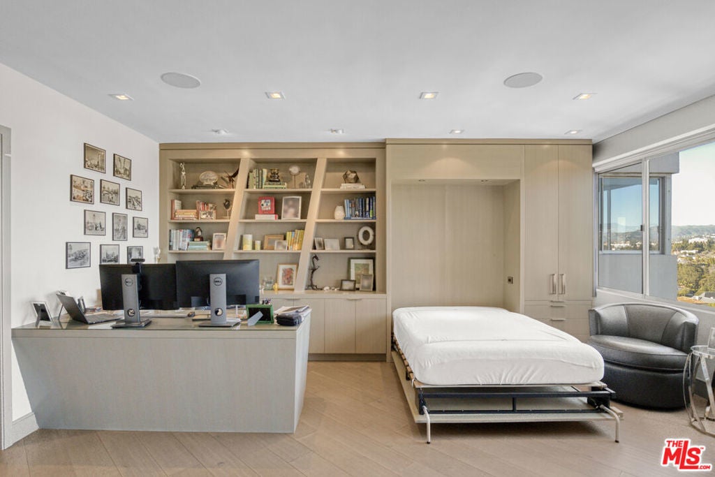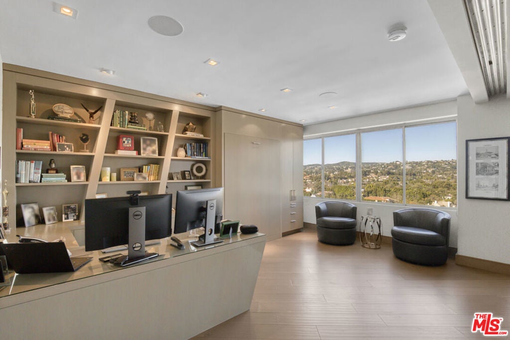 Stunning, fully remodeled designer view condo in the prestigious high-rise building "The Comstock". Ideally located on the Wilshire Corridor near Beverly Hills, Bel Air, UCLA and Century City, offering a turnkey luxury lifestyle. This move-in-ready home features two bedrooms, including a primary suite ensuite with double vanity and walk-in closet, and a second bedroom featuring custom cabinetry and a built-in wall bed unit. The open floor plan provides breathtaking views overlooking the Los Angeles Country Club golf course, Holmby Hills and Bel Air. The chef's kitchen is equipped with Sub Zero and Wolf appliances and include a built-in coffee system and wine storage. Custom cabinetry, abundant storage, and in-unit laundry complete the residence. Additional amenities include 24/7 valet parking, doorman, swimming pool, spa, sauna, and gym.
