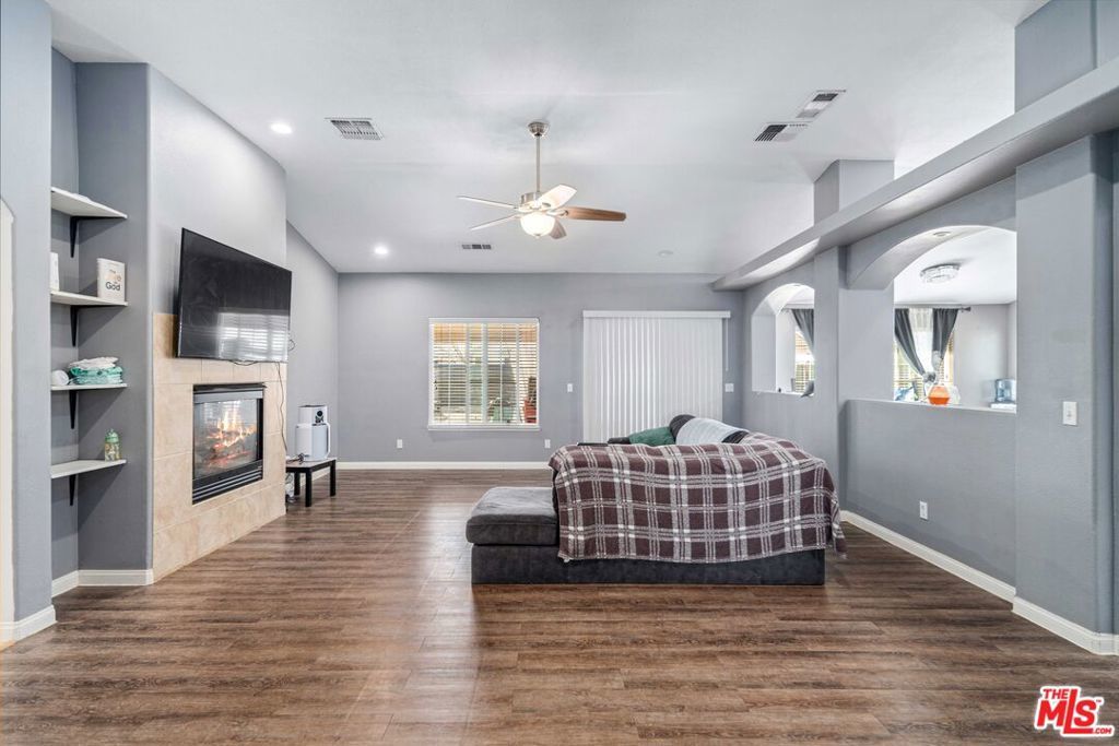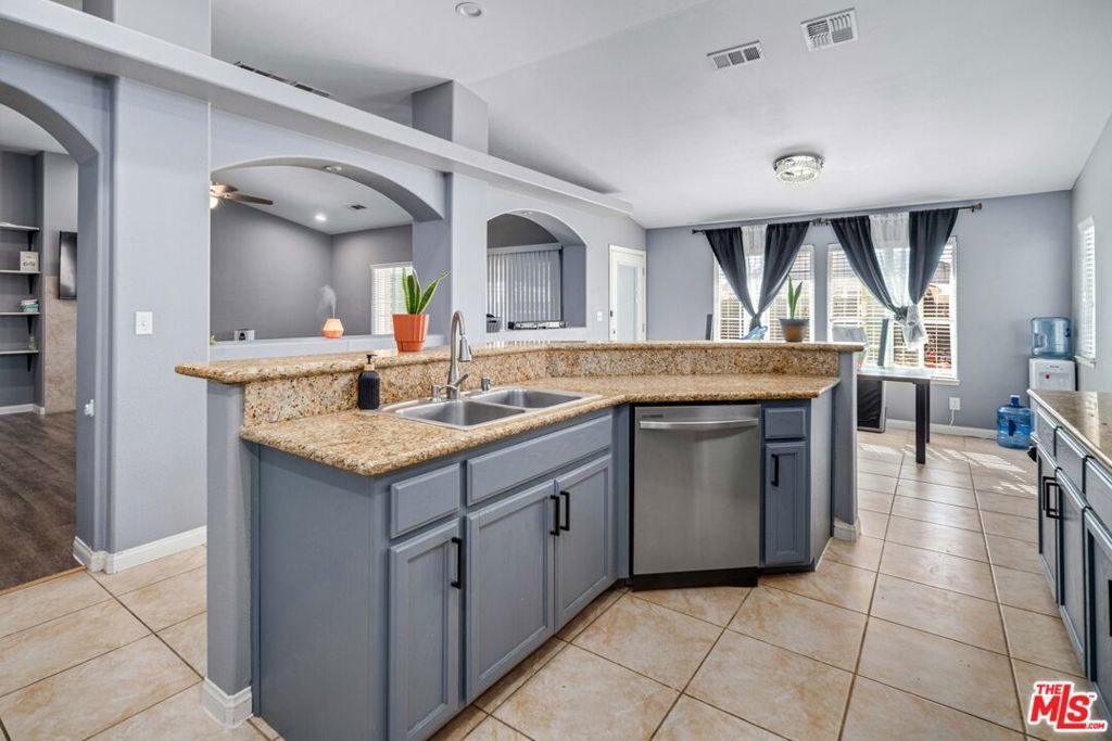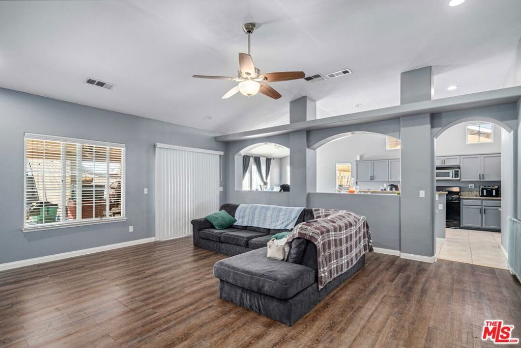 Welcome to this gorgeous upgraded single-story 4-bedroom, 3-bath ranch-style home on a desirable corner lot. Step inside to soaring vaulted ceilings and a spacious family room that opens to a bright, open floor planperfect for entertaining.The large kitchen features granite countertops, LED recessed lighting, an eat-in breakfast bar, and an adjacent dining area ideal for gatherings. The expansive primary suite offers two oversized walk-in closets and a luxurious en-suite bath with dual sinks and a sunken tub.Three additional generously sized bedrooms provide flexibility, with one ideal for a home office. Outside, enjoy a pristine backyard complete with a covered patio, lush grass, a separate dog run, and potential RV parking.
