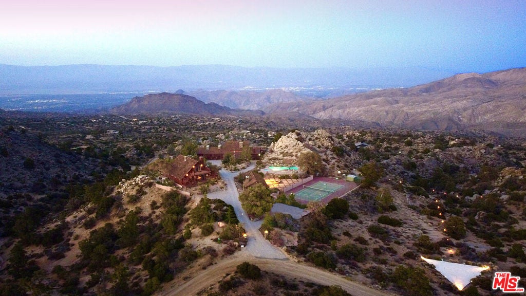 FRANK SINATRA'S DESERT HIDEAWAY-1970: Frank Sinatra's Villa Maggio, a one-of-a-kind collector's trophy. Set high above the Coachella Valley, the compound represents the only residence Sinatra was personally instrumental in designing and building for his own use. He chose this incredible mountain retreat after the frenetic days and nights performing in Las Vegas to create a private sanctuary where he could entertain the Rat Pack, visiting royalty, global dignitaries and fellow icons with absolute discretion! Named for the character that earned him an Oscar in From Here to Eternity, the unique estate preserves its original mid-century lodge style and stands as the last intact Sinatra property available for purchase, a piece of American cultural history. Secluded mountain setting: Perched at roughly 4,300 feet, the 7.5acre site enjoys a temperate climate (approximately 15-20 degrees cooler at then the desert below) and unobstructed 360 degree views of mountains, national monuments and city lights. A gated drive ensures privacy, yet Palm Desert's luxury shopping and dining are only 20 minutes away and Palm Springs International Airport is 26 miles by helicopter. Main residence: The 6,428 square foot main house blends rustic-modern design with locally sourced stone, hardwood floors and high vaulted ceilings. There are 5 bedrooms and 5 baths, 7 fireplaces and 2 kitchens. A massive deck overlooks the desert floor while multiple fireplaces and exposed beams create an intimate lodge ambience. Guest and pool houses: A 3 suite guest house, each suite offers a private view deck, stone fireplace, kitchenette and bath; there is even a secret passage between 2 bedrooms. The pool house, warmed by a stone fireplace, features two saunas, a kitchenette and a large gathering area where Sinatra and friends gathered are perfect for after tennis cocktails or watch-collector presentations. Resort amenities: Designed for and by the entertainer, the compound includes a resort style pool, lighted tennis court, expansive outdoor spaces, helipad and parking for 24 cars. A large motor court easily accommodates a collector's garage of classic cars. Extensive terraces and a mountain-view deck create ideal settings for alfresco dining. Sustainable craftsmanship: Wide overhanging eaves provide shade and reduce the ecological footprint, while locally sourced materials ground the estate in its desert surroundings. Renovations have remained faithful to Sinatra's original vision, maintaining authentic charm while integrating modern comforts. With its provenance, scale and amenities, Villa Maggio appeals to collectors of fine estates, historic properties, watches, aircraft and classic automobiles. Sinatra designed the compound not only to escape the desert heat but to host friends and VIP guests with unmatched privacy, security and luxury. The helipad and 24car motor court speak to aviators and car enthusiasts, while the hillside setting and mid-century architecture attract connoisseurs of Americana. As the last remaining unaltered Frank Sinatra estate, this property represents a unique opportunity to own a living piece of cultural history. Whether acquired as a personal retreat, an addition to a portfolio of collectible assets or as a showcase for an art or automobile collection, Villa Maggio stands alone in significance and appeal. Potential for additional structures to be built on property (Buyer to verify). Private sale or trade inquiries are invited.