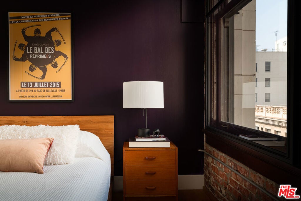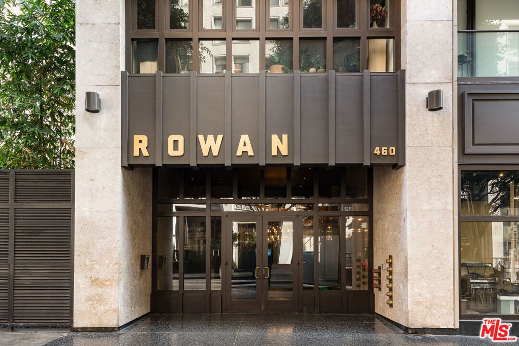 Experience luxury and stunning city and open sky views in this breathtaking one bedroom, one bath loft style condominium at The Rowan. Natural sunlight bathes the home from double-height windows, set within a gorgeous exposed brick wall. This unique residence is located on the tenth (of 12) floor, with the most picturesque views over Spring Street. It features one enclosed bedroom, one full bath (with in-unit laundry), spacious built-out closets, kitchen with Scavolini cabinetry and stone countertops, and an open concept dining area and living room, separated by a see-through stair bookcase. Clear glass pendants are inspired by industrial and French fixtures -- including the bathroom pendant with rose gold cloth cord, drop of ombre glass, and an unlacquered brass cap. High ceilings create an atmosphere of grandeur, complemented by mahogany-framed oversized and insulated windows. Highlights to the 2-3 yr renovation include major seismic retrofit upgrade and three new elevator systems. Amenities in this thoughtfully designed live-work building include a second-floor lounge and community space, outdoor garden with jacuzzi and cold plunge, entertainment barbecue and seating areas, and leafy garden. Today, The Rowan stands as one of most exclusive boutique condominium buildings located in the Historic Core, the heart of Los Angeles. Residents enjoy 24-hour security, onsite management. Unfurnished. Furnishings available for purchase. Lease with option to purchase considered.
