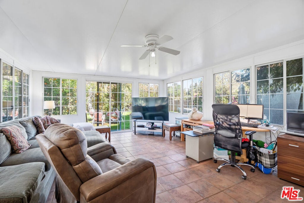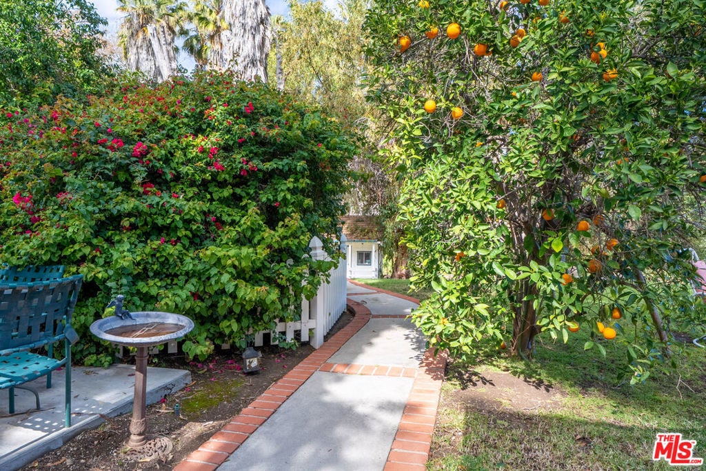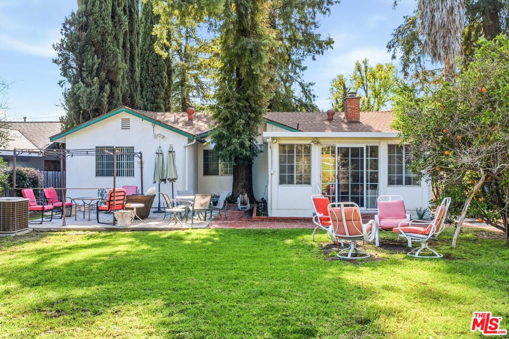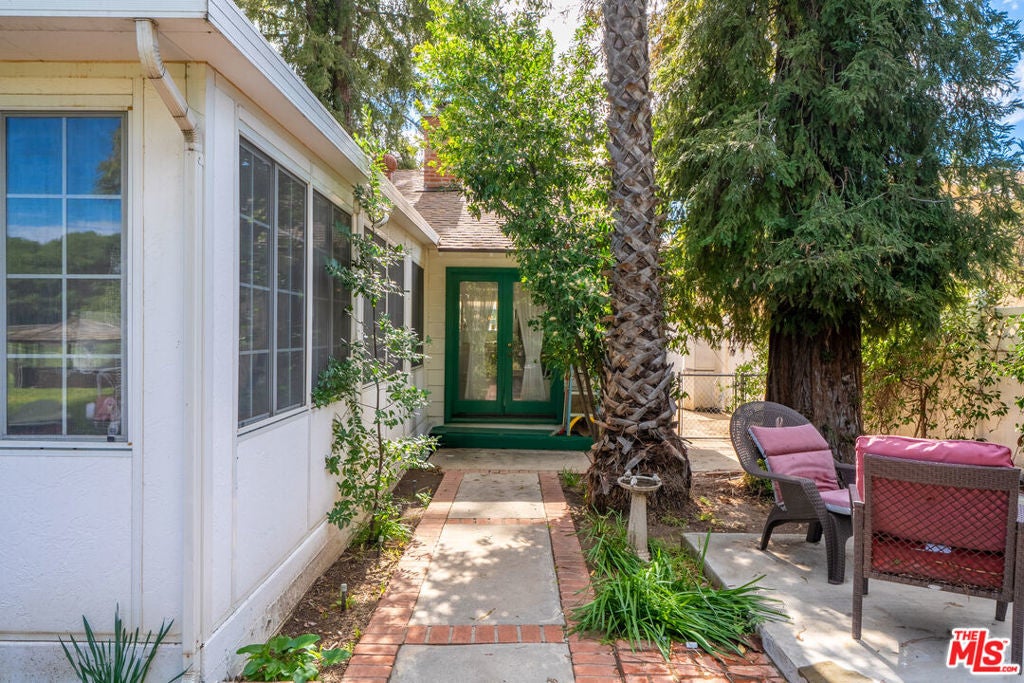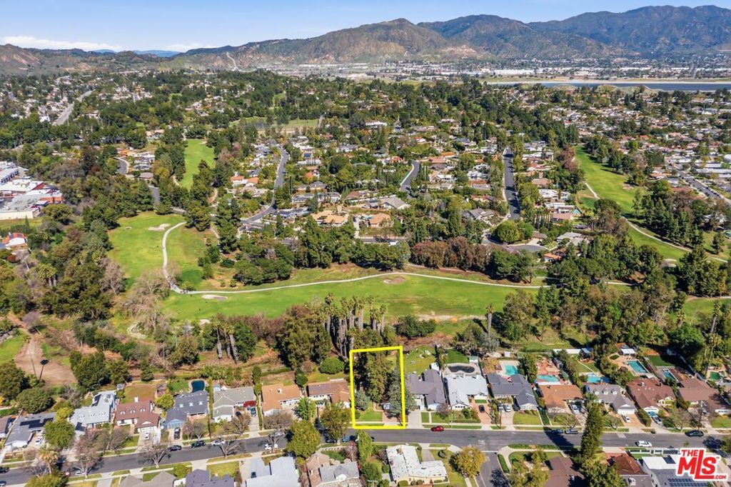 Known affectionately by neighbors as "The Yosemite House" for its majestic Redwood standing sentry over the birds of paradise and shaded azaleas in the front yard, this single-story gem offers a lifestyle of quiet prestige nestled in the picturesque North of Rinaldi neighborhood of Granada Hills. Recently enhanced with a complete exterior repaint, the residence provides a seamless blend of refined comfort and extraordinary potential. The expansive floor plan is anchored by rich hardwood floors and a striking dual-sided fireplace. The kitchen/dining area is bathed in light from a charming bay-windowed breakfast nook and elegant French doors which seamlessly bridges the gap between indoor comfort and outdoor beauty. Retreat to the large, primary suite, which boasts a recent bathroom remodel complete with marble countertops, ceramic flooring, oversized soaking tub, and a sleek walk-in shower. With two of the four bedrooms featuring en-suite bathrooms, the layout is as functional as it is inviting. The true magic of this residence is revealed as you cross yet another set of French doors through the sun-drenched lanai and into the enchanting backyard. The grounds slope gently toward a city-maintained arroyo, bordering the lush, manicured fairways of the Knollwood Country Club. This natural buffer ensures complete rear privacy while framing breathtaking, panoramic views of the Santa Susana Mountains. This private sanctuary is home to a vibrant ecosystem of blood orange and Valencia trees, fragrant wisteria, towering Mexican fan palms, as well as Eucalyptus, Cypress and Redwoods where owls and hummingbirds are frequent guests, while a whimsical bougainvillea enclosure serves as a refuge for local bunnies. Tucked into the landscape lies a charming, custom-built, and recently repainted miniature playhouse, equipped with electricity, and with a bit of TLC, can be the perfect footprint for a creative studio. Whether you envision a custom pool, a modern ADU, or an elite entertaining space, this +/- 12,980 SF canvas offers a rare opportunity to customize your dream oasis. Positioned just minutes from the trails of O'Melveny Park and the area's top-tier, high-ranking schools, this is a unique opportunity to secure long-term value in one of the Valley's most sought-after pockets.