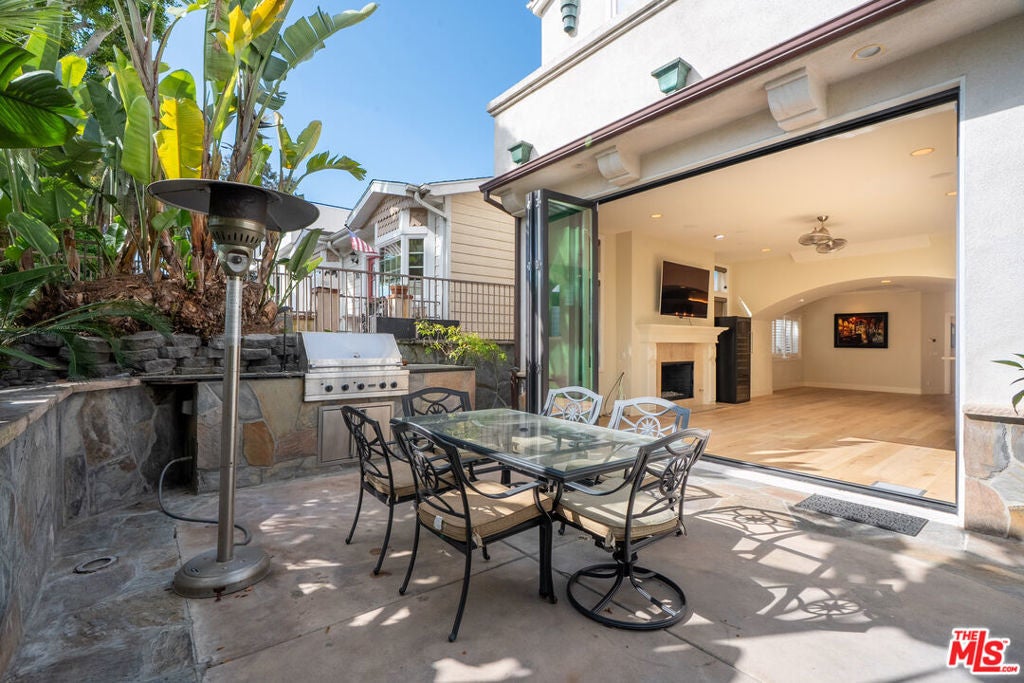 Stunning home located in Corona del Mar's sought after Flower Streets. This light and airy home has been newly refreshed with white oak wood floors throughout and offers 3 bedrooms plus a dedicated office, including a main-level bedroom with en-suite bath. The open main level features a chef's kitchen with granite countertops, premium appliances, and a built-in wet bar, opening into the spacious living and dining areas. Surround sound runs throughout the entire home, including indoor and outdoor spaces. Accordion doors lead to a private outdoor entertaining area with a built-in Viking BBQ, ideal for enjoying coastal evenings. The primary suite is spacious and private, featuring a fireplace, two walk-in closets, dual sinks, and a soaking tub. Additional highlights include a private rooftop deck, in-unit washer and dryer, garage parking plus an additional carport space, and great natural light throughout. Located walking distance to the park, CDM Village, beautiful beaches, dining, and shopping.
