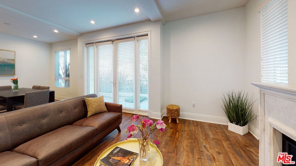 FULLY FURNISHED 2016- Built Beverly Hills Adjacent Luxury Condos. Open floor plan, bright and spacious, living-dining with High Ceilings, Hardwood Floors, Custom Fireplace Mantel and French Doors open to a Spacious Front Balcony Overlooking Manicured Landscape. Gourmet Kitchen with Peninsula Island, Exotic Countertops with Mosaic Stone backsplash and Stainless Steel Appliances. Maytag Washer and Dryer inside unit. Oversized Main Suite, Organized Walk-In Closet, Elegant Bathrooms with beautiful finishes. (Plates, pans, coffee maker, toaster, utensils, towels & sheets included). Centrally located walking distance to great restaurants & shopping, blocks from Cedar Sinai Hospital. Available for short term lease.