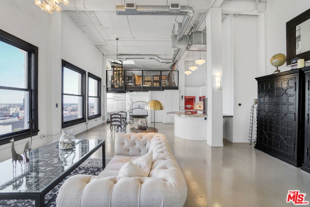 New York style Two-story penthouse unit with views and private roof deck in the historic Higgins door man building. Offers a rare opportunity to own a truly unique private residence in the heart of downtown Los Angeles. Designed with soaring high ceilings, Eastern views and a live/work loft-style layout, the space blends dramatic architecture with flexibility and character. Boasting breathtaking panoramic views including direct exposure overlooking the beautiful Saint Vibiana Cathedral. The home features a large private rooftop deck (accessible through the unit) perfect for entertaining or relaxing with panoramic city views. Inside, you will find a striking mix of Art Deco design and aviation-inspired details that make this residence truly one of a kind. The unit is located in the Higgins Building which has been designated as a Historic-Cultural Monument and is covered under the Mills Act. Perfectly situated close to Grand Central Market, fine dining, entertainment, museums, concert halls, and subway station. This is more than a home. It's a lifestyle rooted in history, design, and vibrant urban living.