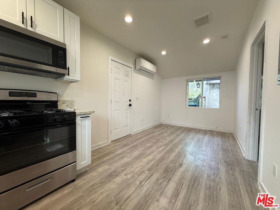 Discover this newly constructed 1-bedroom, 1-bathroom JADU featuring in-unit laundry, ideally positioned at the front of the property with its own address and direct street frontage, located in one of the most sought-after areas of prime Lake Balboa. The residence offers a well-designed floor plan with a comfortable living area and a generously sized kitchen appointed with white shaker cabinets, quartz countertops, a window above the sink, and brand-new appliances, including a gas range and microwave. The spacious bedroom and full bathroom include a large tub and stackable laundry hookups for added convenience. Situated on a quiet street, the property offers attractive curb appeal with palm trees and a grassy lawn, along with easy parking access. The interior is bright and inviting, featuring abundant natural light, recessed lighting, double-pane windows, and modern laminate flooring throughout.