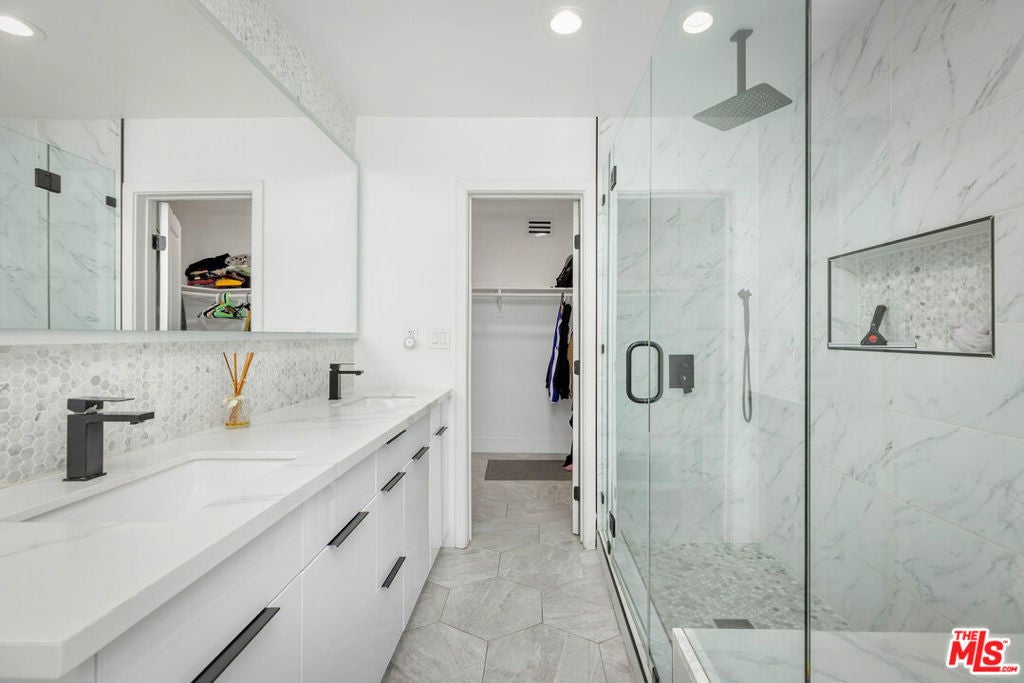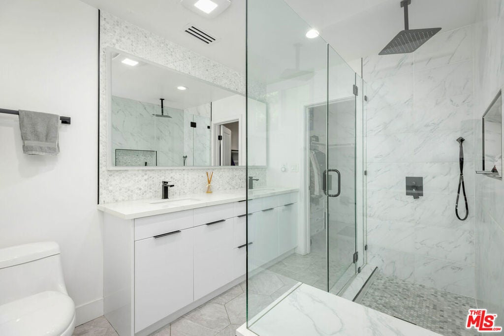 Come see this beautifully reimagined contemporary home, completely renovated in 2022 and further improved with over $400,000 in additional upgrades. Recent enhancements include a new roof, paid solar system, electrical upgrades, tankless water heater, retaining wall, and extensive improvements throughout. Offering near 5,000 square feet of living space on an approximately 8,300 square foot lot, the home features 5 bedrooms and 6 bathrooms with a bright, open floor plan. Wide plank oak flooring runs throughout, complemented by modern light fixtures, designer finishes, and refreshed landscaping.The spacious chef's kitchen showcases granite countertops with a full slab backsplash, custom white oak cabinetry, a professional ZLINE range, ZLINE refrigerator, and an oversized island ideal for prep and entertaining. Two expansive primary suites provide abundant natural light, generous closet space, and spa style bathrooms with dual vanities and oversized showers. One suite opens directly to the backyard for seamless indoor outdoor living. The private backyard retreat offers outdoor dining and lounge areas, a pool, and direct access to the attached casita, which has been renovated with its own kitchen, new appliances, and new flooring. Additional highlights include central air and heat and a two car attached garage with a modern door.