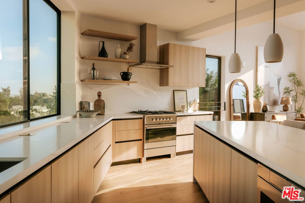 Atria is a collection of sixteen modern residences designed by Mark Rios, FAIA, FASLA, nestled in the hills of Silver Lake, offering a refined take on contemporary California living. Clean architectural lines pair with warm, livable interiors to create homes that feel elevated yet inviting. Residence 308 is a 3-bedrooms and 2 1/2-bathrooms spanning approximately 1,828 square feet, designed for effortless indoor-outdoor living. Substantial views of the Silver Lake Reservoir, Downtown LA skyline, and San Gabriel Mountains greet you as you enter the home. A spacious great room opens to a generous private deck through expansive 12-foot sliding glass doors, filling the space with natural light. White oak finishes throughout soften the contemporary aesthetic. The chef's kitchen features a full suite of appliances seamlessly integrated into paneled cabinetry, complemented by refined quartz countertops. The primary suite features a walk-in closet and a spa-inspired bathroom with dual vanities, water closet, and a large wet room. Two secondary bedrooms and a full bathroom along with a laundry closet, powder room, and additional storage, completes the thoughtfully designed interiors. An expansive roof deck provides generous space for relaxing, entertaining, and dining with sweeping panoramic views. The residence includes two dedicated parking spaces and a private storage unit.Ideally located in the heart of Silver Lake, Atria offers easy access to some of Los Angeles' most desirable lifestyle destinations. Just moments from Griffith Park and the Silver Lake Reservoir, residents enjoy a rare balance of outdoor recreation and urban convenience. The highly walkable neighborhood is home to beloved cafes, restaurants, and boutiques, with Sunset Junction, Atwater Village, Glendale, Downtown Los Angeles, and Hollywood all within a short drive. Seller to provide credits toward closing costs and interest rate buydown!
