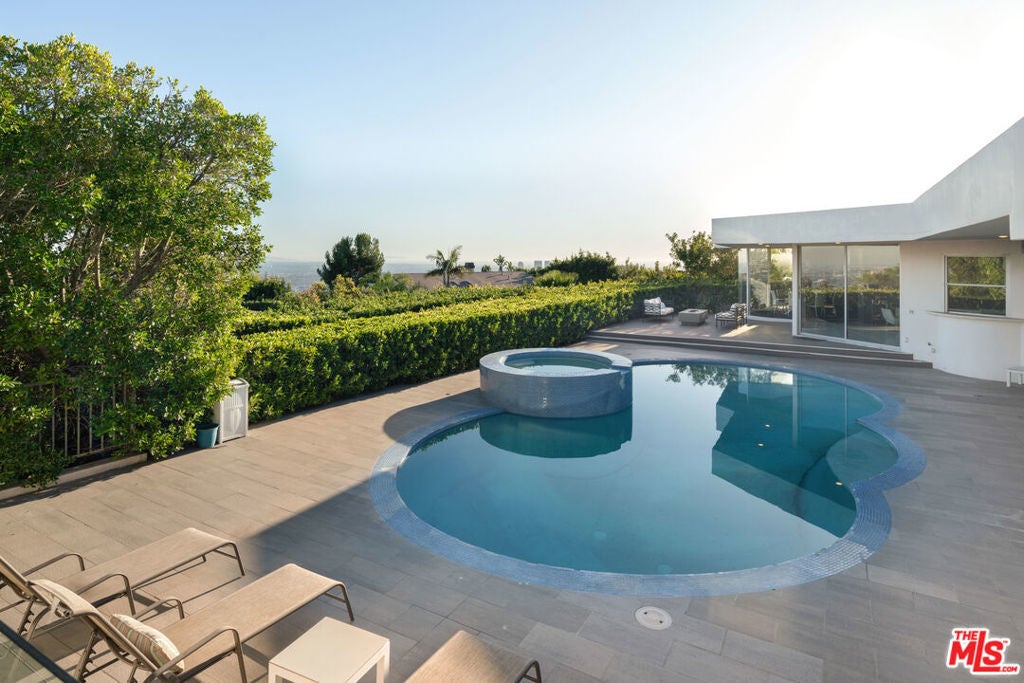 A Bird Street Mid-Century gemstone that was once Marilyn Monroe's "last shoot". Exceptional single-story Mid-Century Modern residence perched on coveted Bird Street in the Hollywood Hills, offering breathtaking panoramic views spanning from the glittering Downtown Los Angeles skyline to the serene Pacific Ocean.Authentic period details shine throughout, including classic terrazzo floors, dramatic sunken living spaces, and an effortless indoor-outdoor flow that seamlessly connects bright, airy interiors to an inviting pool area and expansive outdoor living spaces. The open, flexible floor plan provides the perfect canvas for a straightforward cosmetic renovation or a visionary re-imagination. Allowing you to preserve its timeless architectural integrity while customizing it to your exact tastes. Bright, light-filled rooms, effortless California living, and those unbeatable jetliner views make this a rare opportunity in one of LA's most prestigious enclaves.