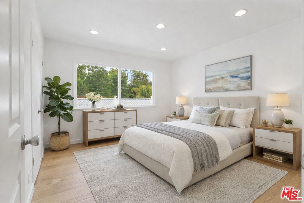 This enchanting storybook home, nestled on a peaceful, tree-lined street, seamlessly blends modern updates with timeless charm. Set on nearly 20,000 sqft, the property offers exceptional curb appeal with five spacious bedrooms, four bathrooms, a half-circle driveway, and mature landscaping, creating a private paradise. Inside, the contemporary traditional design radiates natural warmth, featuring custom White Oak flooring, recessed lighting, a cozy fireplace, and a stylish bar area bathed in abundant natural light. The expansive dining room, with an additional nook and grand fireplace, is perfect for entertaining. The chef's kitchen offers generous cabinetry, countertop space, a breakfast area, breakfast bar, and high-end stainless steel appliances. The primary retreat is a true sanctuary with vaulted ceilings, a private balcony, a spacious walk-in closet with custom cabinetry, and an en suite bathroom with a rainfall shower, Jacuzzi tub, skylight, and double vanity. The backyard is an oasis, with an oversized pool, waterfall Jacuzzi, charming cabana, and an outdoor kitchen with a grill and sink ideal for al fresco dining and entertaining. The expansive lawn provides endless possibilities for recreation including Tennis Court and space for a potential 2,300 sqft ADU (buyer to verify). Additional features corner lot including a side driveway leading to the bottom level, an attached two-car garage, an expansive side yard, a dedicated laundry room, and central AC/heat. Conveniently located near trendy restaurants, shopping, and amenities such as The Village, Cedars-Sinai, Whole Foods, and Equinox, with easy access to the 101 Freeway, this home offers the perfect balance of privacy, luxury, and convenience. Prepare to be amazed. *Some photos are Virtually Staged both Interior and Exterior including Tennis Court*