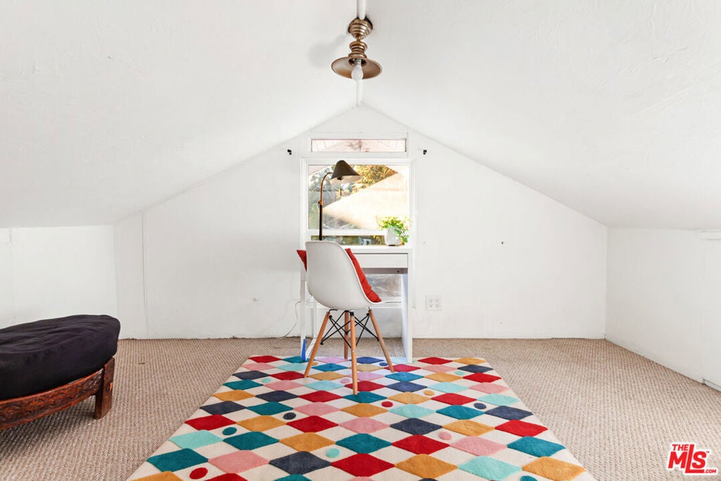 A truly rare Hollywood artist's compound offering multiple, flexible live/workspaces. Gated and private on a quiet street, this 1907 Spanish style property combines historic charm with a modern studio addition, ideal for creatives, professionals, or those seeking a one-of-a-kind residence. The main house features classic Spanish architecture, including a beautiful loggia overlooking the front yard, arched details, hardwood floors, and abundant natural light. Offering two bedrooms and two bathrooms on the main floor. The ensuite bedroom also includes a wet bar that has been utilized as a kitchenette, adding versatility to the home. Two upstairs bonus rooms with skylights provide flexible space for sleeping, office, or creative use. At the rear of the property sits a striking, hangar-style studio, built in 2010, offering approximately 900 square feet of open, loft-like space with soaring curved ceilings and an industrial-art aesthetic. Fully built out with its own kitchen, bathroom, and laundry, this separate structure is ideal as a creative studio, live/workspace, guest quarters, or additional living area. Outdoor areas include space for al fresco dining and entertaining. Off-street tandem parking accommodates five or more vehicles along the north drive and 2 additional side-by-side spaces in the front. Zoned LAR3, the property offers excellent flexibility and long-term potential. Located near Sunset Boulevard, Cahuenga, studios, dining, shopping, and entertainment, this is a rare opportunity to own a distinctive Hollywood compound with character, privacy, and creative freedom.