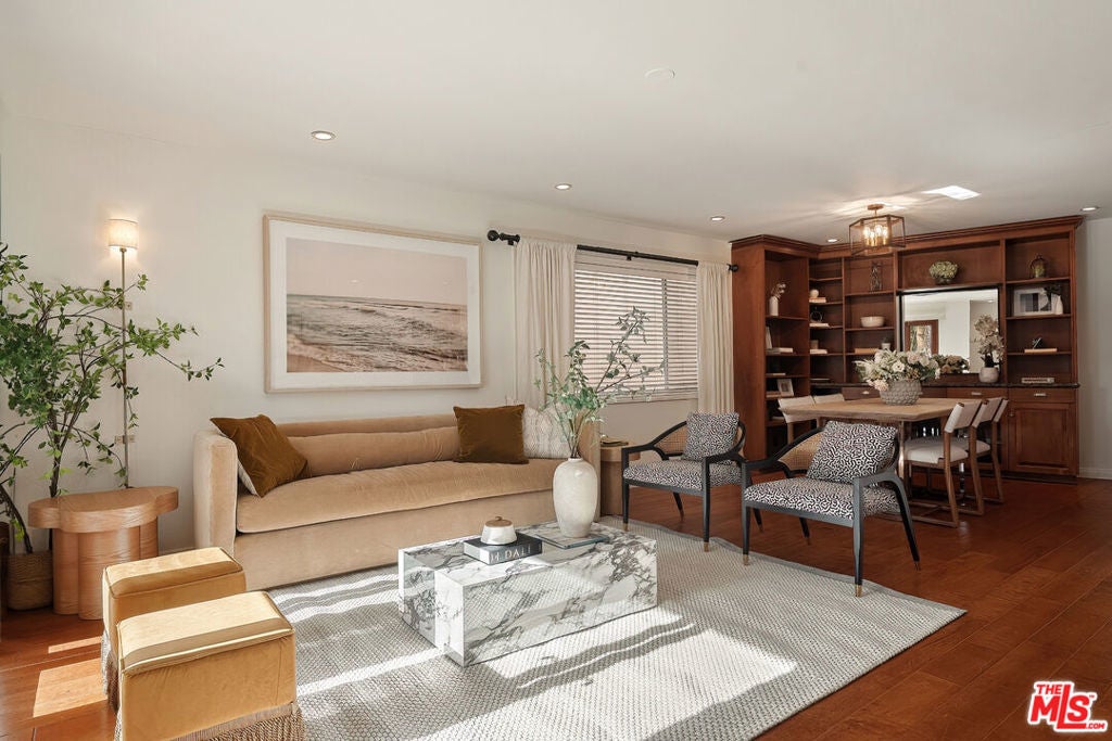 An exceptional opportunity to own a light-filled, timeless 3-bedroom condo just moments from Montana Avenue. This single-level residence offers an airy, open floor plan with hardwood flooring throughout, a beautiful custom wood built-in in the dining area, and a west-facing private balcony that captures refreshing ocean breezes - all less than a mile from the beach. The chef's kitchen features granite countertops and stainless steel appliances, seamlessly connecting to the main living spaces for easy everyday living and entertaining. The current owner has recently updated both bathrooms, elevating the home's quality and design. The oversized primary suite includes a spa-like ensuite with a gorgeous rainfall shower and built-in closets, and the guest bath is replete with stunning glazed tile for a clean, contemporary feel. Additional highlights include in-unit washer/dryer, a gated carport with designated parking, and an HOA that includes earthquake insurance and paid water/trash. Located in the highly regarded Santa Monica school district, with effortless access to Montana Avenue's premier shops and dining including favorites like R&D Kitchen, Sogno Toscano, Bardonna, and Courtyard Kitchen - this residence delivers the very best of westside living. Unarguably the best-priced 3-bedroom condo in Santa Monica when considering its refined finishes, timeless appeal, and unbeatable location.